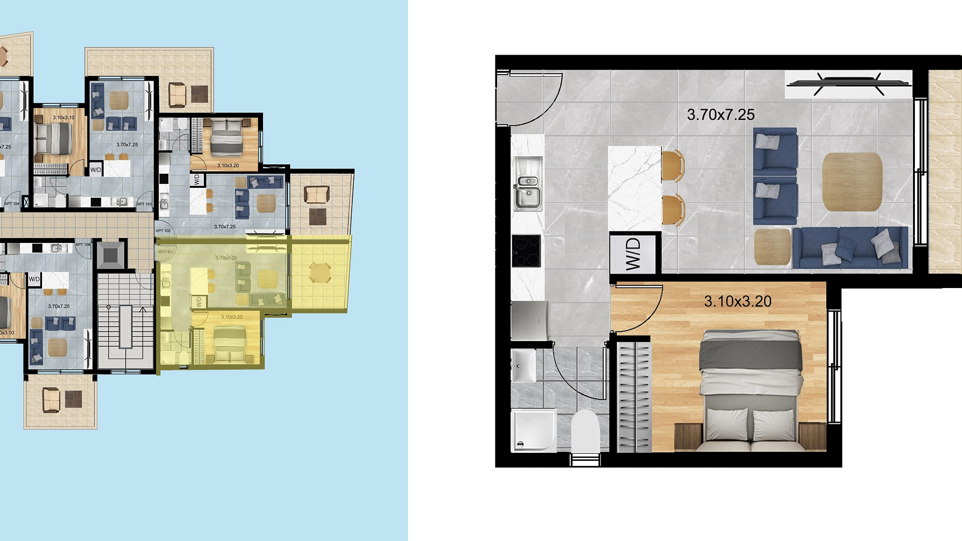 The decoration is made of high-quality materials: ceramic tiles, quartz countertops, parquet in the bedrooms and sanitary ware from leading European brands. Each apartment has a covered parking and a storage room. The project is offered off-plan, with a building permit obtained — a great opportunity to invest in modern and energy-efficient housing in one of the most sought-after areas of Limassol.