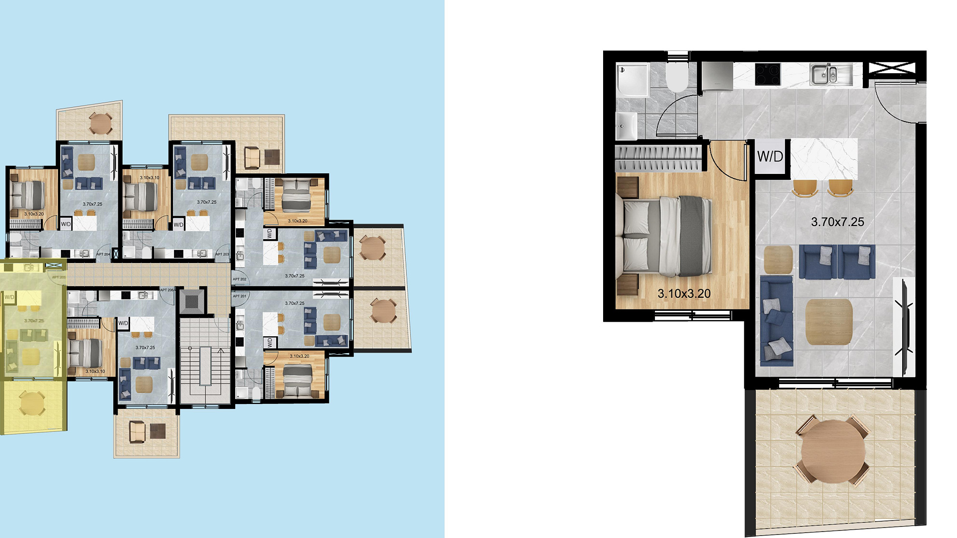 The decoration is made of high-quality materials: ceramic tiles, quartz countertops, parquet in the bedrooms and sanitary ware from leading European brands. Each apartment has a covered parking and a storage room. The project is offered off-plan, with a building permit obtained — a great opportunity to invest in modern and energy-efficient housing in one of the most sought-after areas of Limassol.