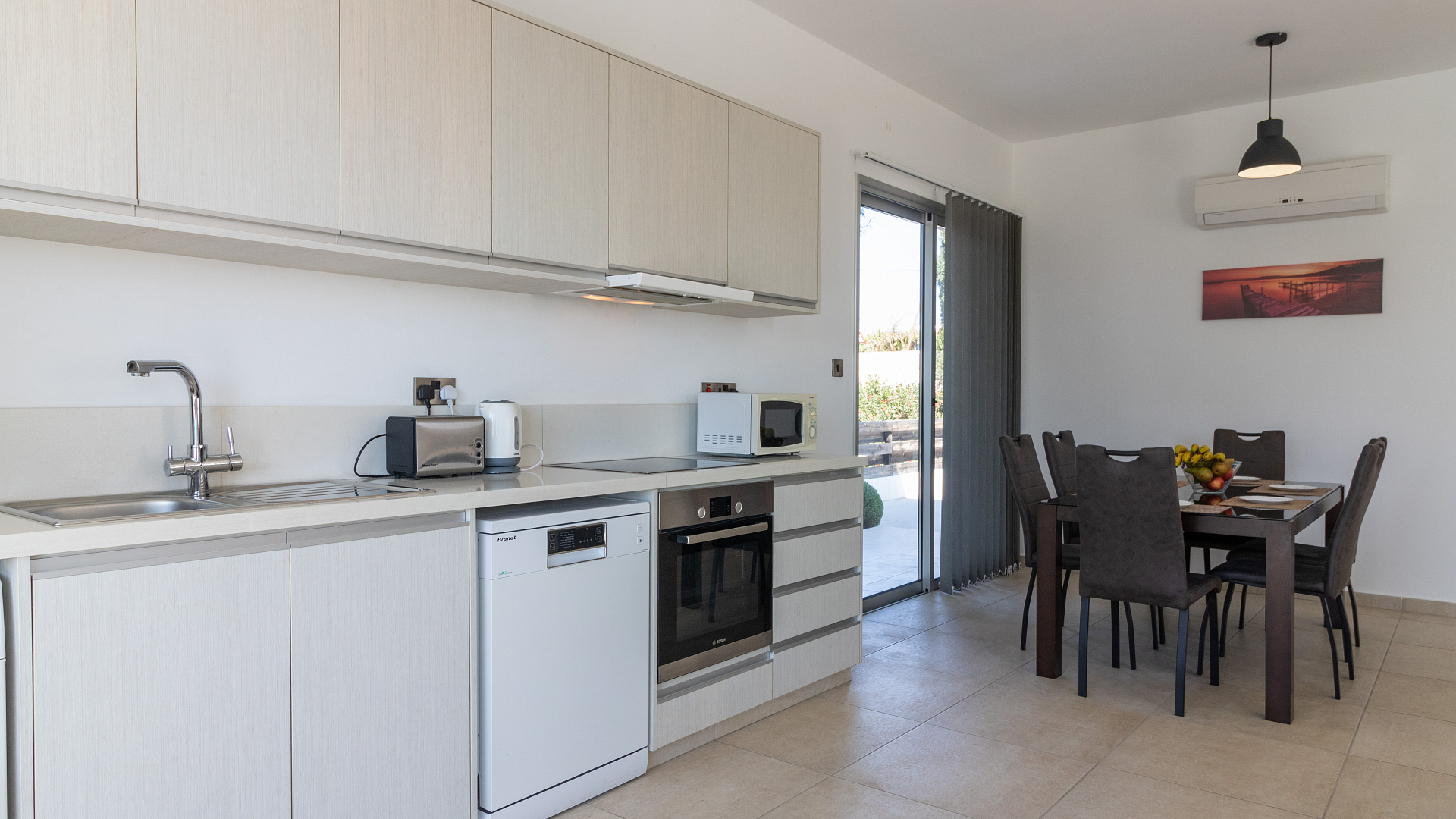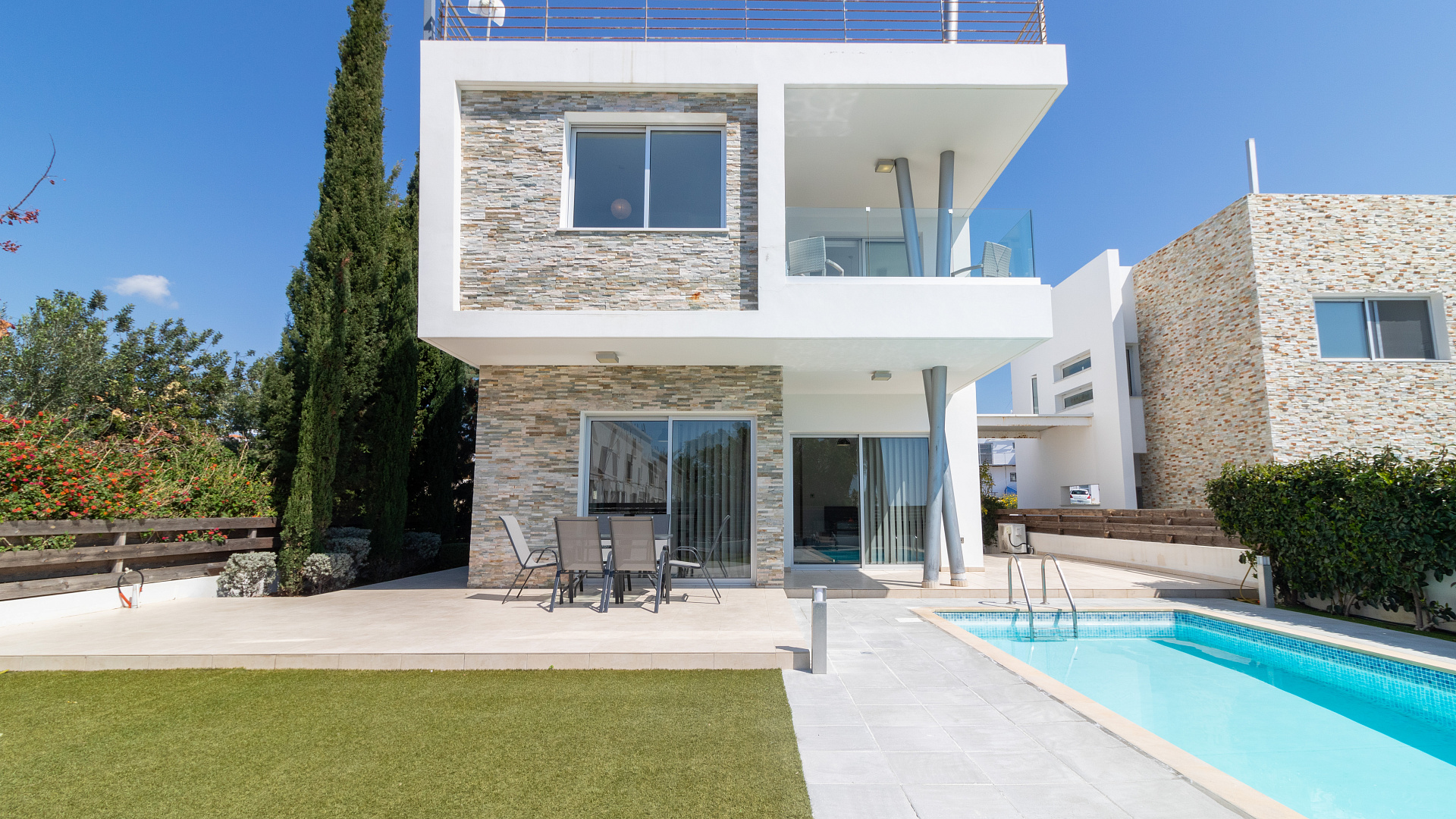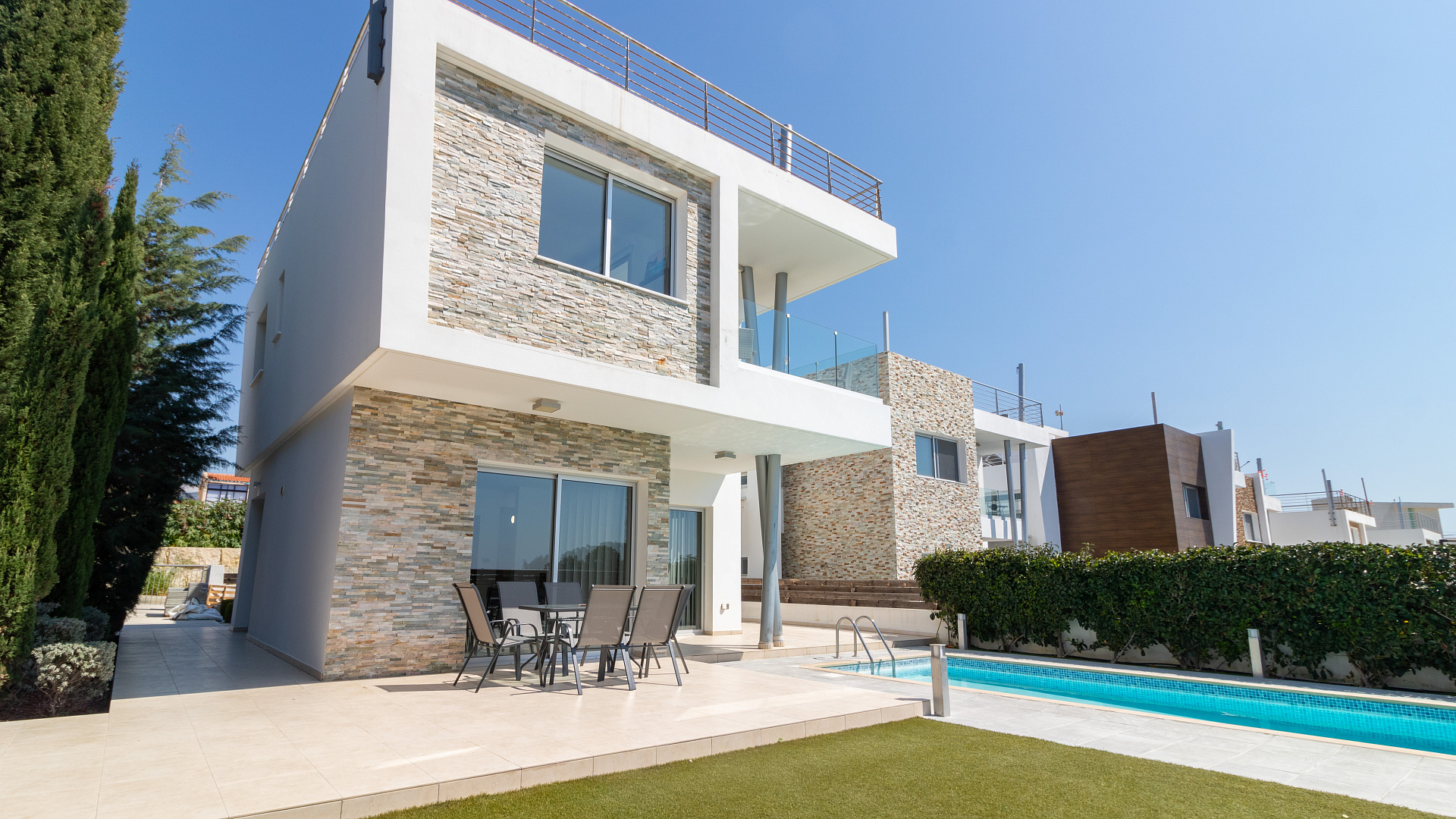 For sale: a 3-bedroom house located in the prestigious area of Kissonerga, Paphos. Built in 2015, this fully furnished home blends style and comfort. The house features multiple balconies, a private pool, and a walkable roof, offering spacious outdoor areas for relaxation and entertainment. Inside, there are built-in wardrobes, a fully equipped kitchen, and double-glazed windows, ensuring energy efficiency and comfort. Air conditioning units are installed in every room, making the house perfect for year-round living. The property is just a few minutes' walk from the beach, offering an excellent location with stunning sea views. A private garden and parking add to the convenience and privacy of this beautiful home.
