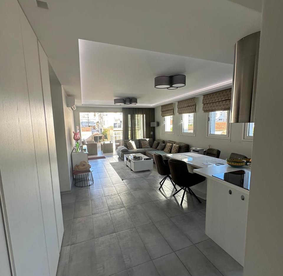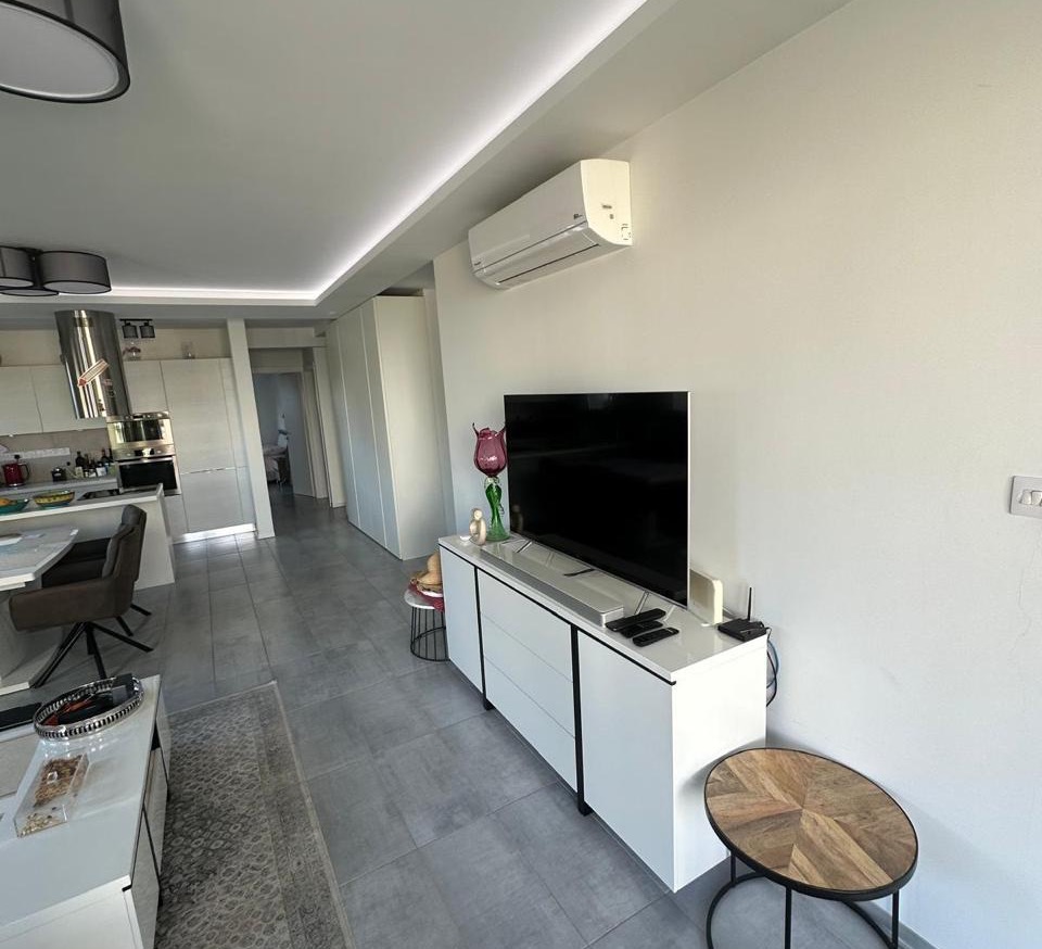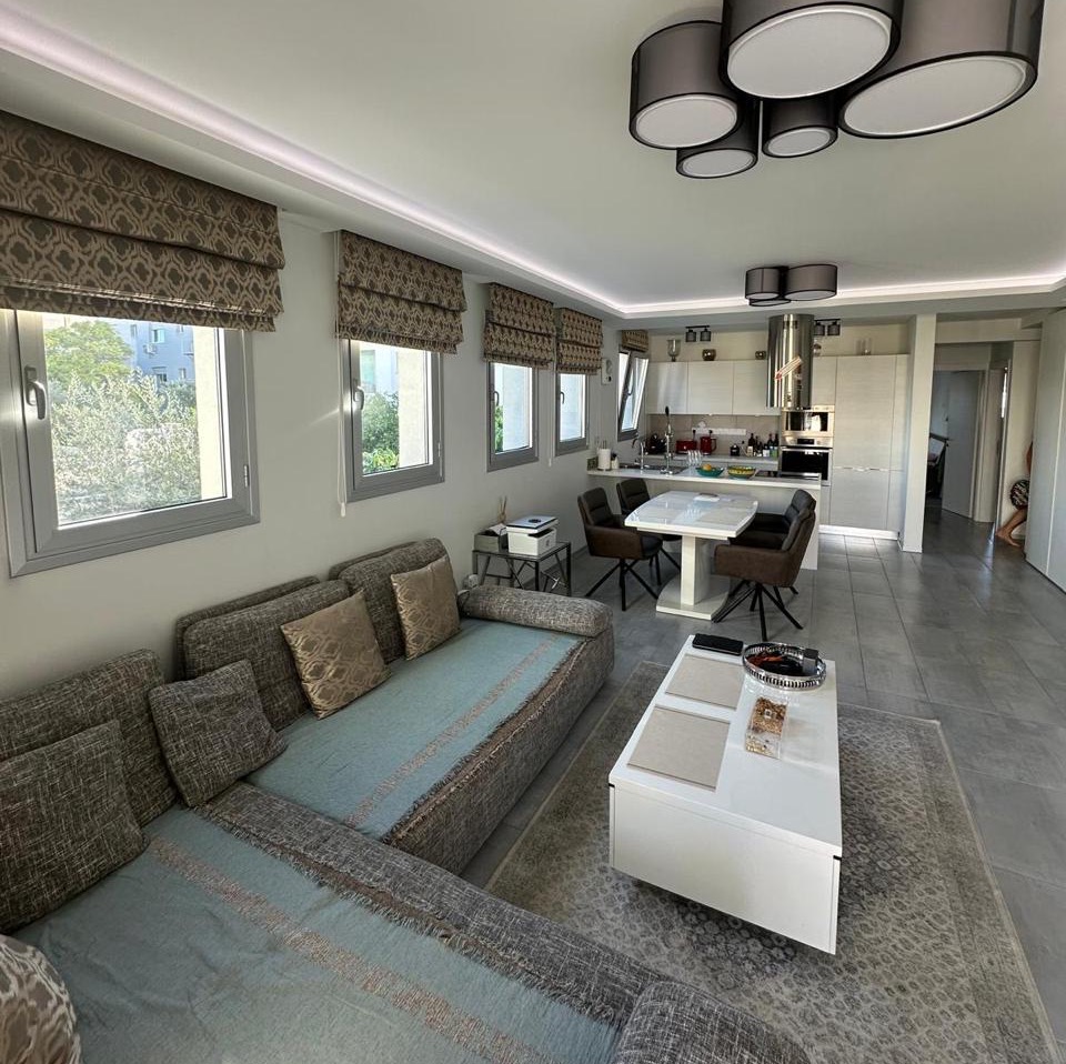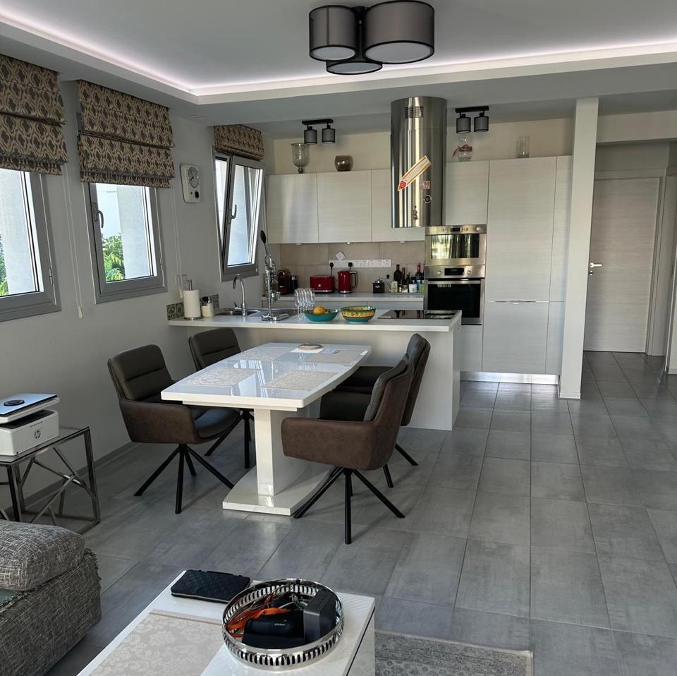 For sale a two-bedroom apartment of 87 m2 with a balcony of 13 m2 in the Neapolis area, Limassol city. The apartment is fully furnished and equipped with all necessary household appliances. The building is located just 250 meters from the beach, on the ground floor of a modern house built 8 years ago, and has the title of ownership.