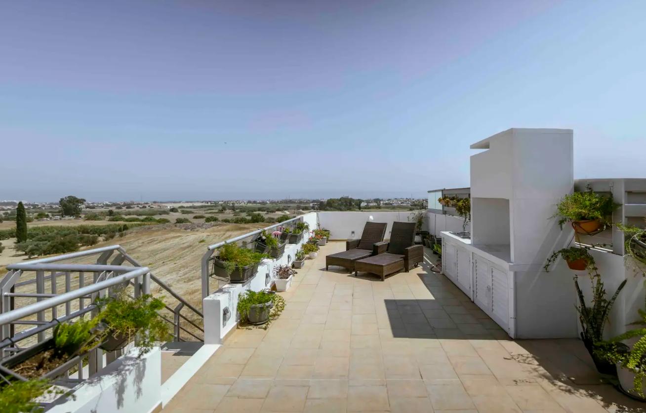 For sale is a two-bedroom penthouse in the Oroklini Larnaca area of 92 m2 on the second floor of a residential complex. The apartment includes two bedrooms, two bathrooms, a storage room and a spacious roof terrace with panoramic sea and mountain views. The air conditioners, appliances and smart water heating system have recently been updated, mosquito nets and cameras have been installed. The complex has a swimming pool, gym, games room, elevator and parking. Nearby are beaches, the center of Larnaca and the airport. The apartment is sold unfurnished and without titles.