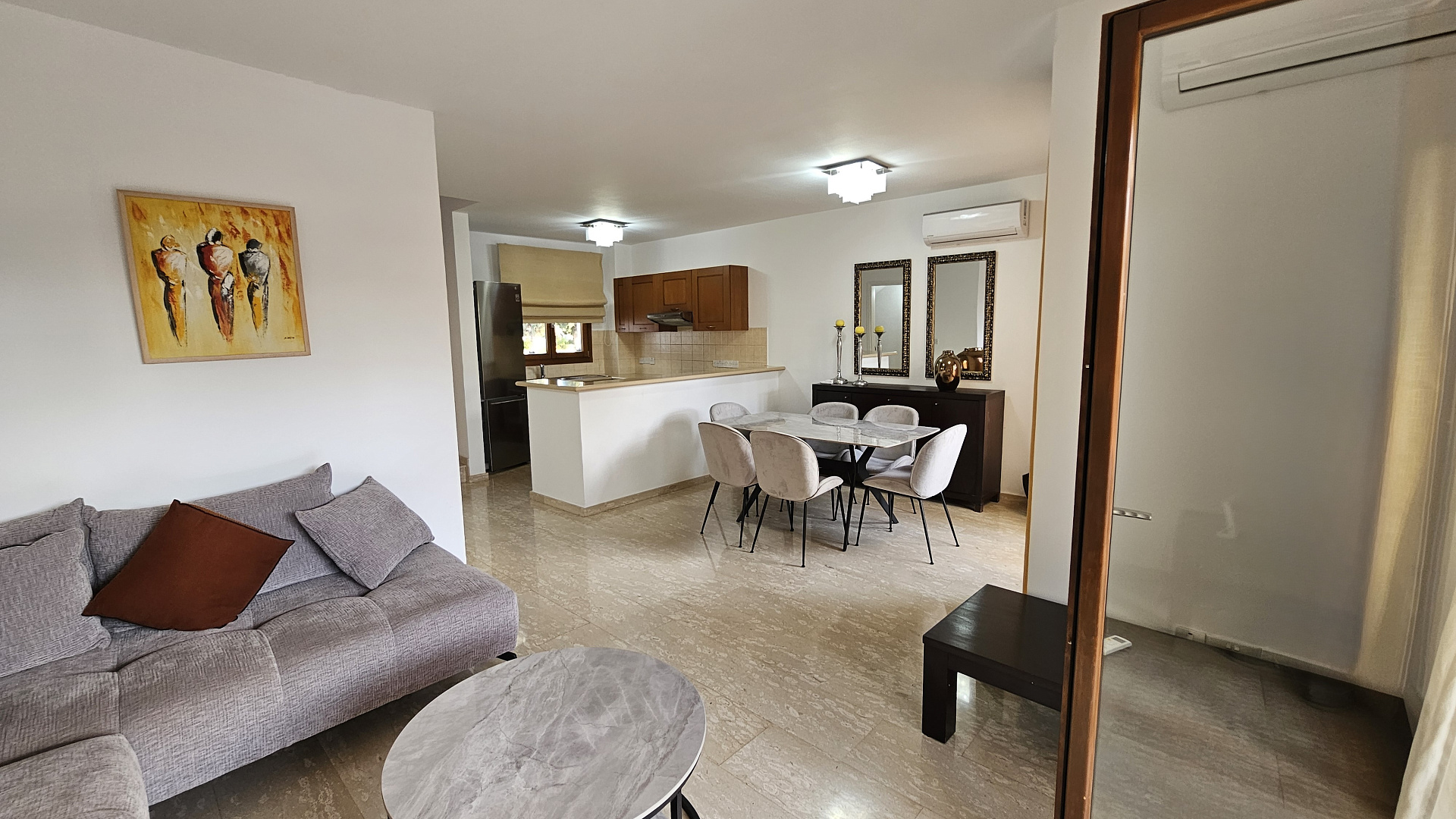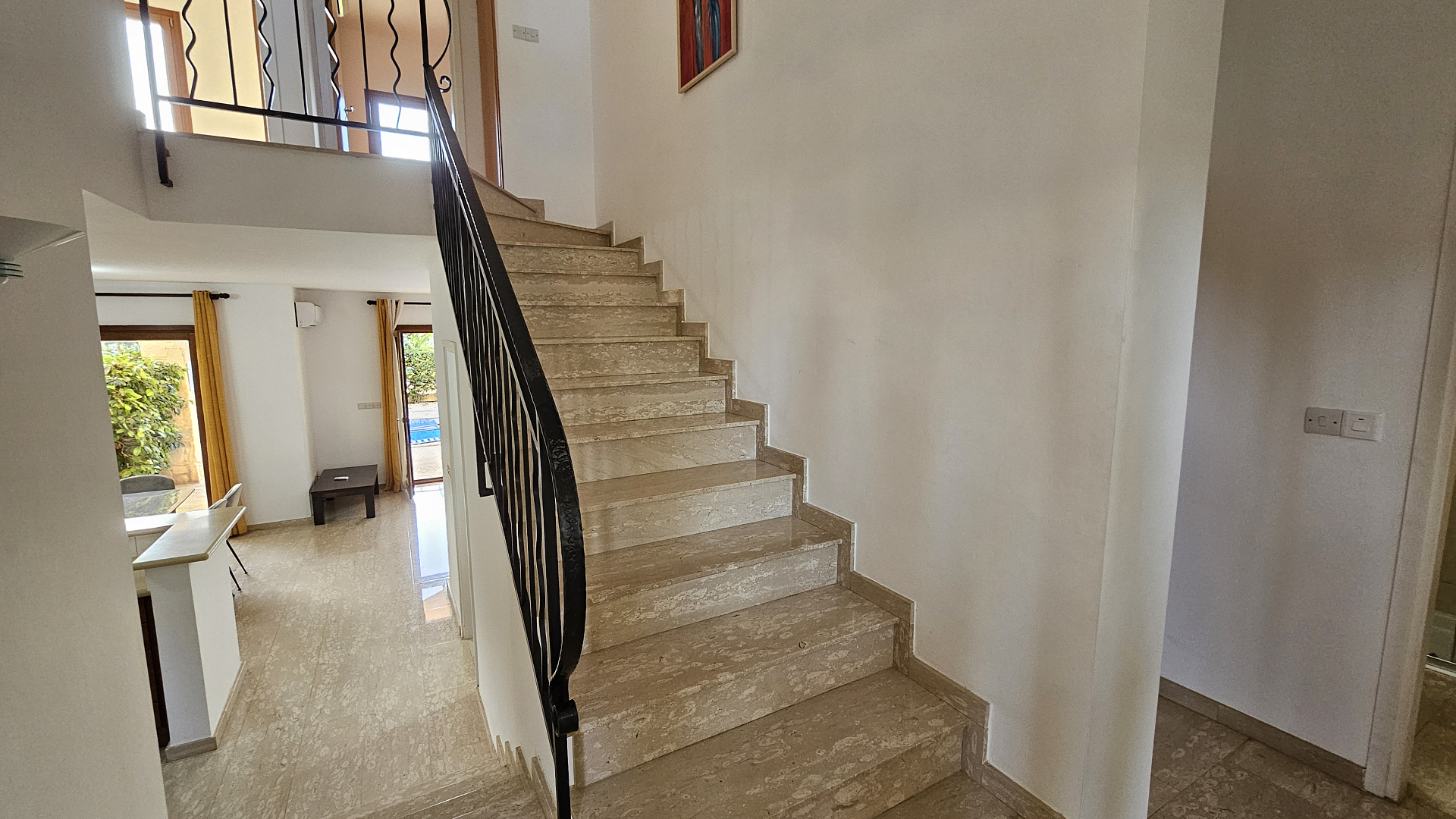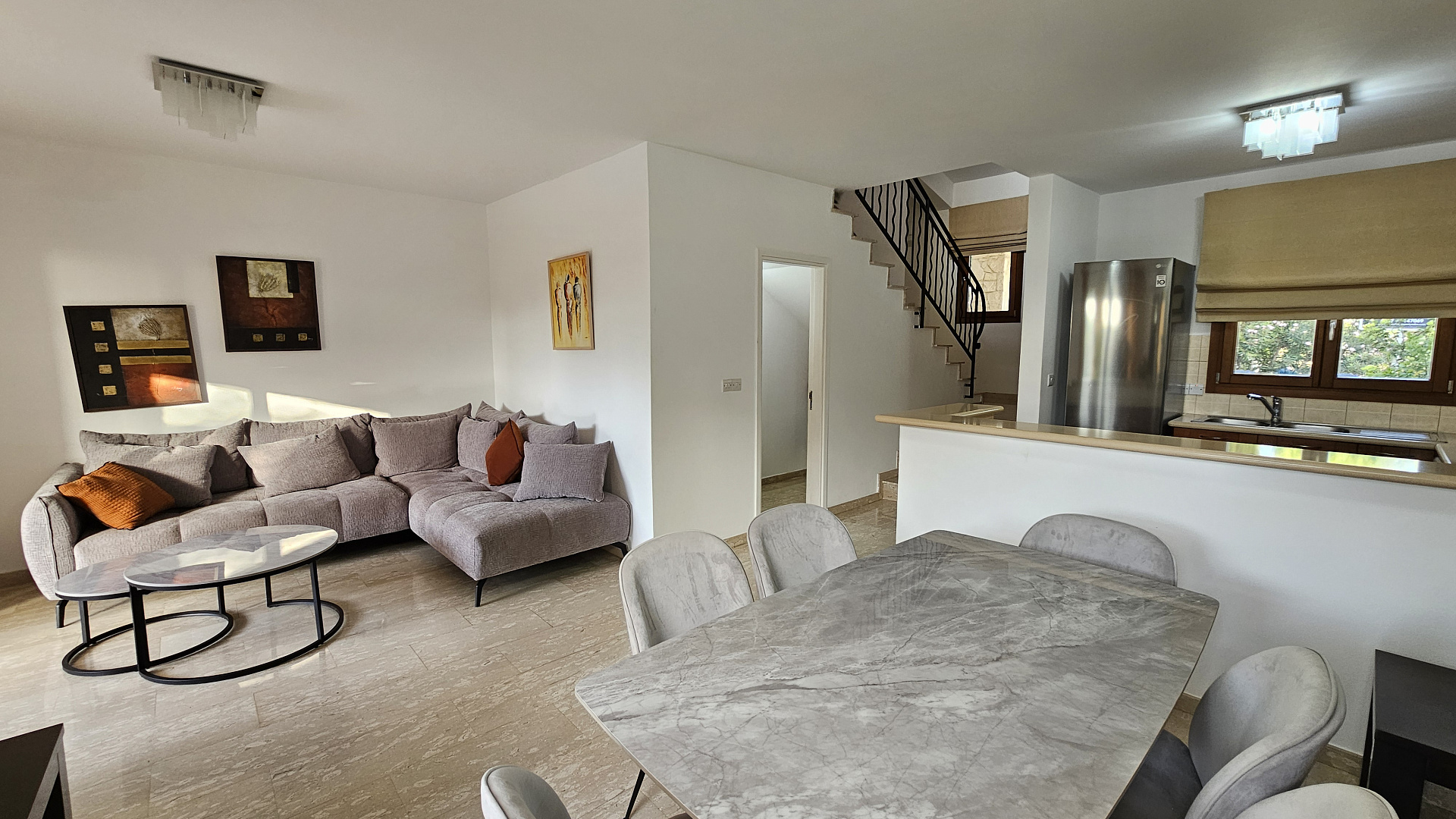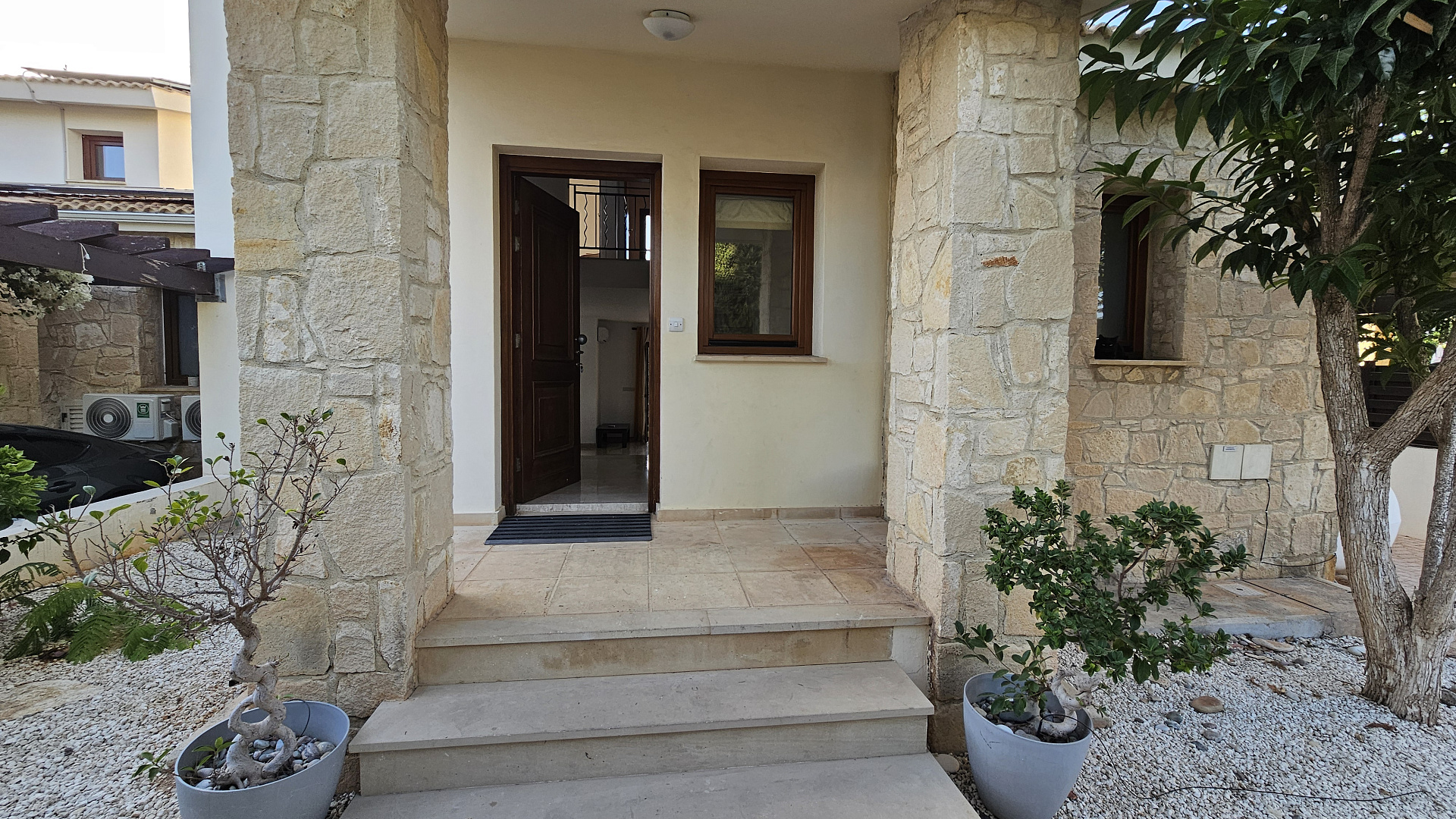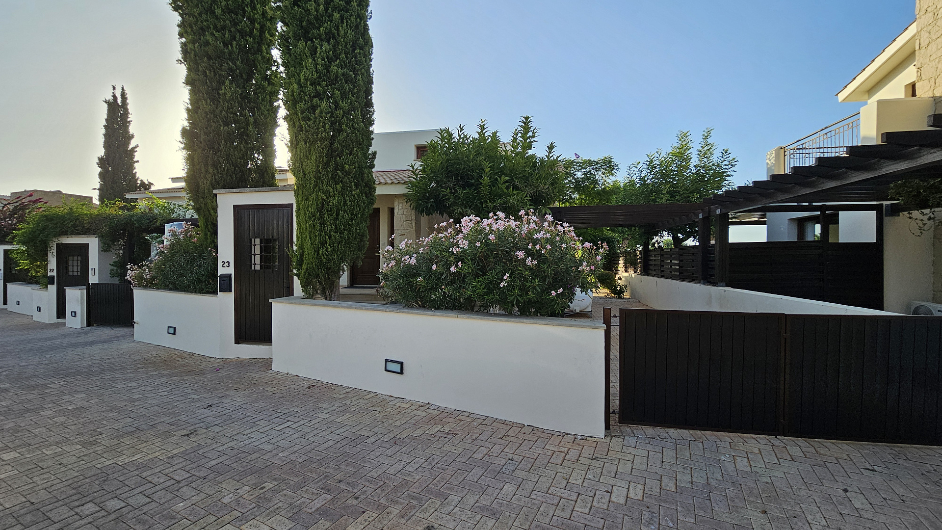 A three-bedroom semi-detached house is for sale in Kouklia, Paphos, with a total area of 180 m² on a 315 m² plot. The house is fully furnished and includes three bedrooms, two bathrooms, a storage room, a private pool, and a garden. There is uncovered parking and full air conditioning in all rooms. Built in 2005, energy efficiency class C. Available for rent from October 1, 2025.