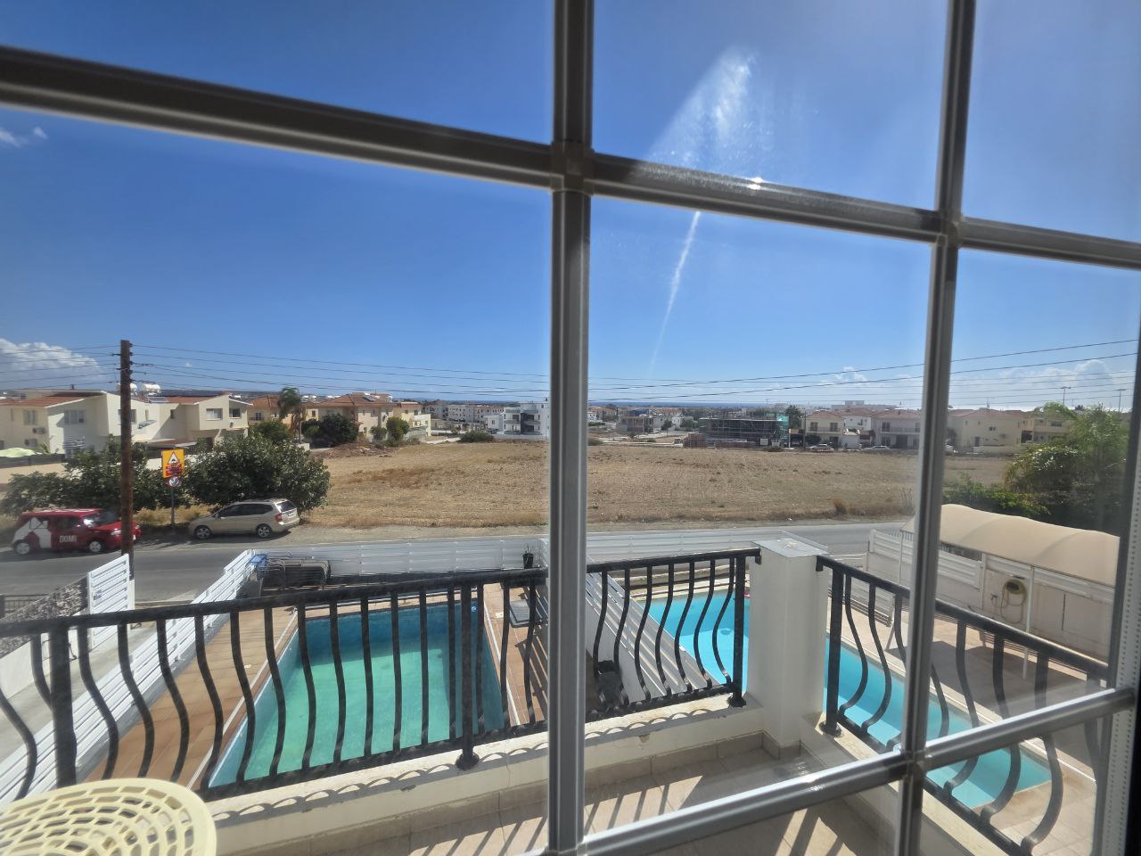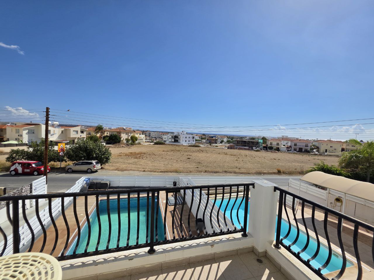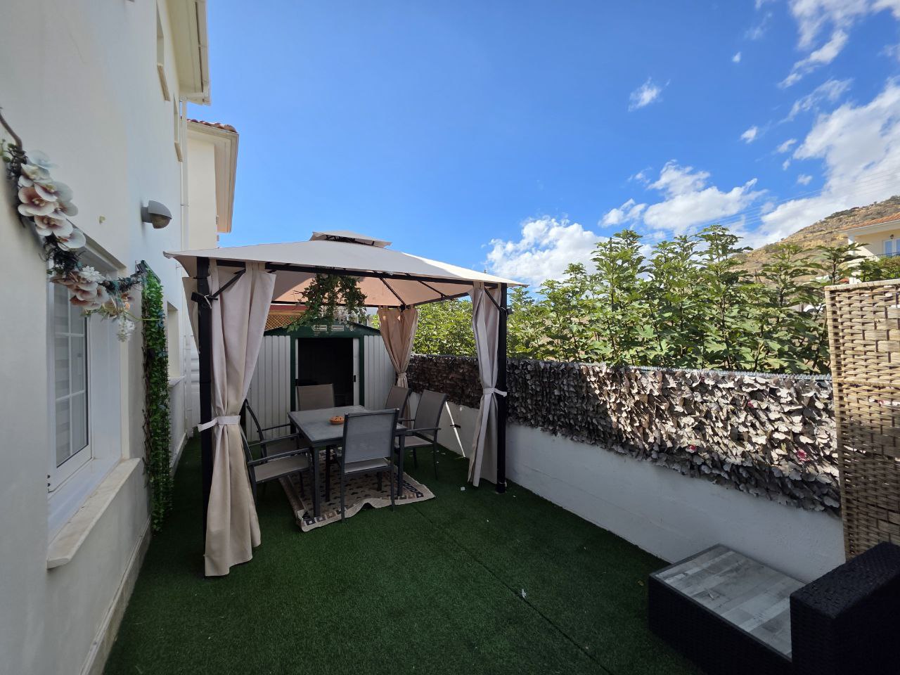 For sale a cozy three-bedroom house with a swimming pool and sea views, located on the hills in the area of Oroklini, Larnaca. On the ground floor there is a spacious living room, a separate kitchen and a guest bathroom. From the living room there is access to an outdoor terrace with a swimming pool, and from the kitchen there is access to a cozy courtyard with a seating area. On the second floor there are three bedrooms and two bathrooms. The house is partially furnished, equipped with air conditioning and mosquito nets. The title is in the process of being awarded.
