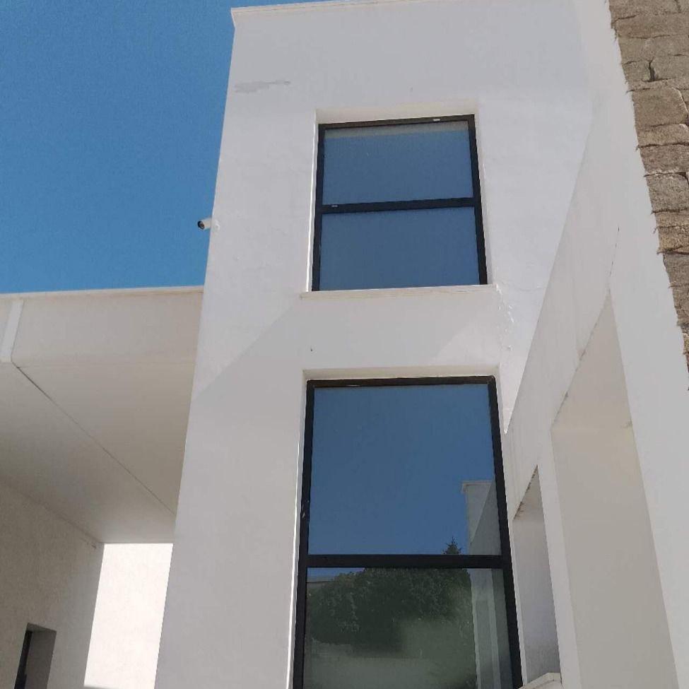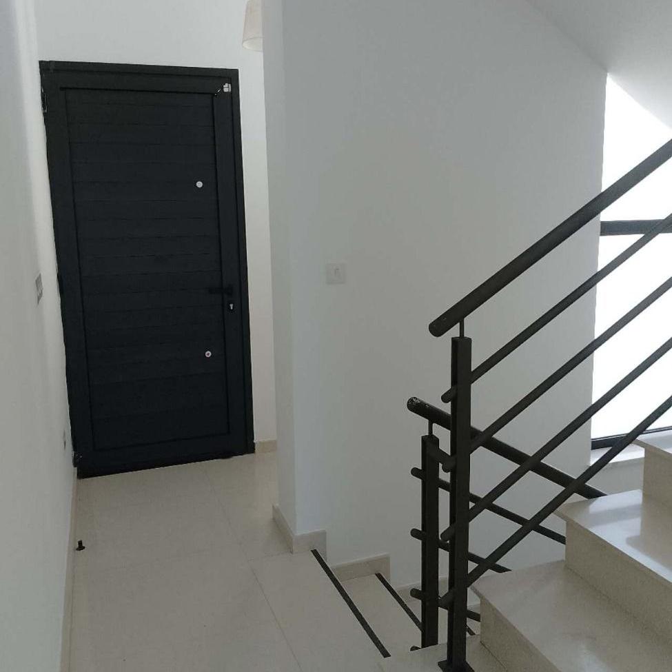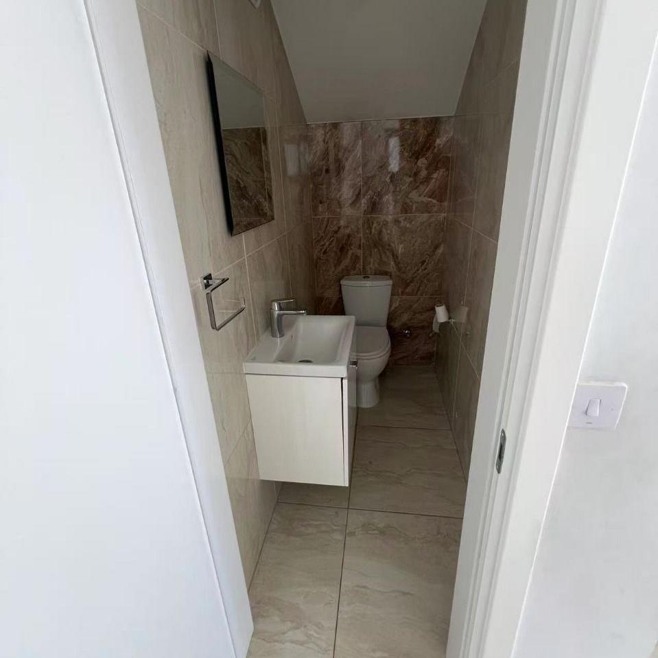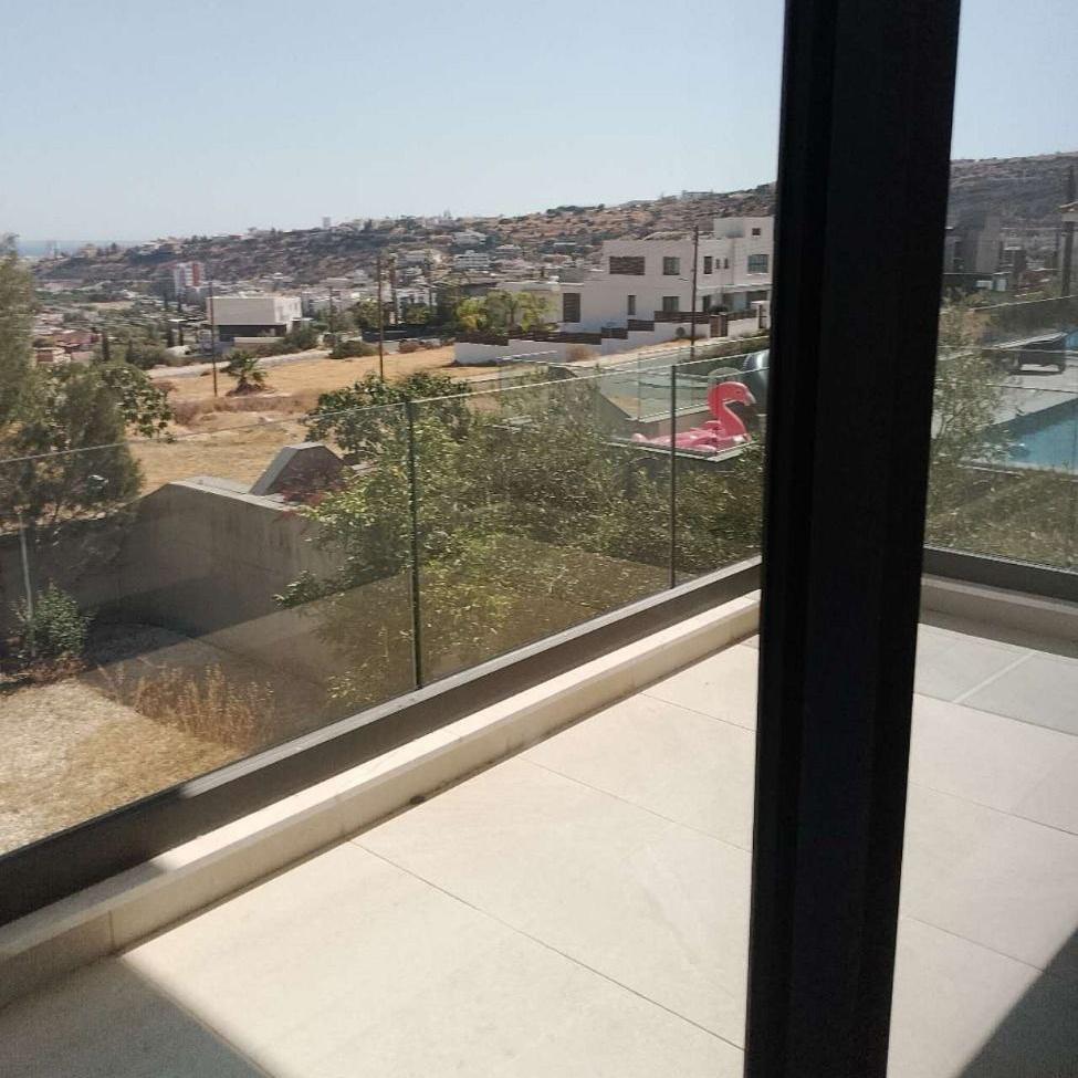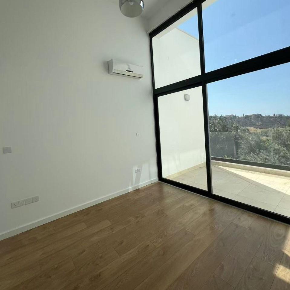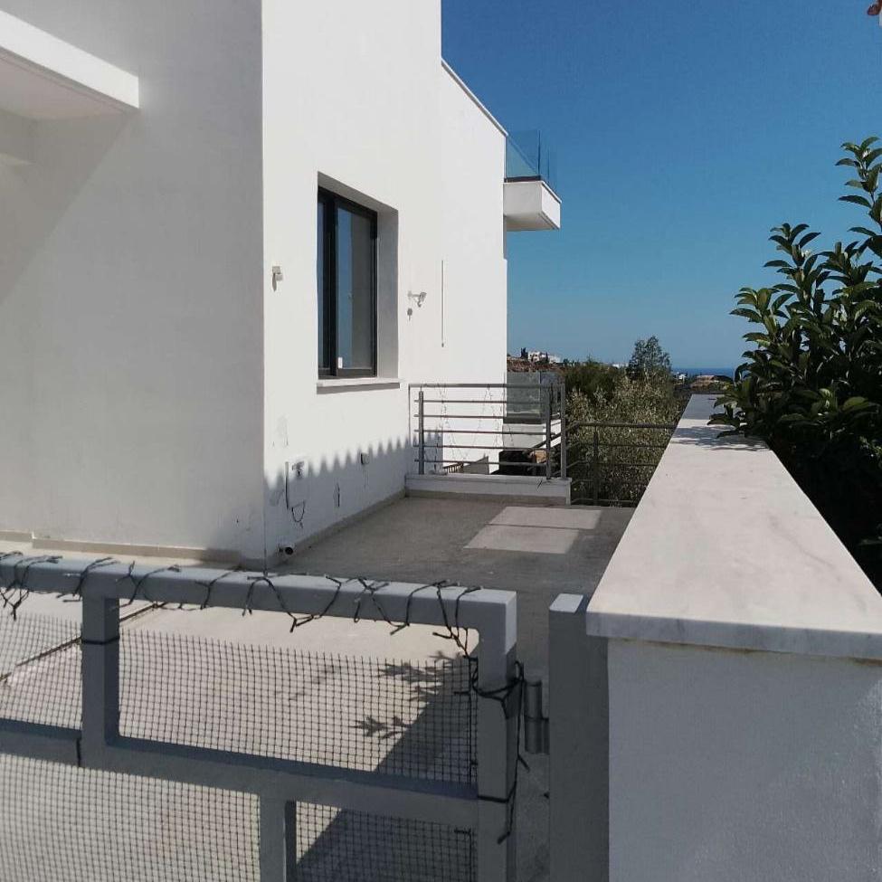Modern two-bedroom villa for sale in Germasogeia, Limassol, with a total area of 225 m2, including a living area of 145 m2, a covered veranda of 9 m2, an open veranda of 6 m2 and a spacious roof garden of 68 m2. The land area is 372 m2. The villa consists of three levels: on the ground floor there is a living room combined with an open kitchen, a guest toilet and access to the garden, on the second floor there are two bedrooms and two bathrooms, and on the third level there is a roof terrace with panoramic views of the sea and the city.