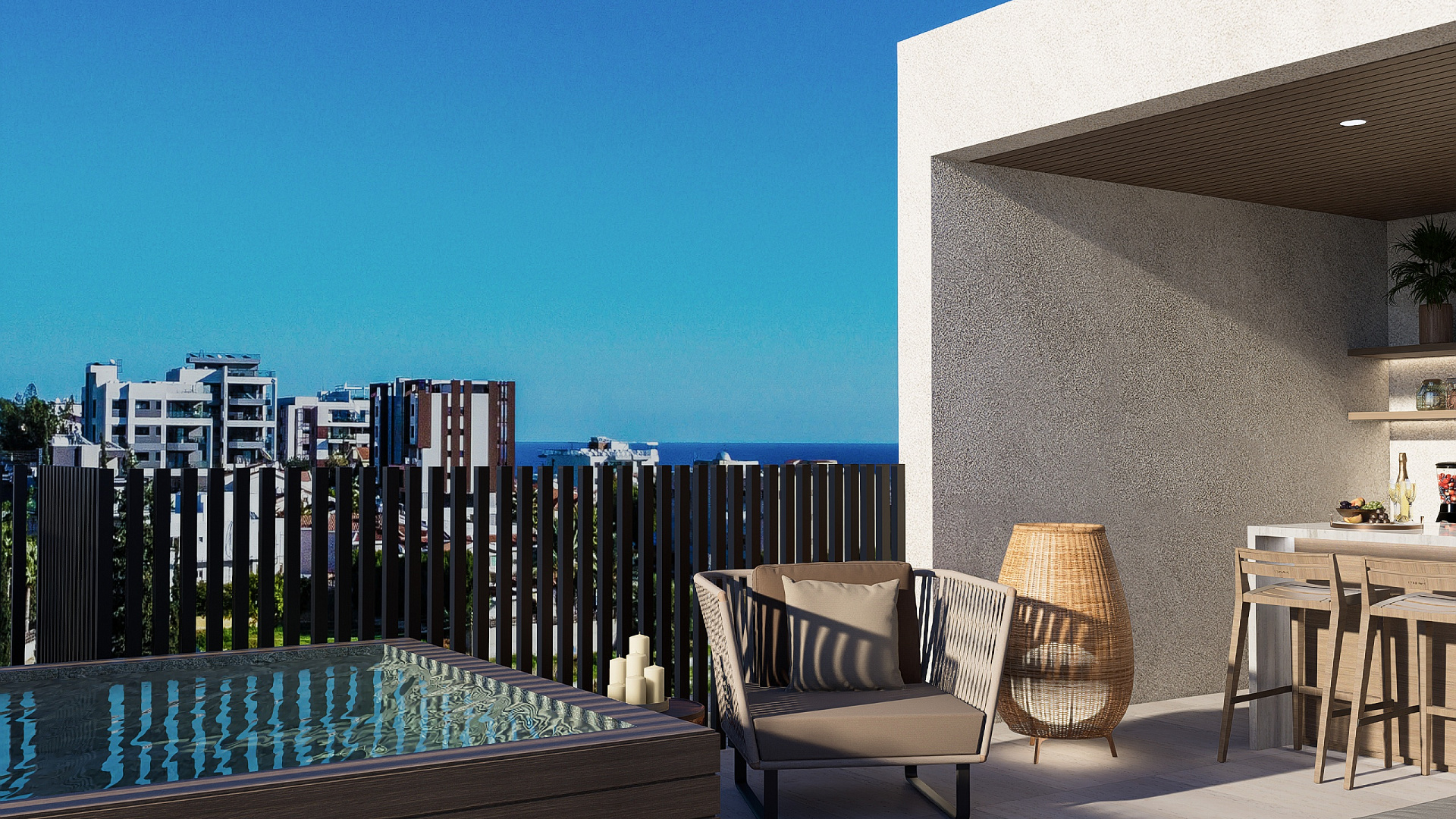 For sale a three-bedroom penthouse with a roof terrace in the area of Pantea, Limassol. This modern penthouse combines elegant design, functionality and high quality construction. The spacious and bright rooms are made using premium materials — the apartment has wooden floors, Italian doors and a kitchen, as well as a hidden heating and cooling system for maximum comfort. Energy efficiency class A+ provides economical energy consumption and a high level of thermal insulation. A Jacuzzi can be installed on the terrace, creating an ideal space for relaxing and enjoying the view of the city. On the ground level of the complex there is a private parking space and a storage room. The penthouse is an excellent choice for those who appreciate modern style, comfort and a prestigious location in one of the most sought-after areas of Limassol.