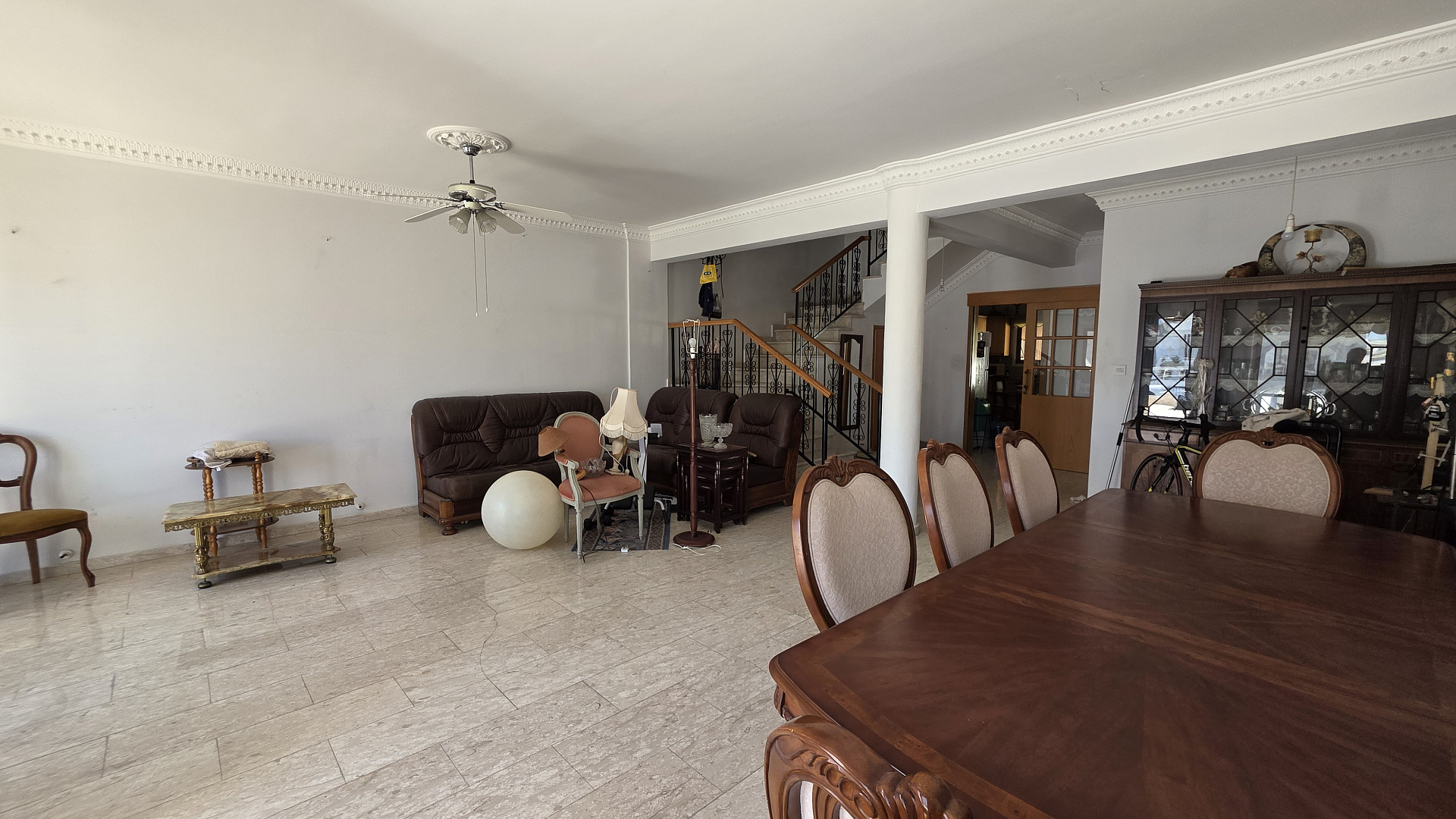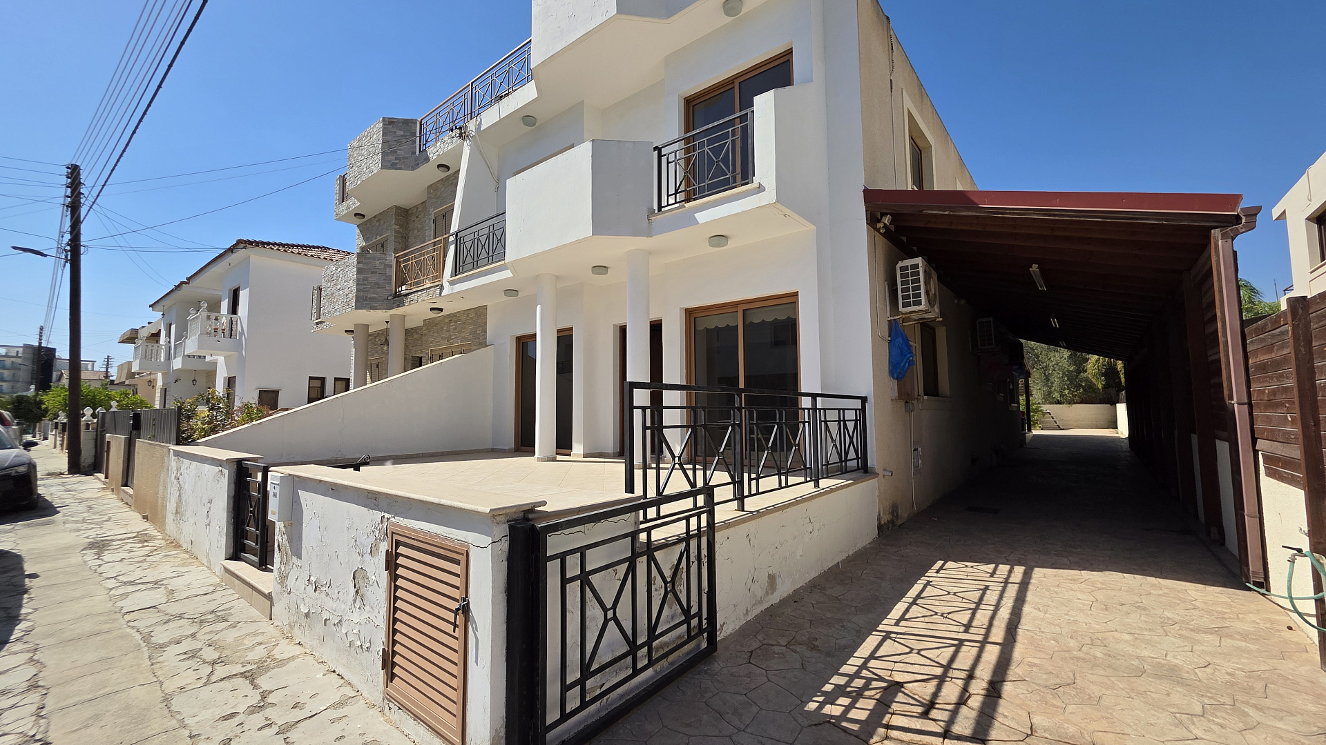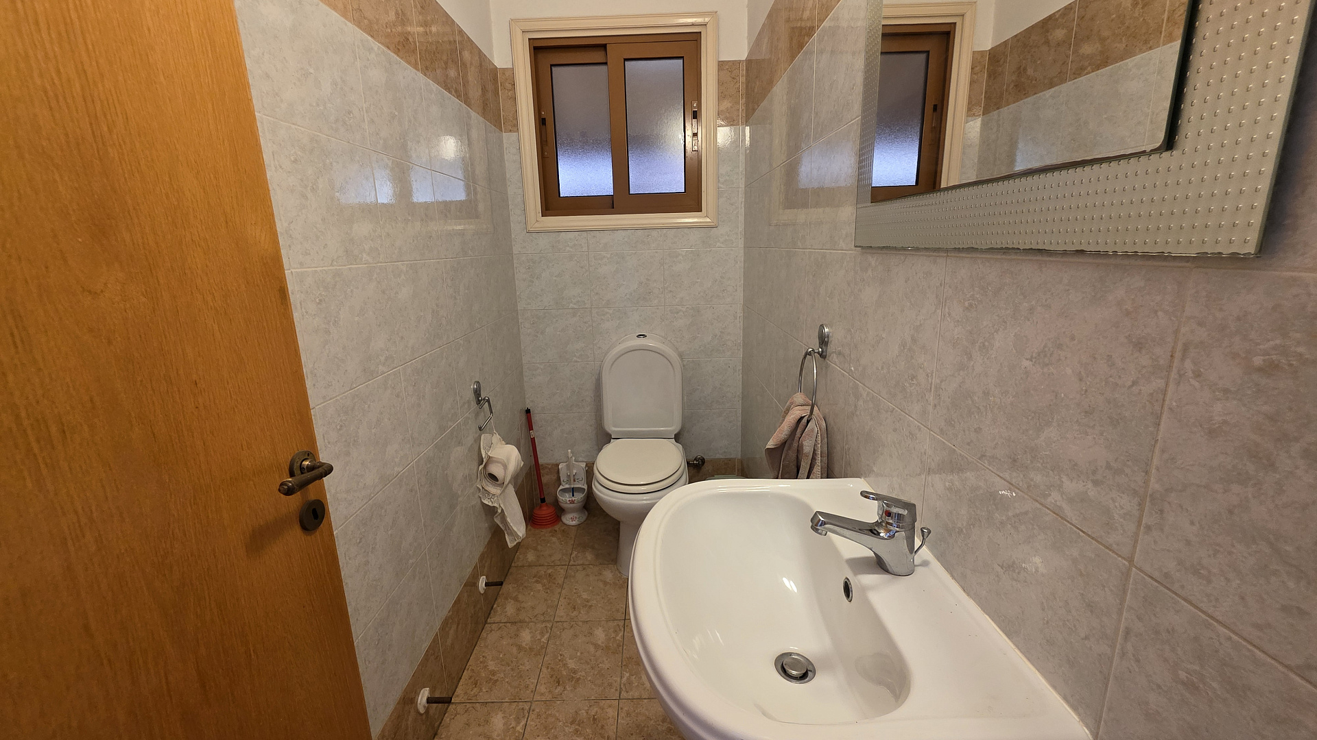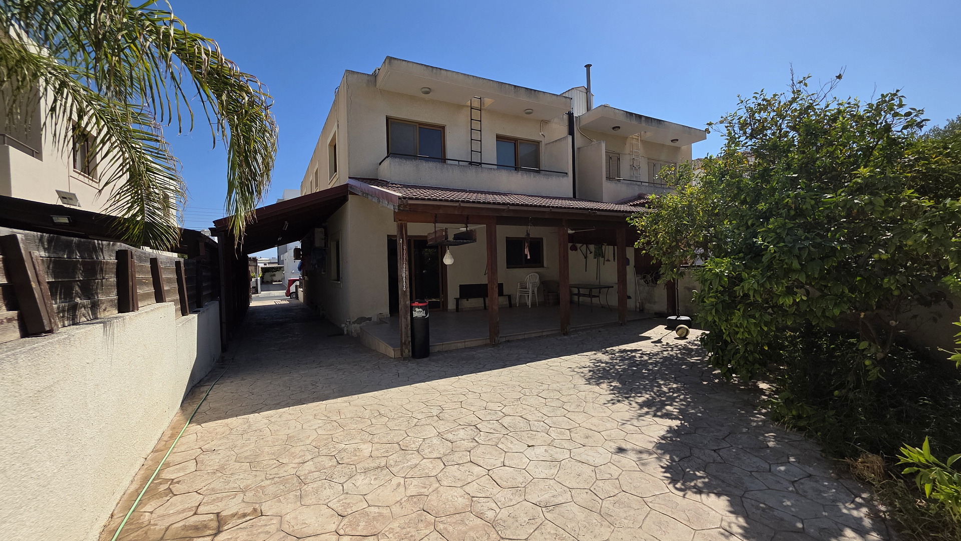/Spacious house for sale in the area of Sotiros, Larnaca. It offers 4 bedrooms, 2 bathrooms and a guest toilet. Fully furnished and equipped with household appliances. Large separate kitchen with access to the terrace. Covered parking for 2 cars and a well-kept garden. A quiet area with all the necessary infrastructure. The title is available. The sea is about a 3-minute drive away.