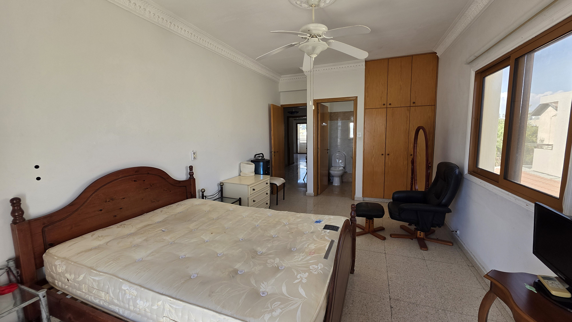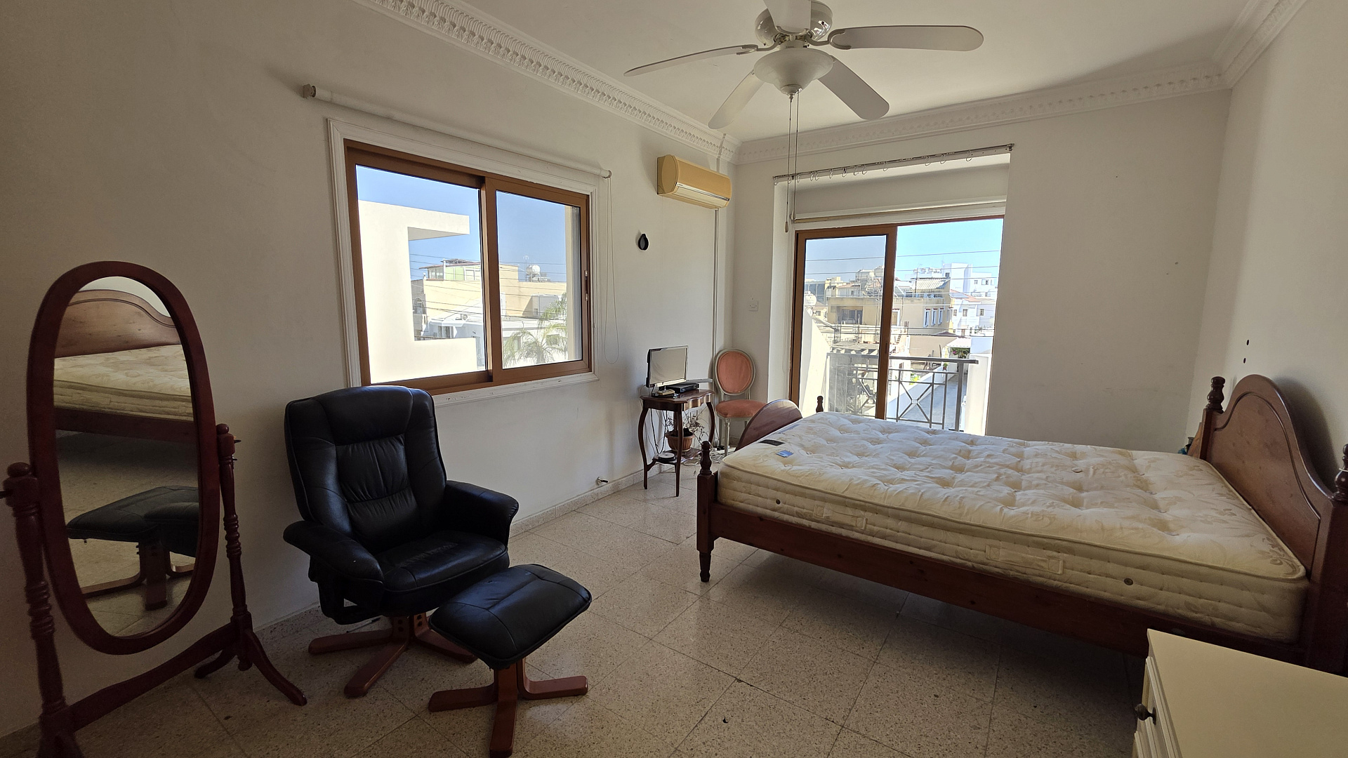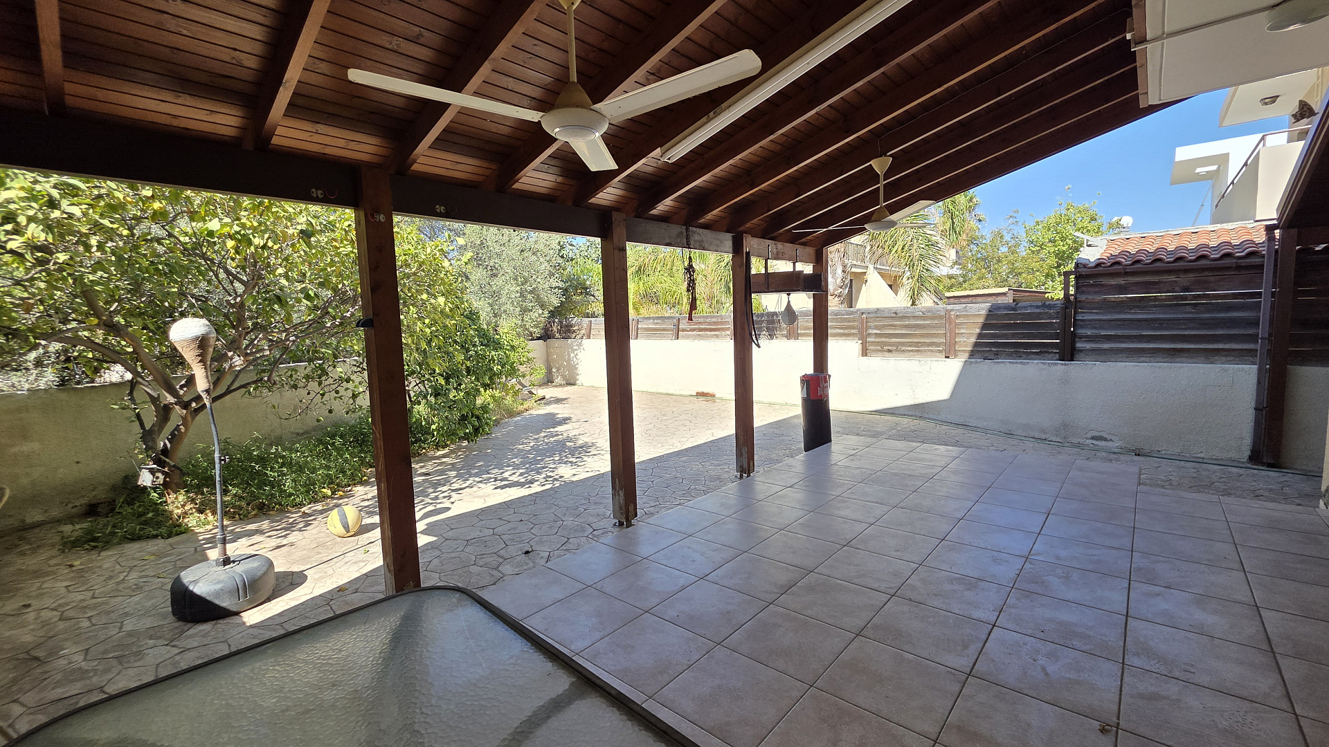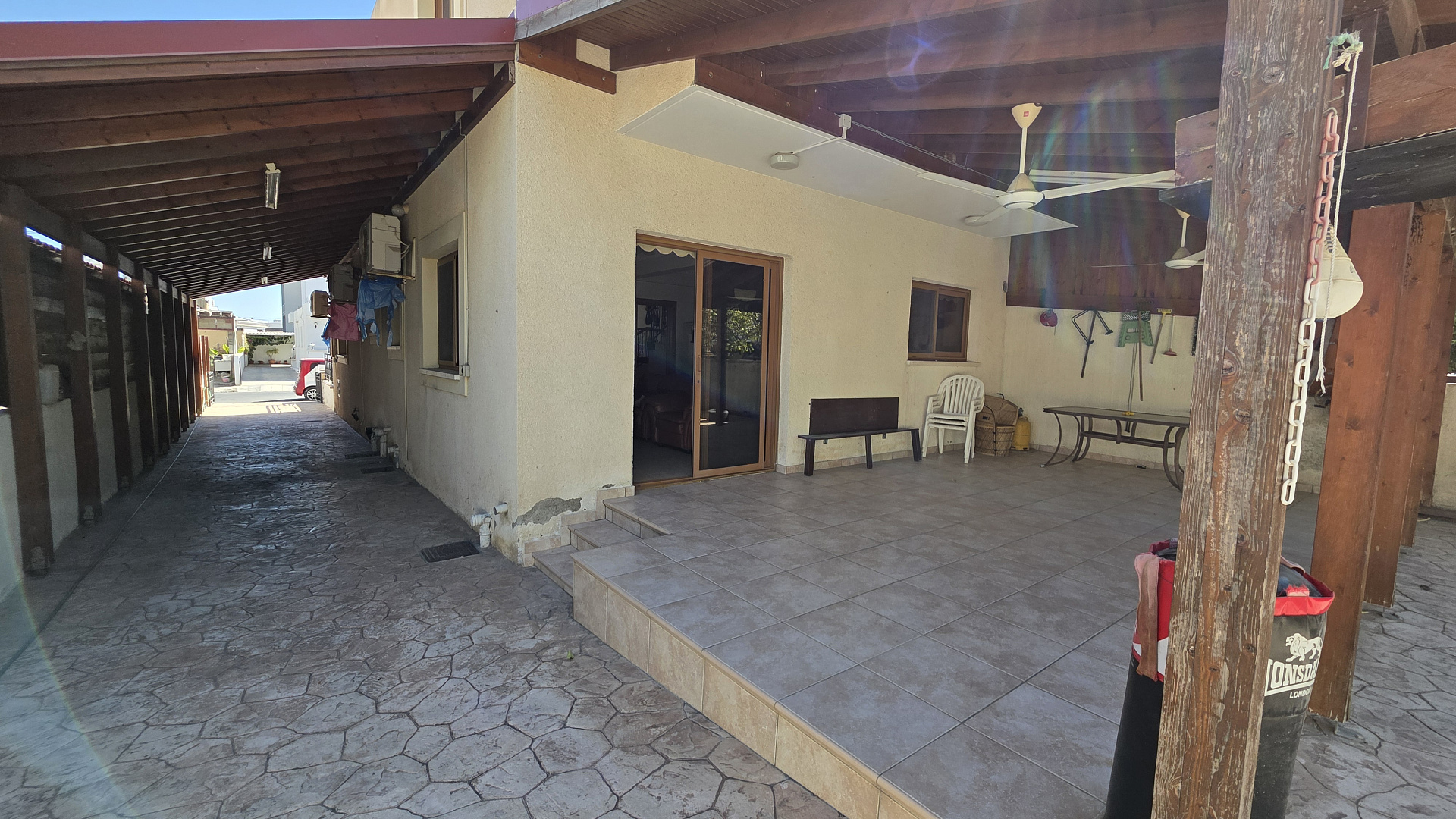 /Spacious house for sale in the area of Sotiros, Larnaca. It offers 4 bedrooms, 2 bathrooms and a guest toilet. Fully furnished and equipped with household appliances. Large separate kitchen with access to the terrace. Covered parking for 2 cars and a well-kept garden. A quiet area with all the necessary infrastructure. The title is available. The sea is about a 3-minute drive away.
