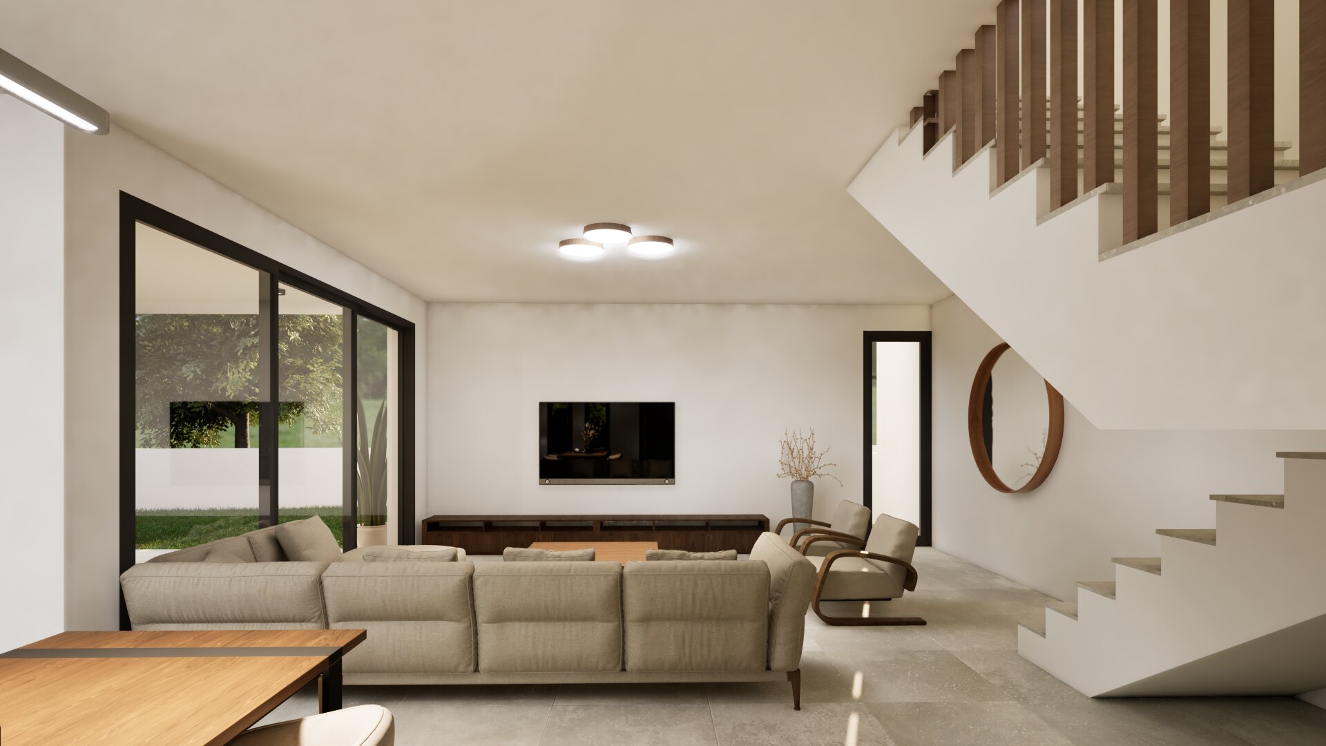 The house has a total area of 151 m2 and offers enough space for a comfortable life. On the ground floor there is a spacious open-plan living room and kitchen, as well as a guest bathroom. On the second floor there are three cozy bedrooms and two bathrooms.