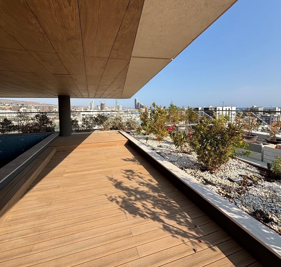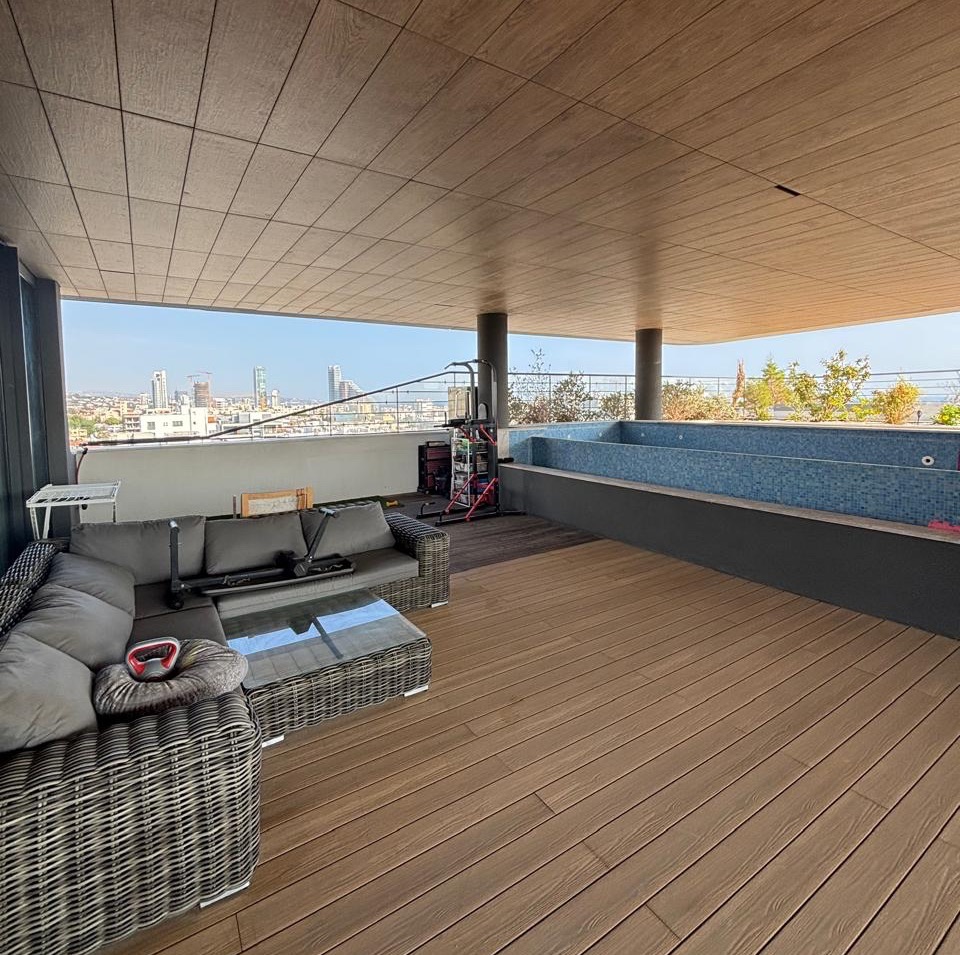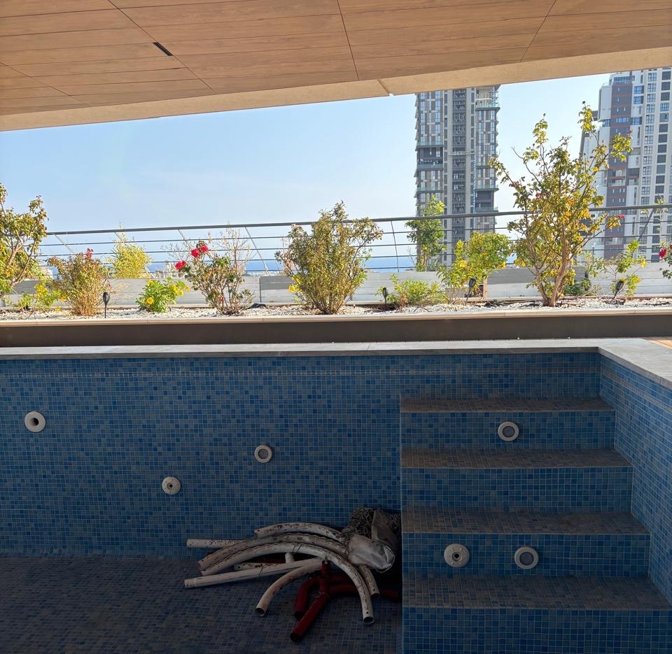 For sale a three-bedroom penthouse with a covered area of 115 m2 in the area of Potamos Germasogeias, Limassol. The penthouse includes 3 bedrooms, bathrooms, an open—plan kitchen, a living room, a covered veranda of 121 m2, an open veranda of 21 m2, a planter area of 91 m2, a private pool and 1 parking space; the total selling area is 236 m2, the total area is 348 m2; located on the 6th floor. The property is finished and engineered to a high standard: parquet in the rooms, marble in the bathrooms, 3.15 m ceilings, high-security entrance doors, intercom, Underfloor heating, central VRV air conditioning system, aluminum thermo profiles with double-glazed windows, European plumbing. The property is located in a gated gated community with a landscaped garden, just 500 meters from the sea and the entire infrastructure of the tourist area. Residents of the complex have access to the hotel-level infrastructure: an outdoor swimming pool, a semi-professional indoor heated pool, a SPA area, a gym, a playground, a club with a game room, concierge services and underground parking. The building reaches 8 floors, the architecture was designed by a leading London bureau and inspired by the silhouette of superyachts, with panoramic balconies and spacious terraces.