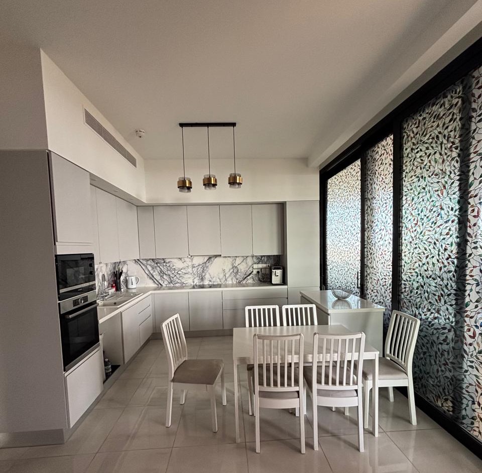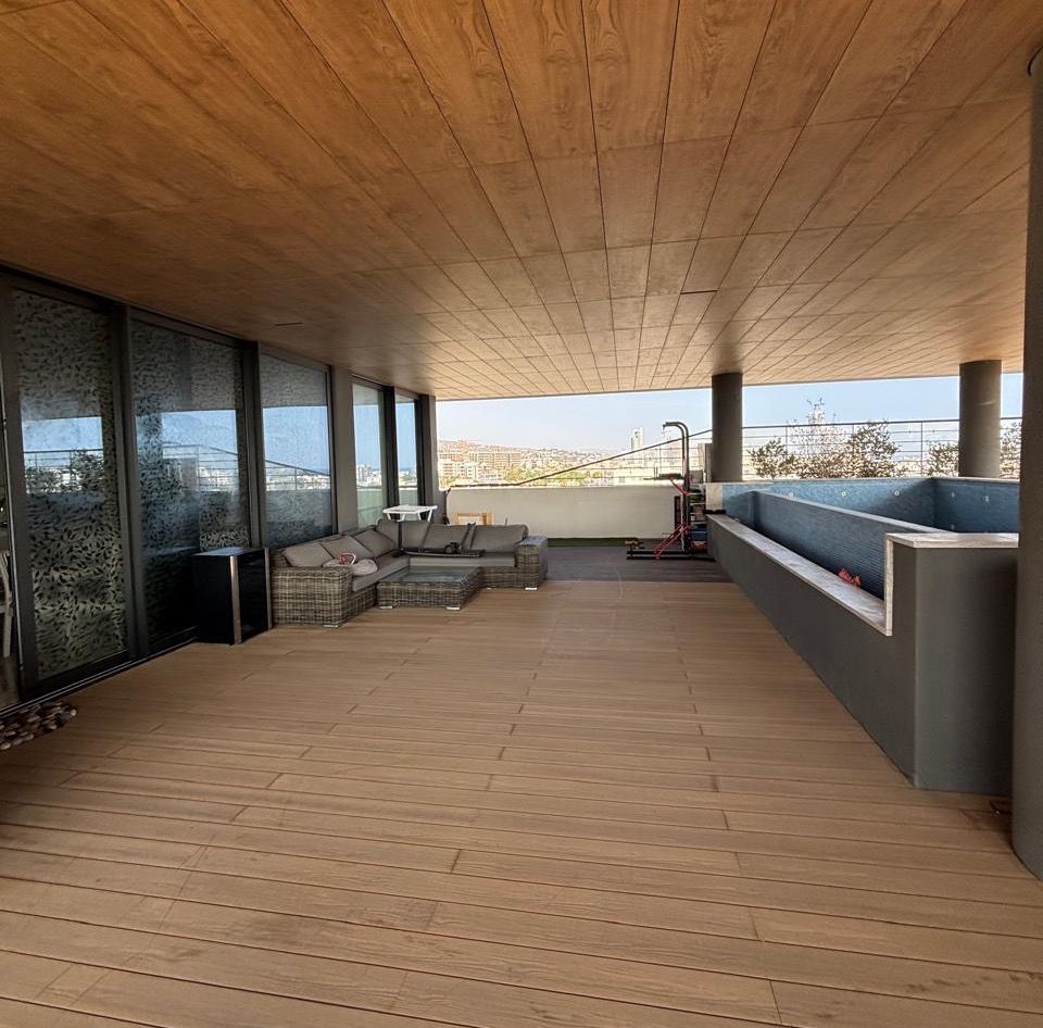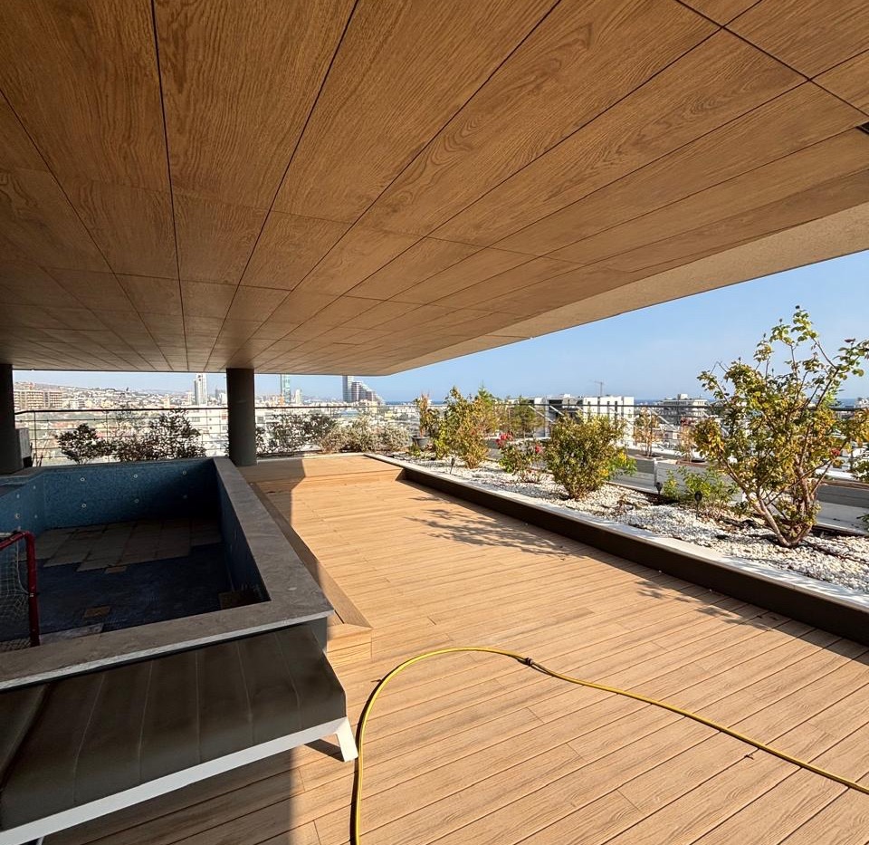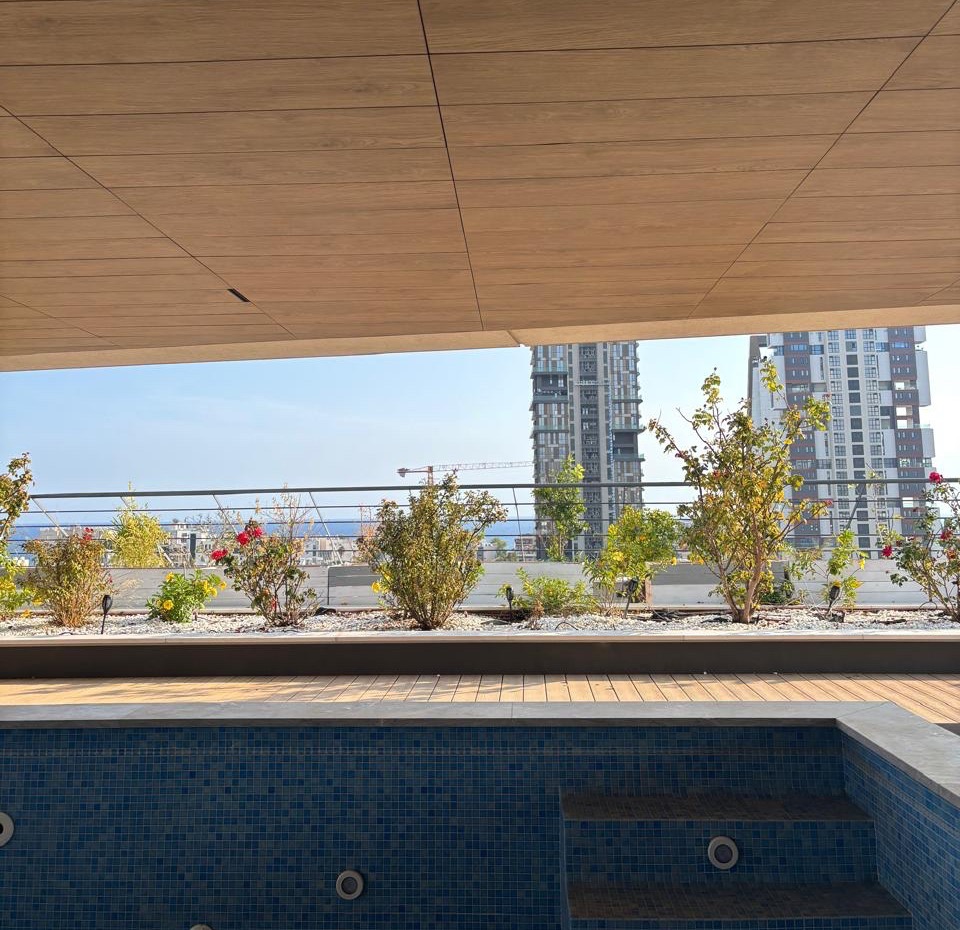 For sale a three-bedroom penthouse with a covered area of 115 m2 in the area of Potamos Germasogeias, Limassol. The penthouse includes 3 bedrooms, bathrooms, an open—plan kitchen, a living room, a covered veranda of 121 m2, an open veranda of 21 m2, a planter area of 91 m2, a private pool and 1 parking space; the total selling area is 236 m2, the total area is 348 m2; located on the 6th floor. The property is finished and engineered to a high standard: parquet in the rooms, marble in the bathrooms, 3.15 m ceilings, high-security entrance doors, intercom, Underfloor heating, central VRV air conditioning system, aluminum thermo profiles with double-glazed windows, European plumbing. The property is located in a gated gated community with a landscaped garden, just 500 meters from the sea and the entire infrastructure of the tourist area. Residents of the complex have access to the hotel-level infrastructure: an outdoor swimming pool, a semi-professional indoor heated pool, a SPA area, a gym, a playground, a club with a game room, concierge services and underground parking. The building reaches 8 floors, the architecture was designed by a leading London bureau and inspired by the silhouette of superyachts, with panoramic balconies and spacious terraces.