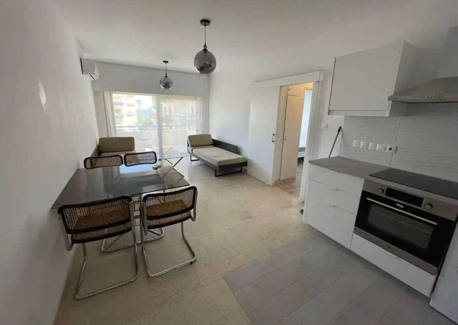 2 bedroom apartment for sale in Germsaogeia, Limassol. The apartment is fully furnished and equipped with household appliances. On the ground floor there is a covered parking space and a swimming pool.