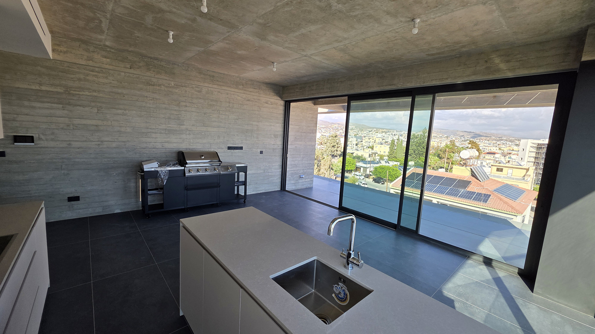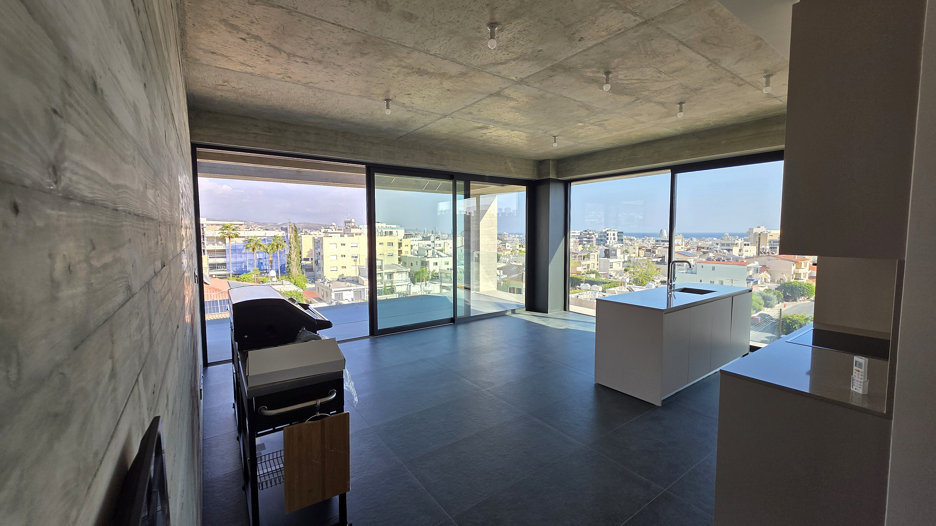 For sale a spacious 2 bedroom apartment with sea views, located in a very quiet residential area in Mesa Geitonia, Limassol. Easy access to the highway, six minutes drive to the sea, supermarkets and other amenities. There are only 7 apartments in the 4-storey building. Modern design with floor-to-ceiling windows and doors. Thermal and waterproofing, photovoltaic system, solar system for water heating. LG wall split units with air conditioning in each room, heating. Provision of a plug for charging electric vehicles in each private parking lot. Thin Super Thermal line windows, double glazing, high-quality kitchens with melamine finish. High-quality plumbing. TV antennas of the central system for the living room and all bedrooms.