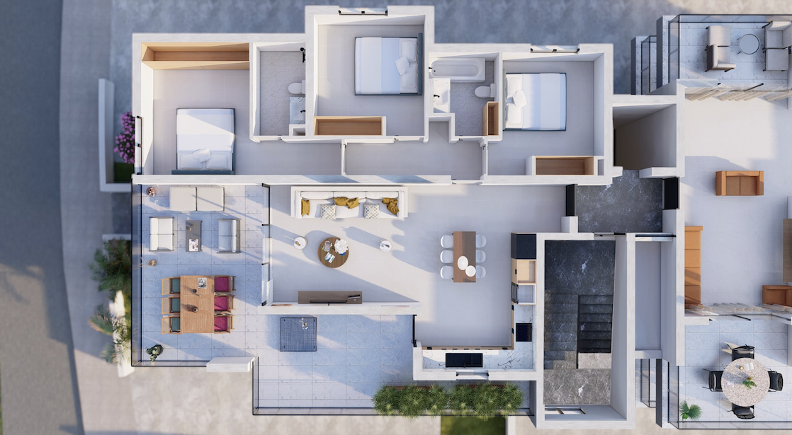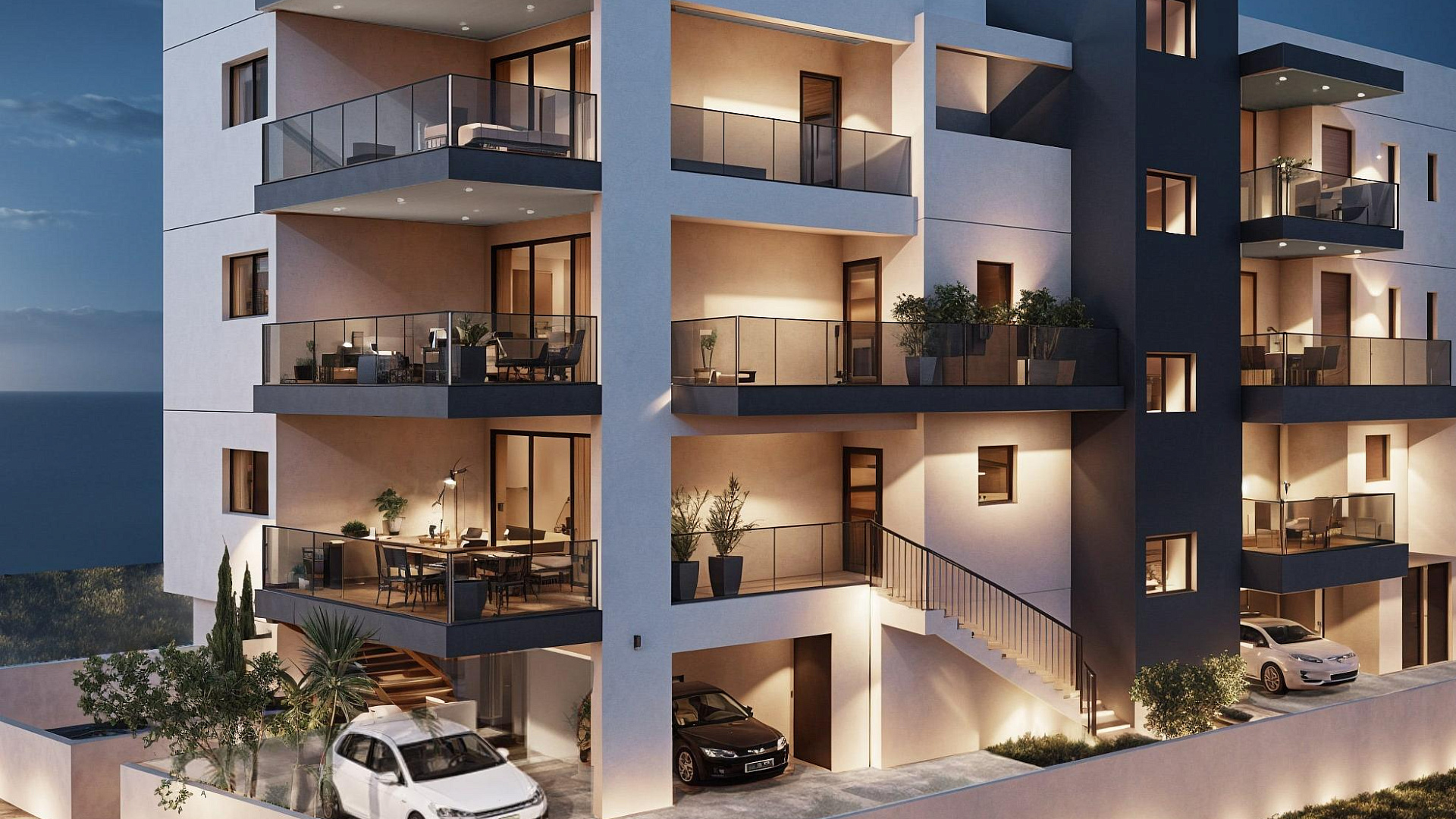 2 bedroom apartment for sale in Lakatamia, Nicosia. The modern residential complex is made using high-quality materials and meets Class A energy efficiency standards. Ceramic tiles and laminate flooring are used in the decoration, the kitchen is equipped with granite countertops, and modern plumbing fixtures are installed in the bathroom. The windows and doors are made of aluminum with double glazing, providing heat and sound insulation. Each apartment has a solar water heater, a water pressure system and its own parking space. Photovoltaic panels are installed to save electricity, and terminals for air conditioners are also provided. This project combines modern design, functionality and convenient location, making it an excellent choice for both living and investment.