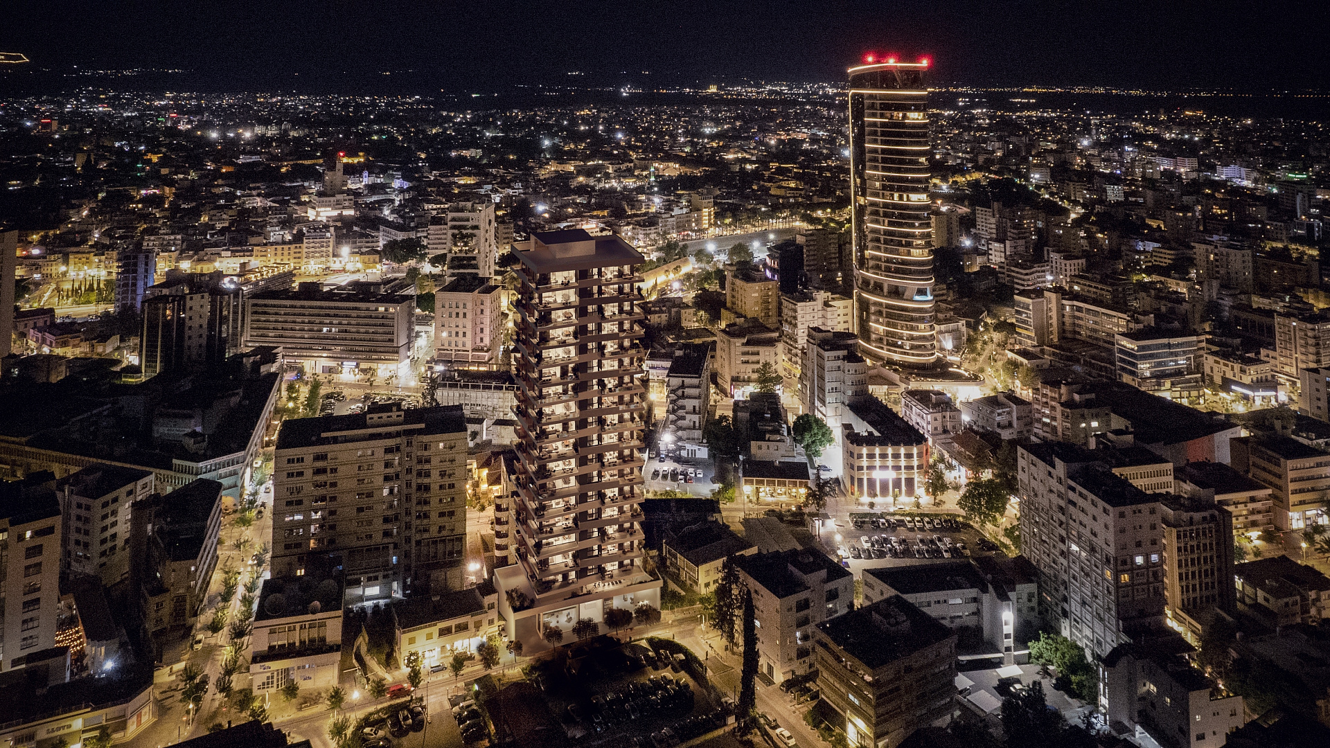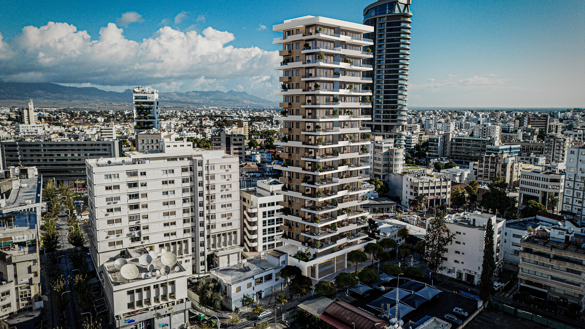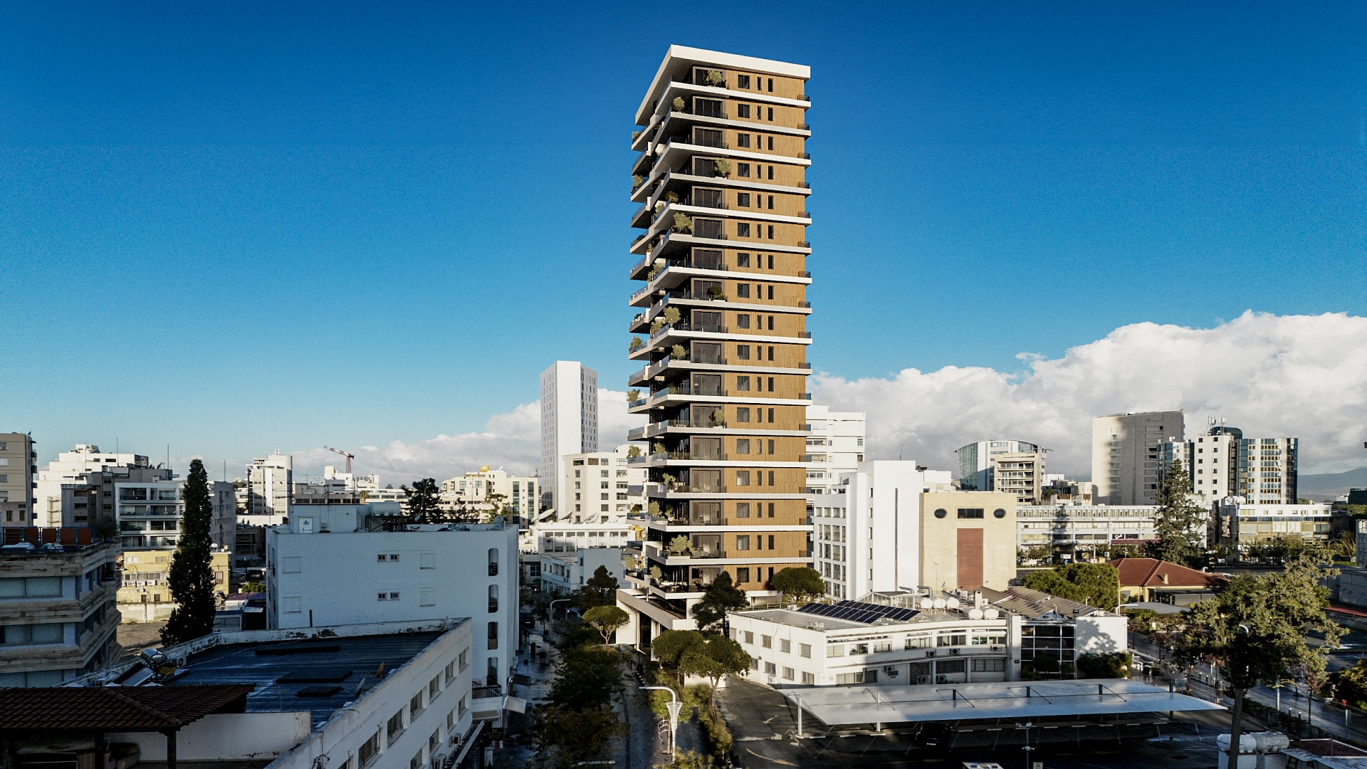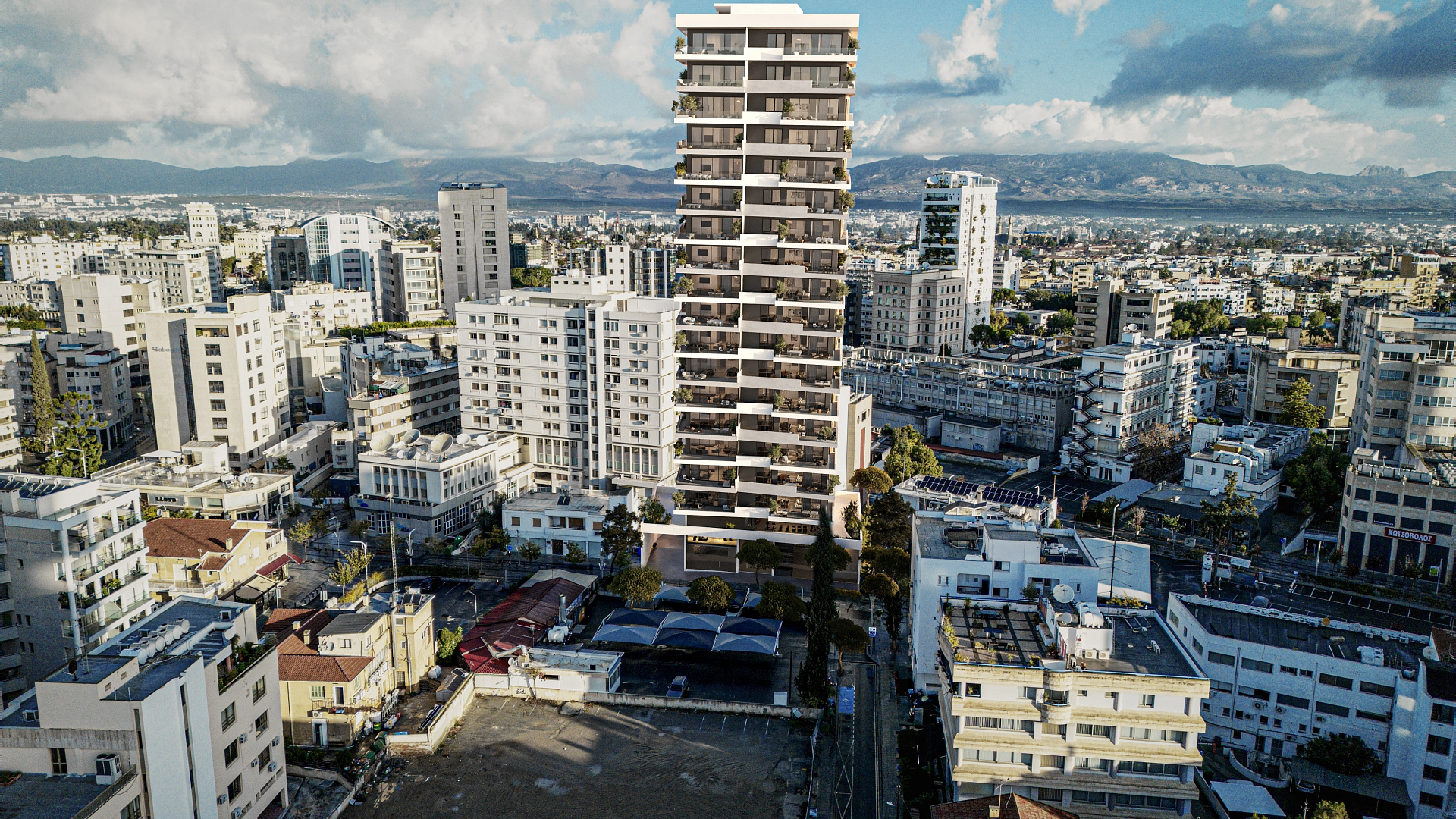 Retail space for sale in a new residential skyscraper in the Walled Old City area, Nicosia. The elegant modern tower harmoniously fits into the historical architecture of the old town and is one of the tallest buildings in the capital — its height reaches 81 meters.