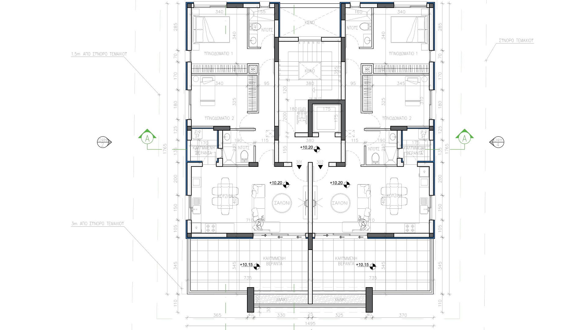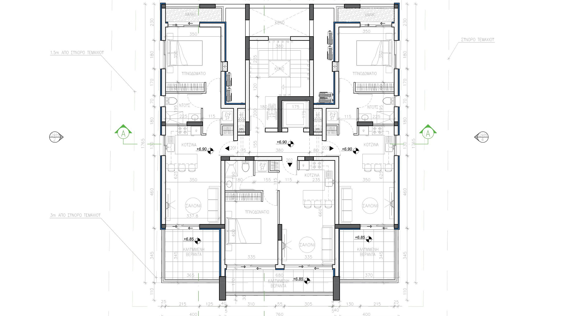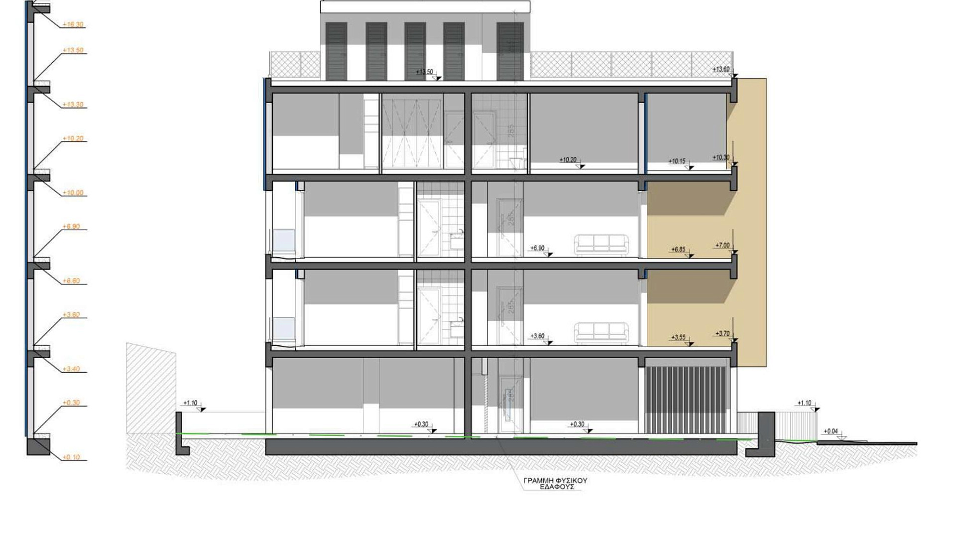 Apartment for sale in Engomi district, Nicosia. The complex consists of eight apartments: six single apartments and two double apartments. Each apartment combines high-end design, finishes and the latest trends using high-quality thermal insulation materials, finishes and plumbing.