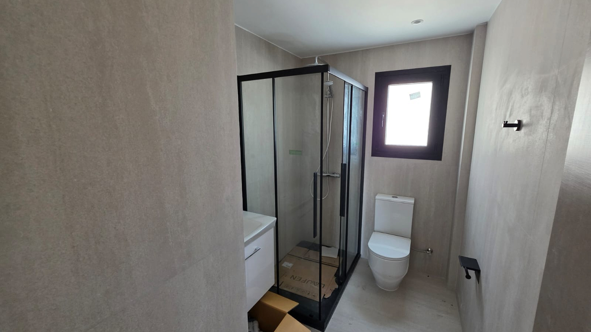 2 bedroom apartment for sale in a new project in Limassol, Germasogeia Village area. The living area is 80m2, the veranda is 18m2. The new complex will consist of 8 high-quality residential apartments, located in a quiet and privileged area. The location provides easy access to the access road, just a 5-minute drive from the roundabout Germasogeia. Quick access to supermarkets, public and private schools, pharmacies, hospitals, etc. Energy efficiency of the building is class A. EU building standards. Closed covered parking. Secure entrance doors. Smart intercom system. Alarm system and security camera in each apartment. Photovoltaic system to save electricity. Installation of air conditioners from the developer. High quality materials. European laminate flooring in the kitchen/living room area and bedrooms. There are high-quality European ceramic tiles on the bathroom floor and on the balcony. High-quality European plumbing. Aluminum window frames with double glazing. The apron and table top are made of high-quality European natural or synthetic granite. Hidden roller shutters in all bedrooms. There is a parking space.