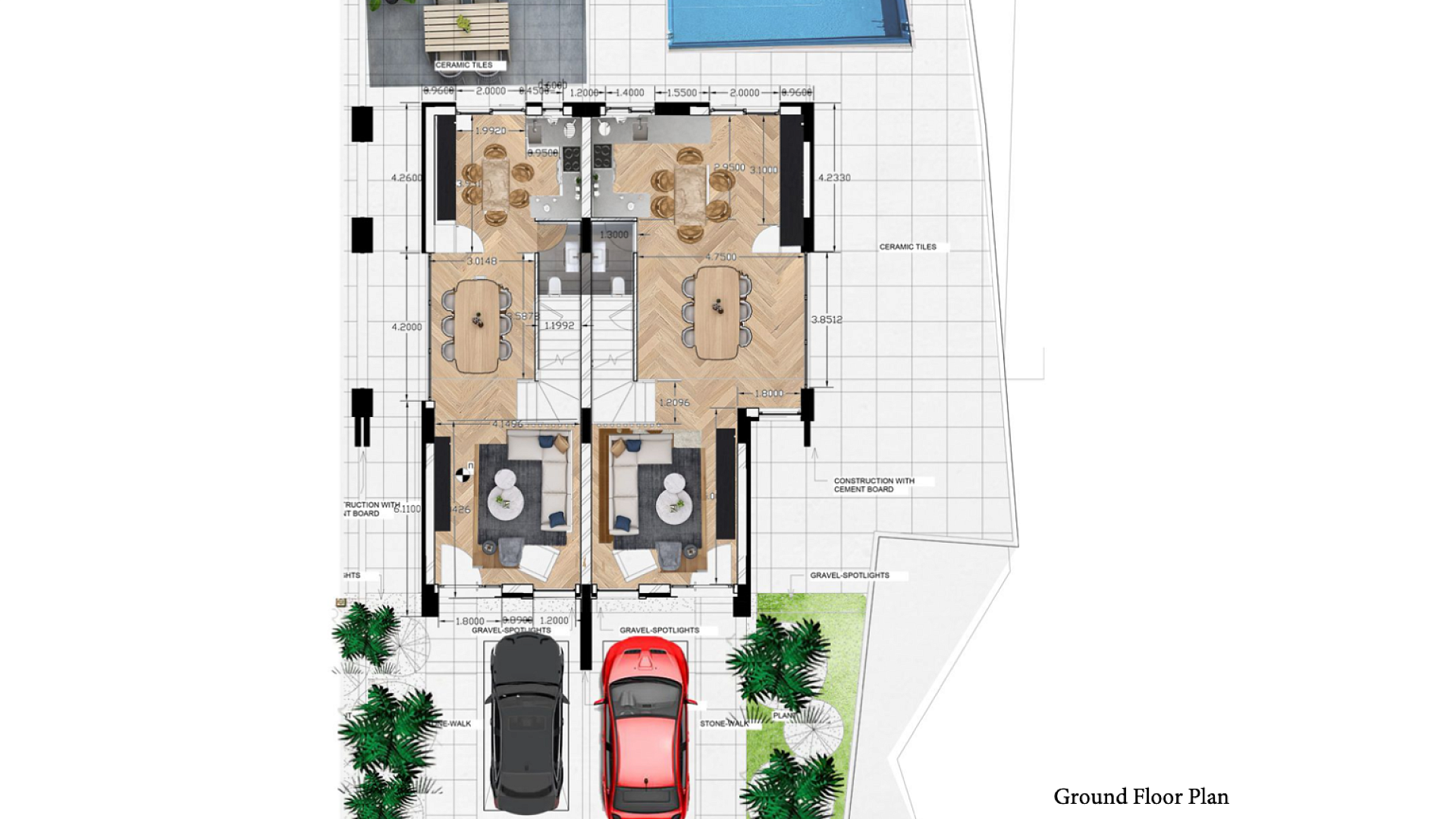 A modern complex of 10 houses in the new developing area of Livadia, Larnaca. This is a series of 2-storey houses with a unique exterior design, each house has 3 bedrooms, 2 bathrooms, a guest toilet, verandas. With beautiful views of the surrounding area, private garden and parking. All houses have a modern open plan with a custom kitchen, built-in wardrobes, large double glazed windows and much more. Reinforced concrete frame designed for local earthquake regulations. Photovoltaic panels for every home.