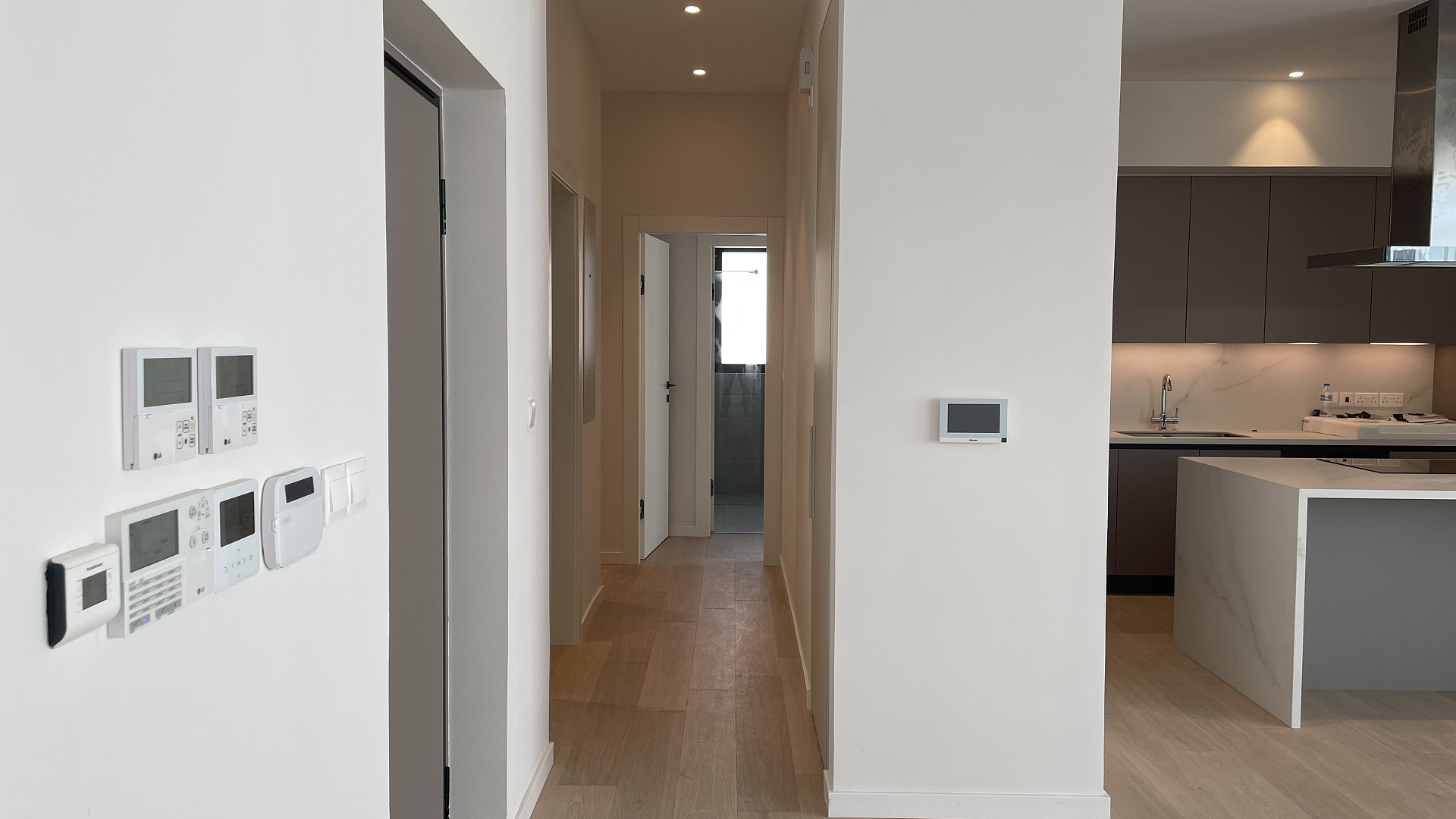 3 bedroom apartment for sale in the very center of Nicosia. This complex will consist of 14 luxury apartments, a lobby, an underground parking lot, a barbecue area, and a children's playground. The building fully complies with European antiseismic standards. The fire system. Video surveillance in all parking lots and on the ground floor. Each apartment has a security system, fire alarm system, smoke detector, Ethernet connections in all bedrooms and living/dining room, Wi-Fi connection, USB charger sockets in all bedrooms and living/dining room. Individual photovoltaic system of 3 KW. Laminate flooring in the living room, kitchen, bedrooms, ceramic tiles in bathrooms and on verandas. Fully installed VRV system in all bedrooms and living/dining room. Mechanical ventilation in the kitchen and toilets. There is an inlet for installing a heat pump for underfloor heating in all bedrooms and living/dining room with individual temperature control. Water pump, drinking water in the kitchen. Cold water storage tank and hot water storage tank. Two parking spaces.