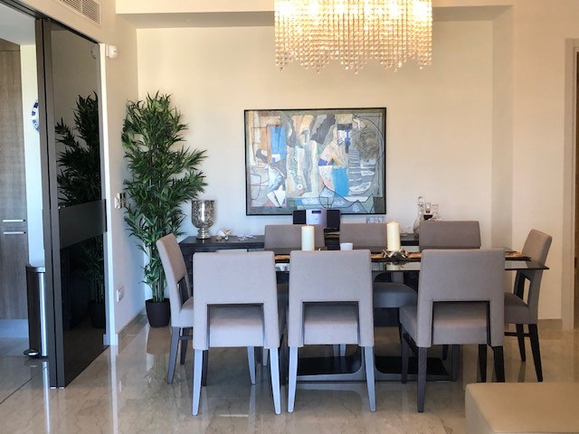 For sale 5 bedroom apartment in a luxury complex in Limassol Marina. 50 meters from the sea, large swimming pool, beautiful garden, covered Parking, Concierge service 24 hours, 2 storage room. There are large verandas, 4 bathrooms, 4 bedrooms, living room / study, large kitchen, living room. In each room there are air conditioners with VRV system, Underfloor heating, quality appliances, new furniture.