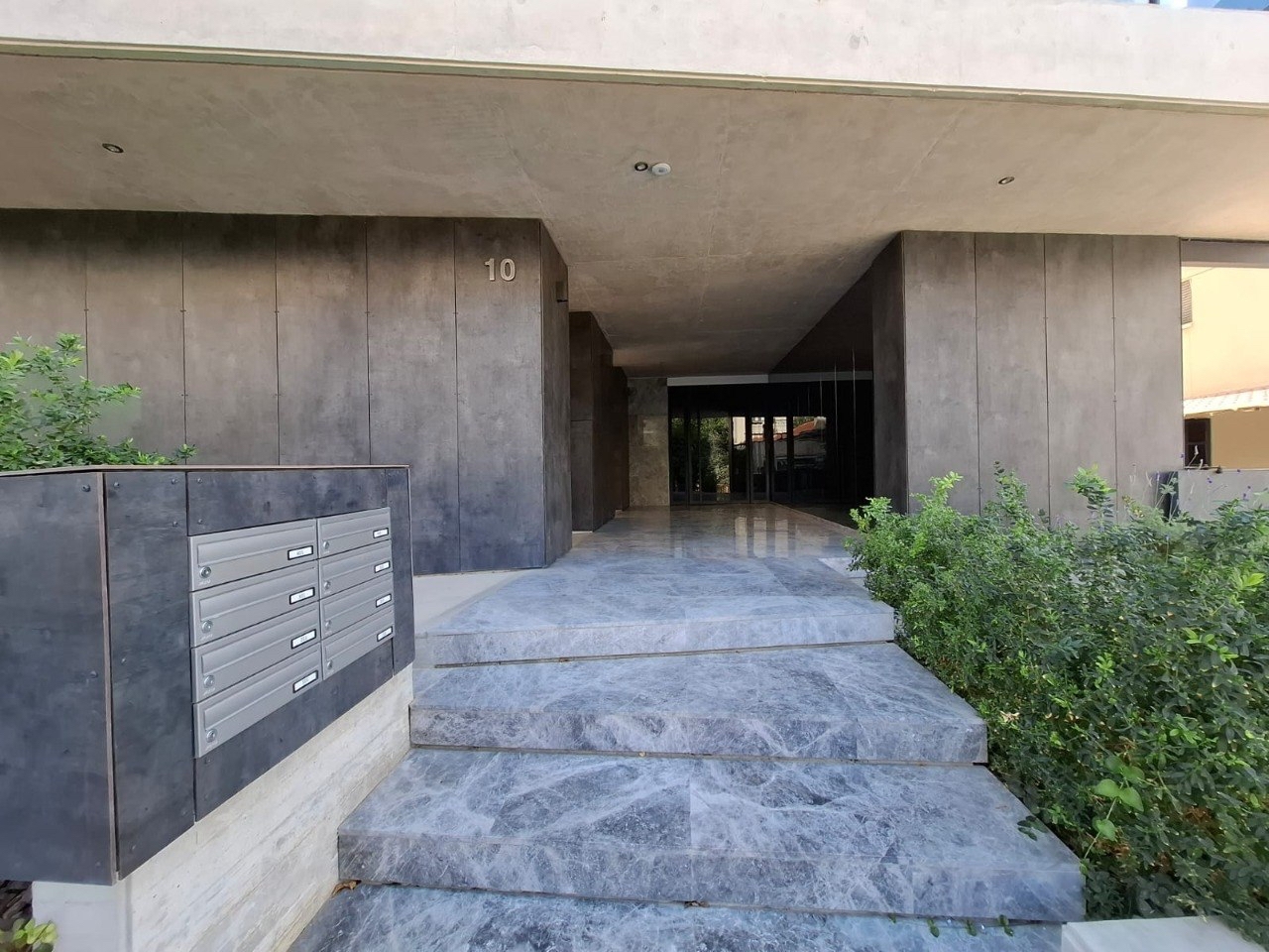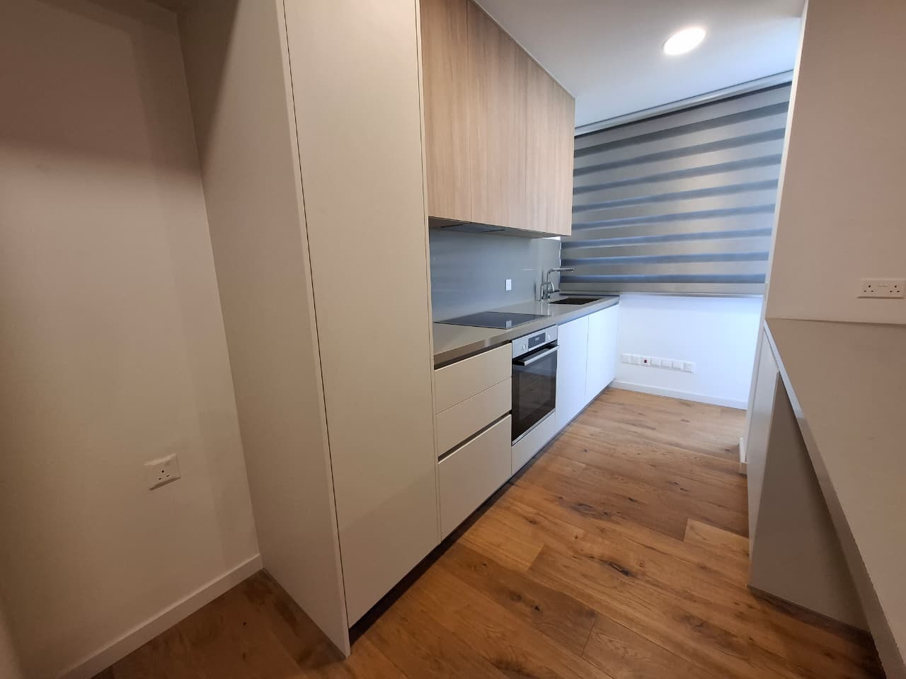 Two-bedroom apartment of 91 m2 for sale in Acropolis, Nicosia. The apartment includes two bedrooms, two bathrooms, an open living room with a dining area, a fully equipped kitchen, a spacious covered veranda of 18 m2, an additional kitchen veranda and a storage room. The property is unfurnished, equipped with VRV air conditioning in the kitchen and dining room, separate split systems in the bedrooms, smart electric shutters, underfloor heating, built-in kitchen appliances, reinforced thermal insulation walls, solar panels, solar water heating system, intercom, alarm system, pressure water pump, double glazing and equipment for landscaping the balcony. The complex includes an elevator, covered parking and a separate storage room. The apartment was built in 2023 and features a modern design and high-quality finishes, including a solid wooden floor. Located in a prestigious and convenient area with quick access to the city center, highway, close to KPMG offices, parks, supermarkets and all necessary infrastructure. It is ideal for both living and investment due to its high rental attractiveness in a sought-after area.