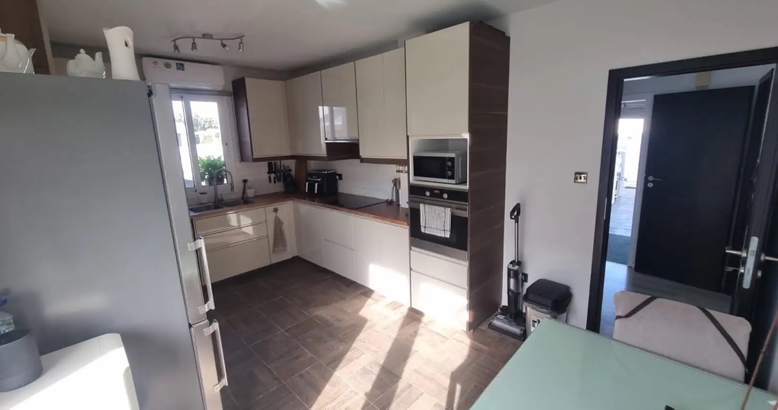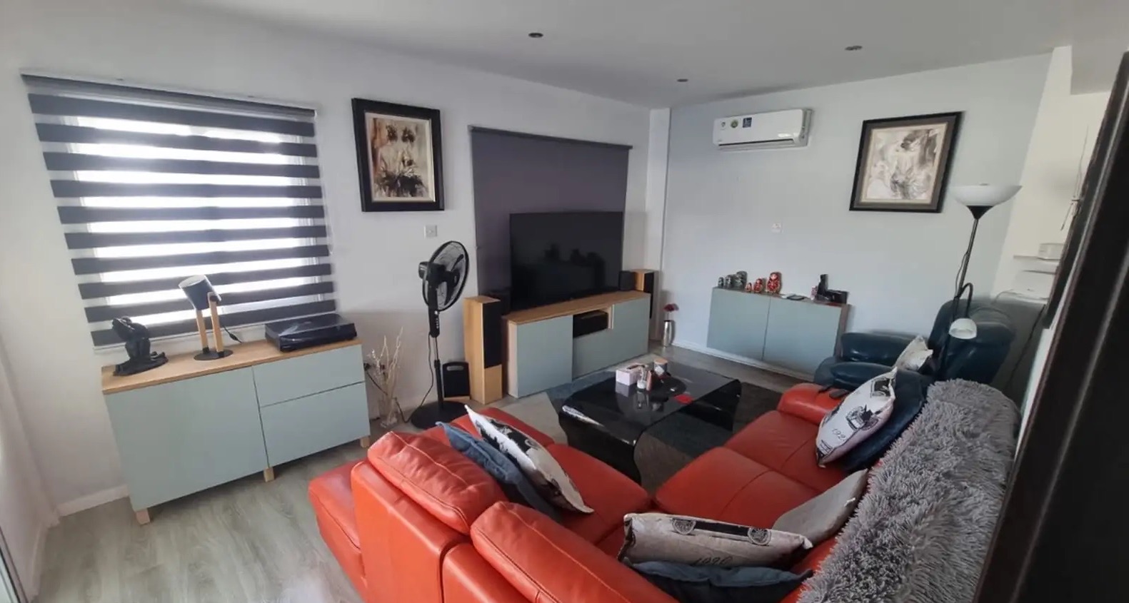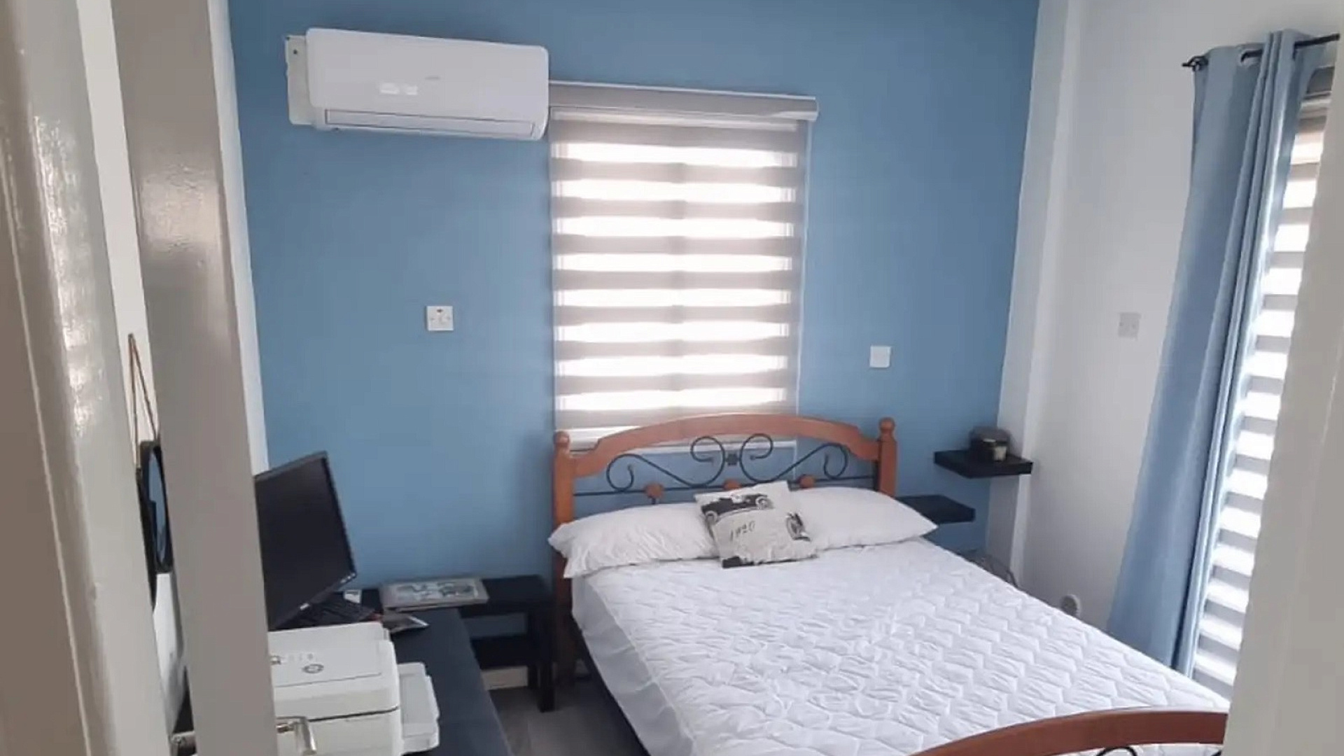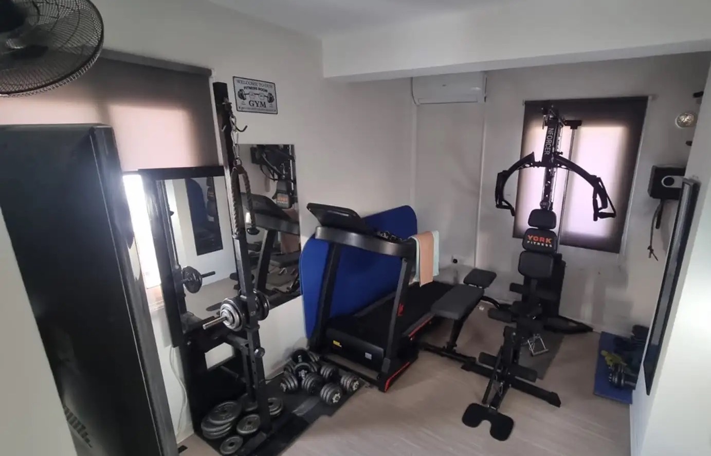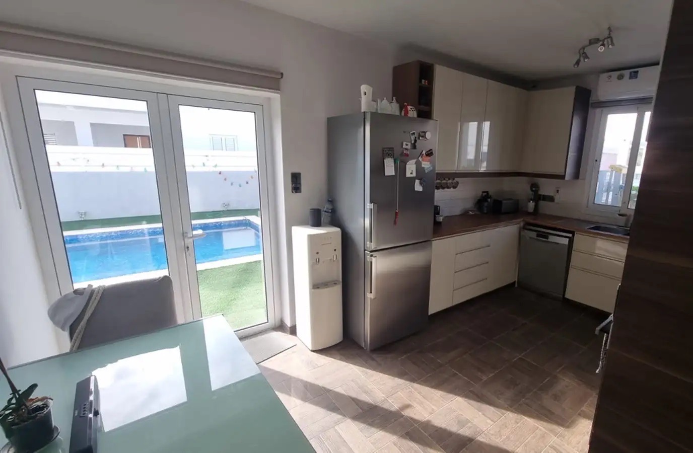 For sale a four-bedroom villa of 127 m2 on a plot of 400 m2 in Agia Thekla, Famagusta. The villa includes four bedrooms, three bathrooms, a kitchen, a living room, a balcony, a gym and a landscaped garden. The property is unfurnished. There is a private swimming pool, outdoor parking, and all communications are provided, including full air conditioning in all rooms. The villa was built in 2001. There is a title of ownership.