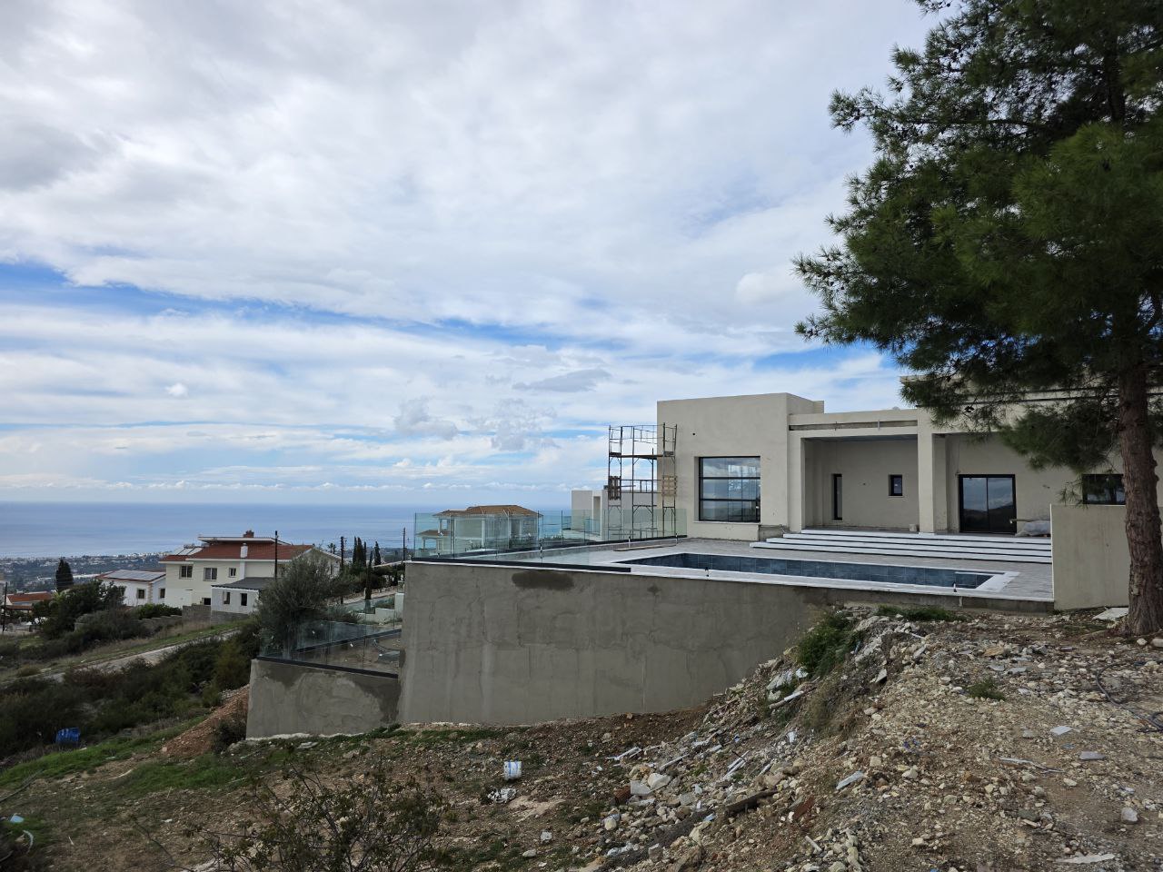 Luxury villa for sale with 6 bedrooms and an additional room for staff in Tala, Paphos. This modern residence is located in one of the most prestigious and peaceful areas of Paphos, known for its stunning panoramic views of the Mediterranean Sea and magnificent sunsets. The architecture of the villa is thought out to the smallest detail and harmoniously combines with the nature of the Tala hills.