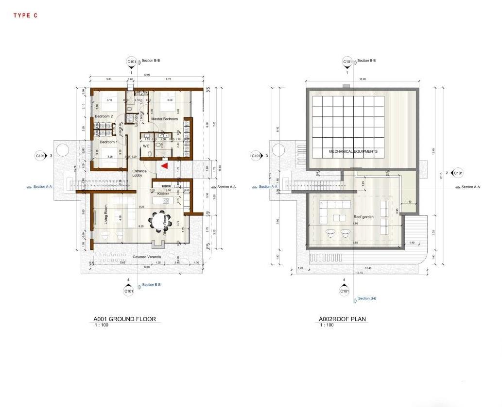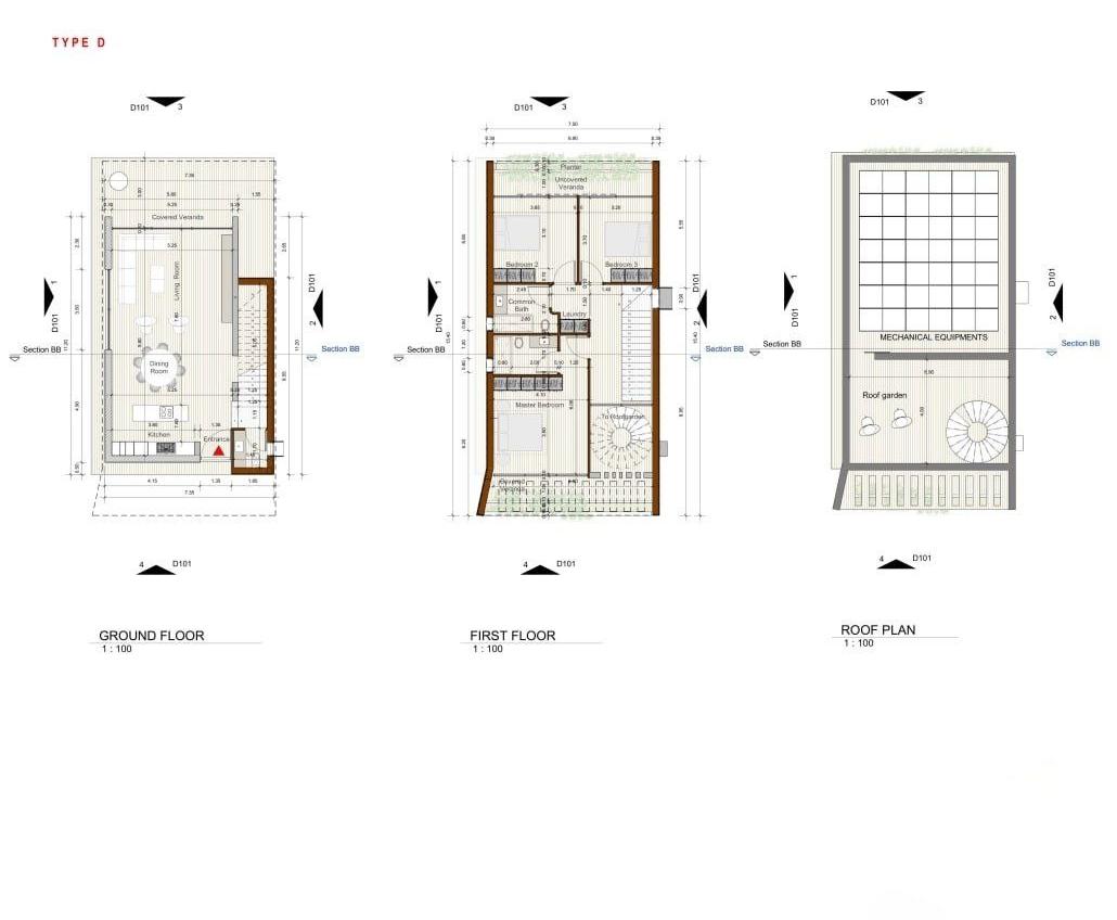 The bungalow is located on a plot of 643 m2 and has parking for a car, a garden and a rooftop terrace with panoramic views. The house has 3+1 bedrooms, 2 bathrooms, a guest toilet, a bright living room, a modern kitchen.