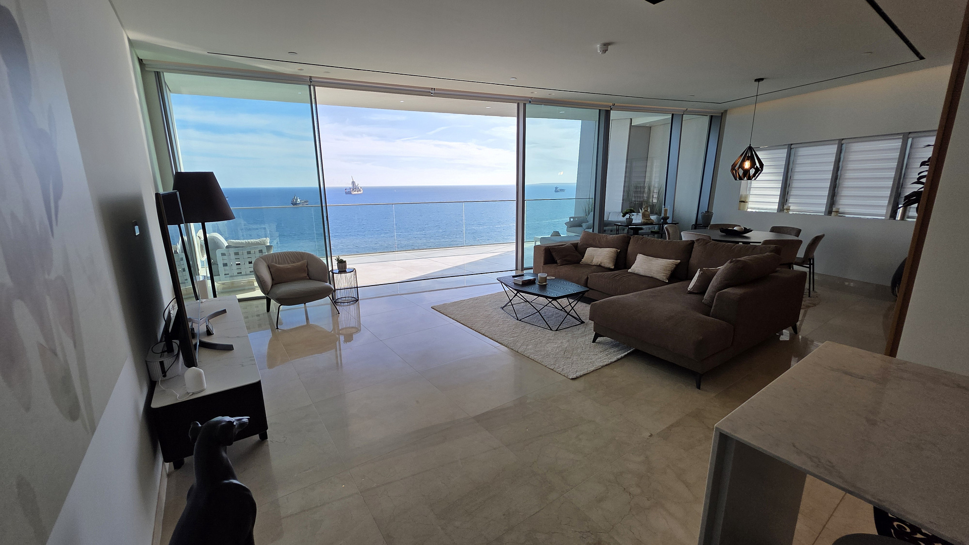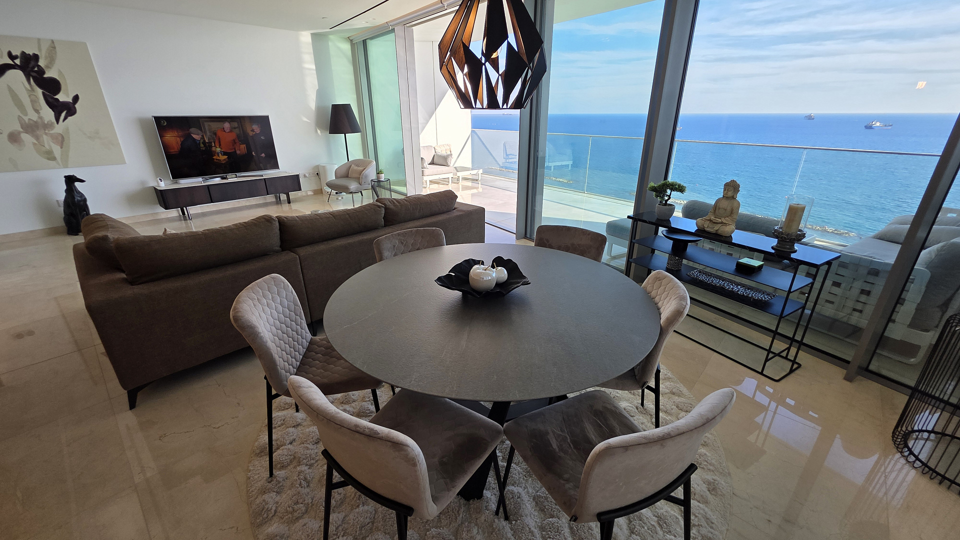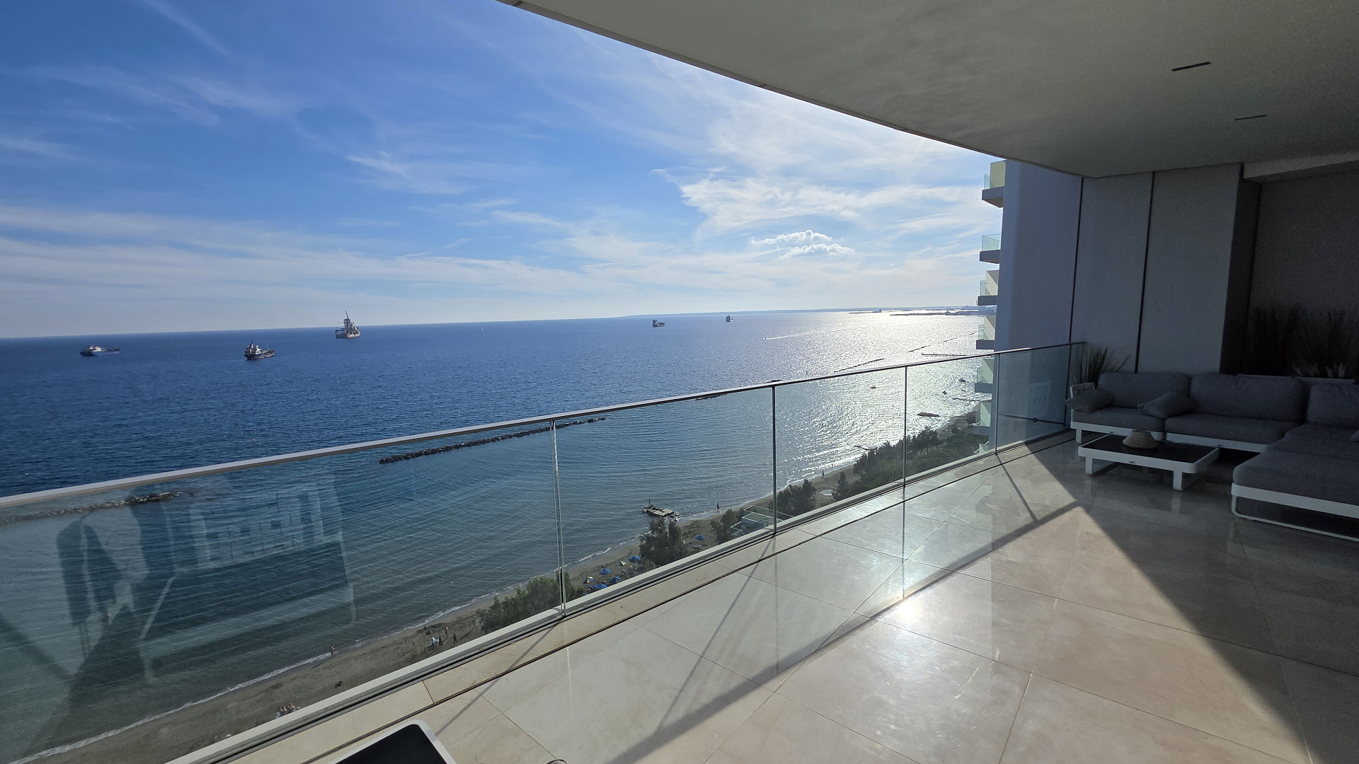 For sale a two-bedroom apartment of 162 m2 in the Neapolis Limassol area, with panoramic sea views in an elite residential complex. The apartment is fully furnished, includes three bedrooms and two bathrooms, an internal area of 136 m2 and a covered veranda of 26 m2. The spacious interior is decorated with marble, glass and wood, panoramic glazing provides maximum natural light. The complex has an outdoor swimming pool, a SPA, a gym, a restaurant, a business center and concierge services. The apartment is located just 50 m from the beach, near a school, shops and the city center.