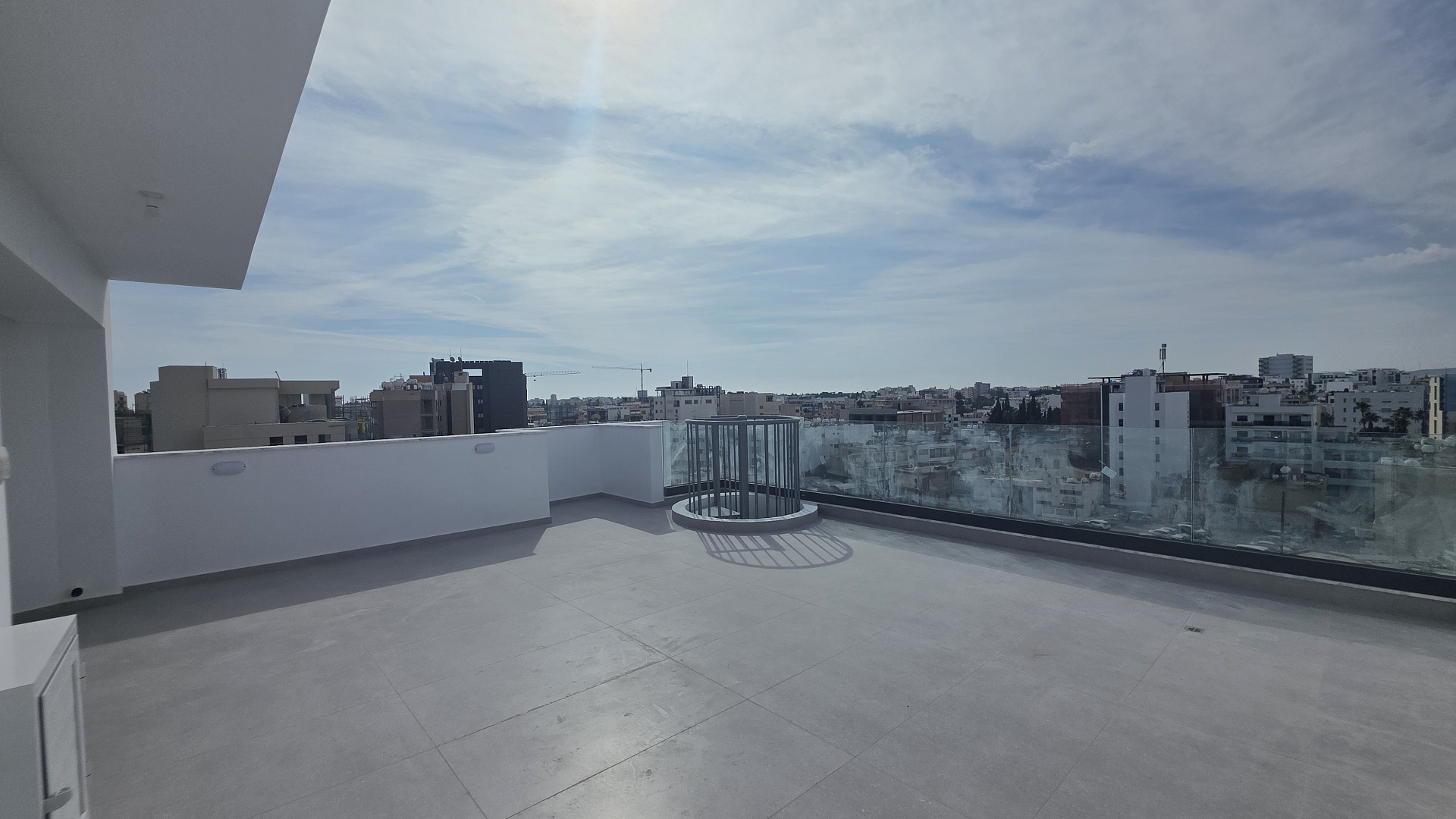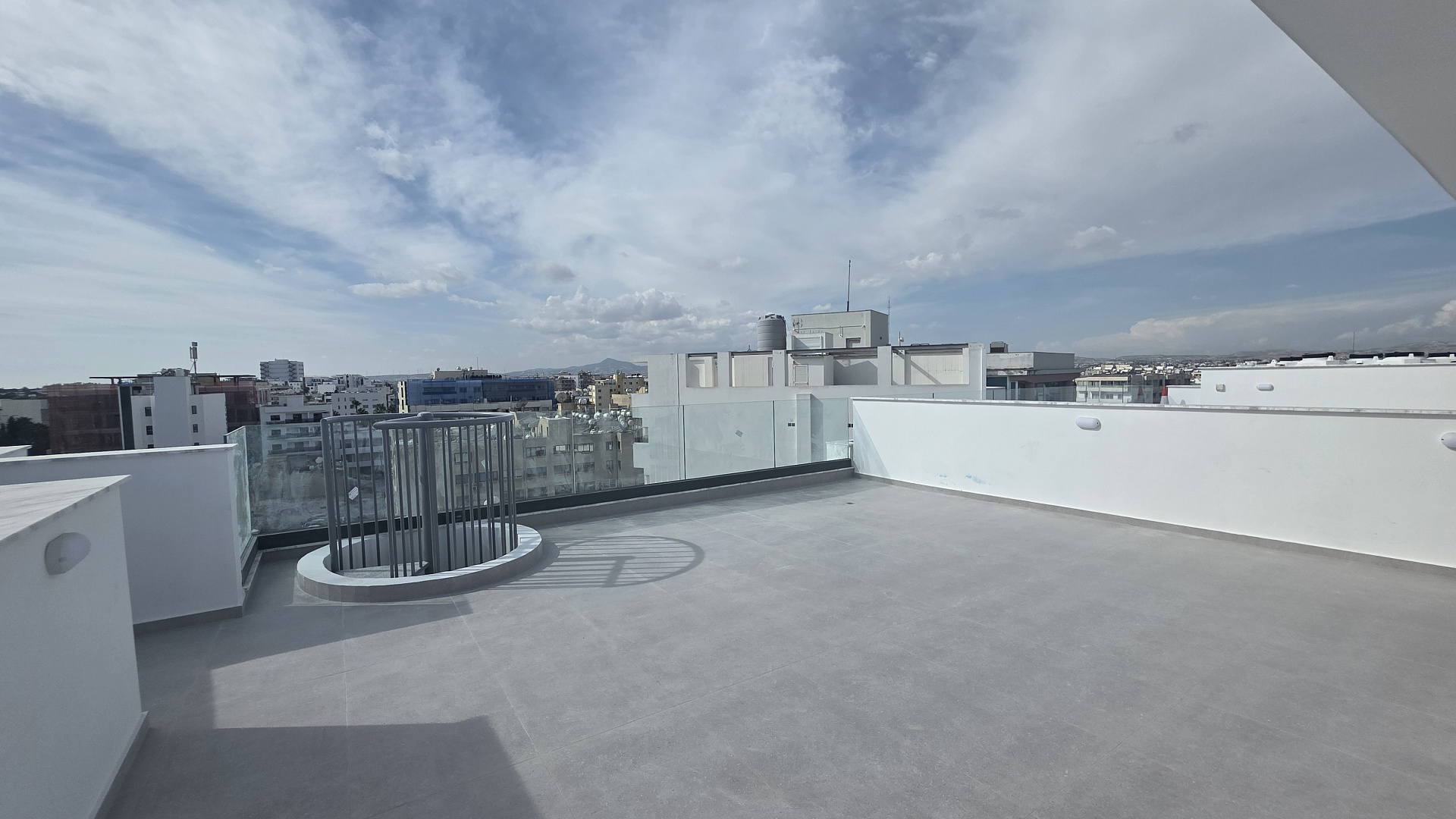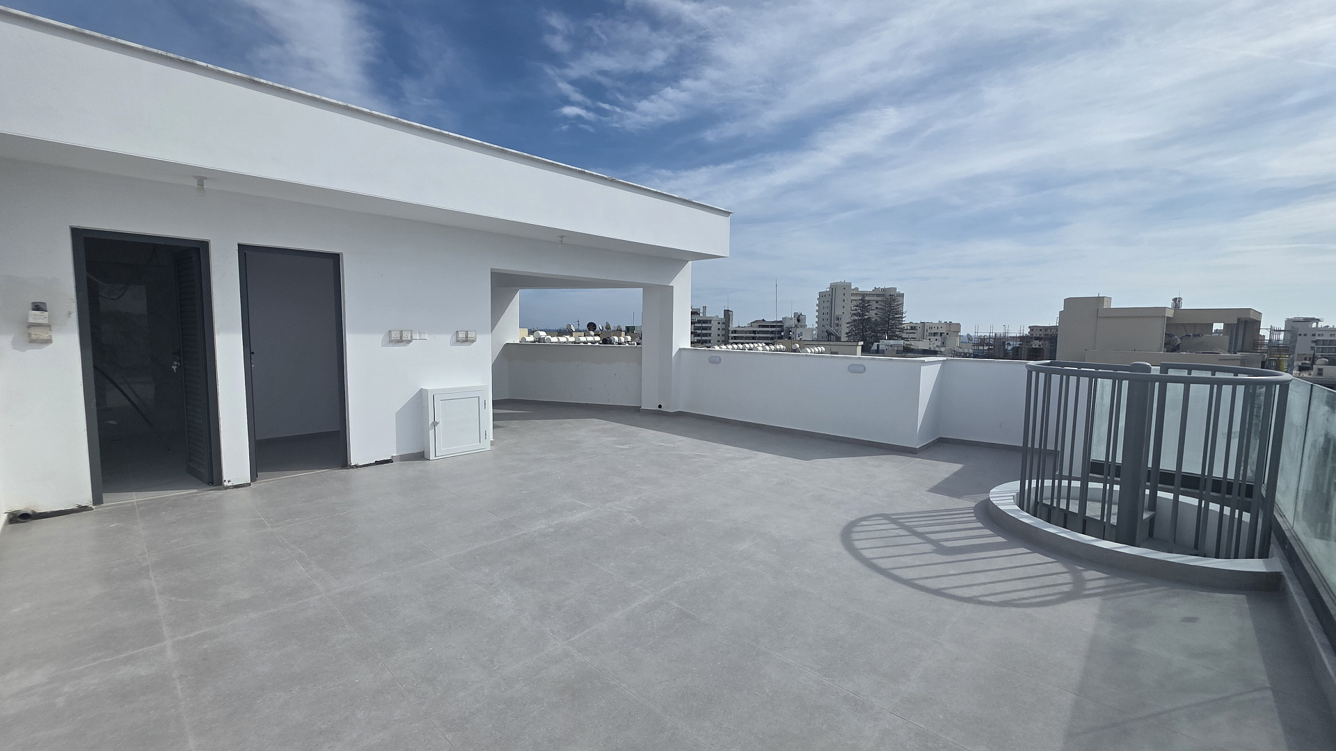 An exquisite penthouse for sale in the center of Larnaca. The complex has 5 floors and 20 apartments, it is the perfect combination of comfort and modern technology. The penthouse has 2 bedrooms and 2 bathrooms, as well as a spacious living room with an open plan kitchen. Built-in wardrobes in the kitchen and bedrooms provide convenient storage. There is a covered veranda and a 43 m2 roof garden with views of the city's attractions. Windows and doors to the balcony are equipped with double glazing for improved sound insulation and heat preservation. The penthouse is also equipped with solar panels, which helps to reduce energy consumption. The set includes covered parking and a storage room for the convenience of storing personal belongings. All the necessary infrastructure is nearby. The sea is within walking distance. Real estate is an attractive investment in real estate and a profitable investment.