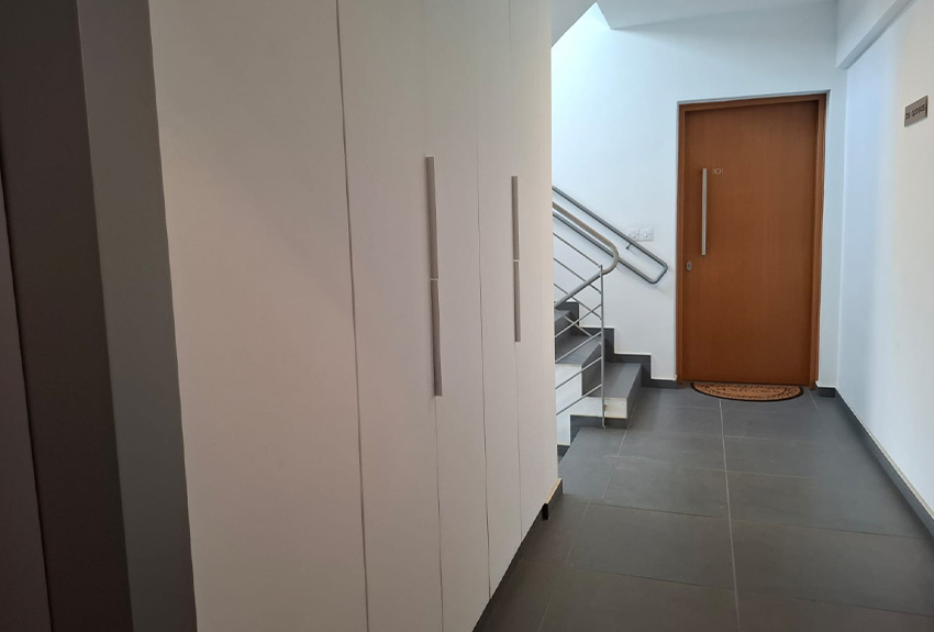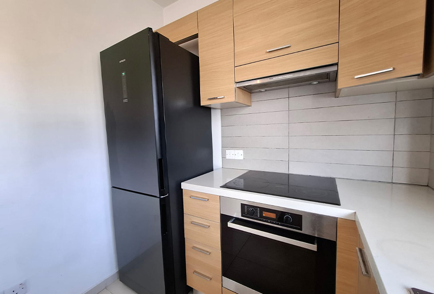 Two-bedroom apartment of 75 m2 for sale in Engomi, Nicosia. The apartment includes two bedrooms, one bathroom, an Italian open kitchen with branded appliances, a spacious living room, a covered veranda of 15 m2 and a storage room. The property is fully furnished and equipped with household appliances; underfloor heating, air conditioning in all rooms, solar water heating system, intercom system, shutters, double glazing, built-in wardrobes, TV and telephone points are installed. The apartment is located on the 1st floor. The building is located in a quiet and sought-after area of Engomi, supermarkets, cafes and shops are within walking distance, schools are nearby, and the Mall of Engomi is just a few minutes away. The residential complex is a modern and secure building consisting of only eight apartments, equipped with an elevator. The price includes one covered parking space. The apartment is in excellent condition, the year of construction is 2012, the title is available.
