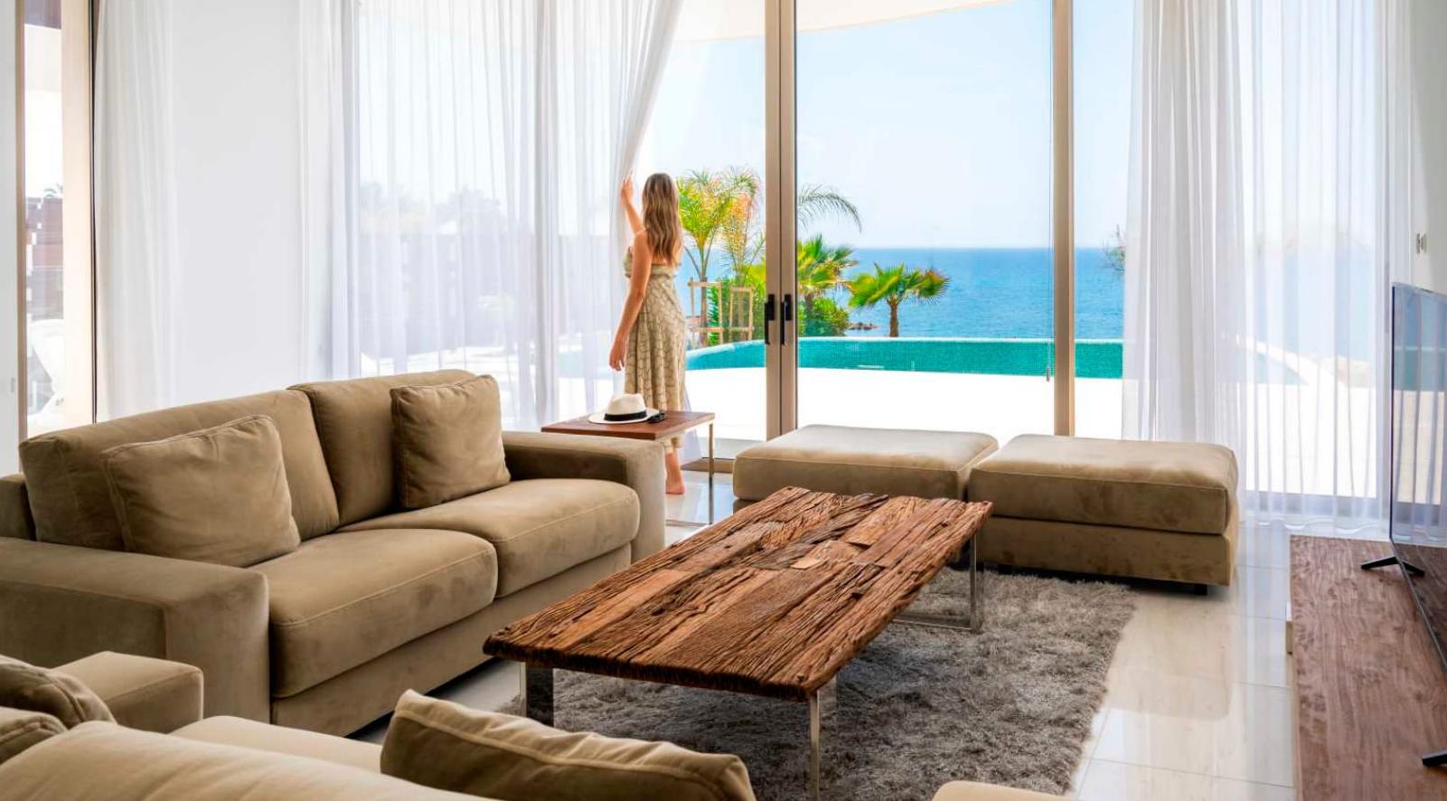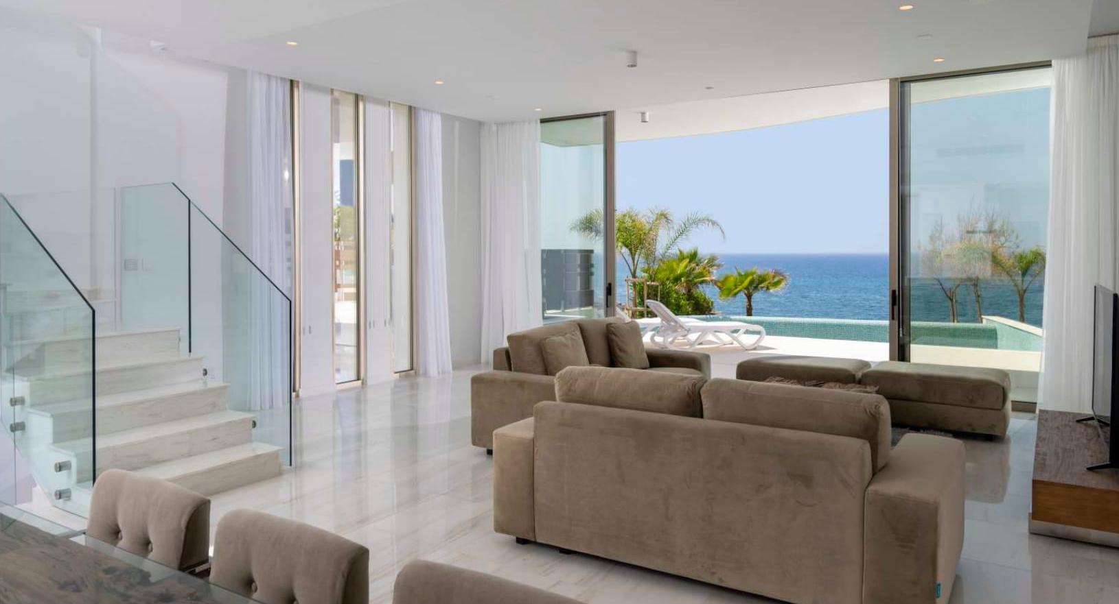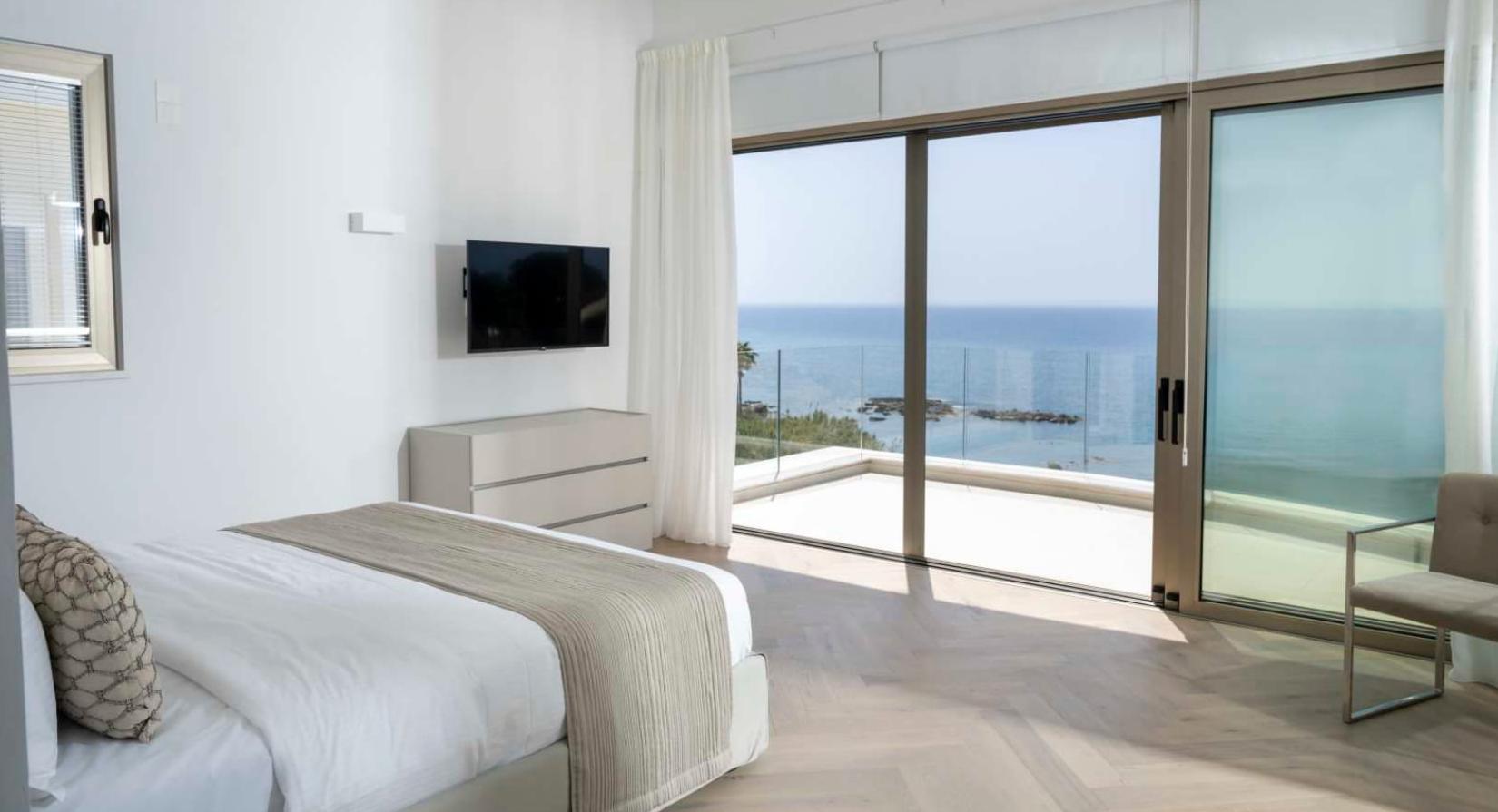 5 bedroom villa for sale in Kissonegra, Paphos. The property is located in a picturesque bay, just a few minutes from the center of Paphos, surrounded by greenery and with panoramic views of the Mediterranean Sea.