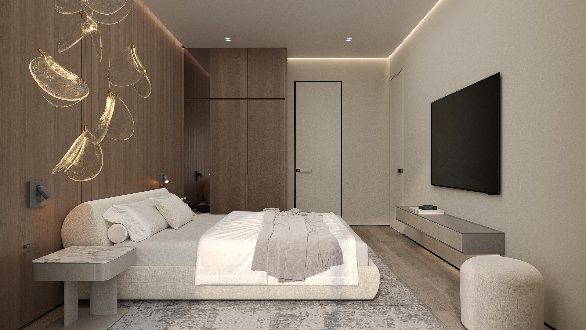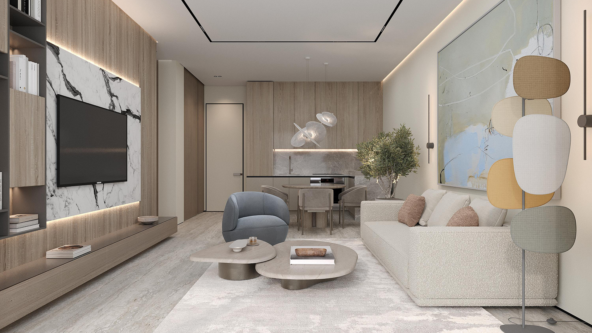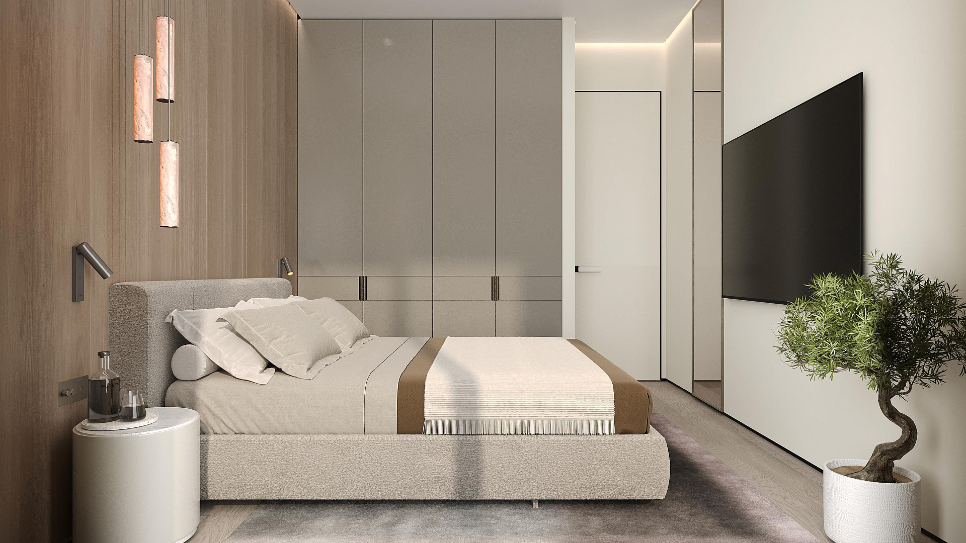 Apartment for sale in a modern complex in Tala, Paphos. It is a boutique complex of 18 carefully designed apartments. At the entrance, you are greeted by a bright hall with built-in hidden storage systems, which leads to a spacious kitchen-living room, fully furnished with elegant furniture and equipped with modern appliances. Top-class finish: natural materials, spacious glass facades and sophisticated interior elements.