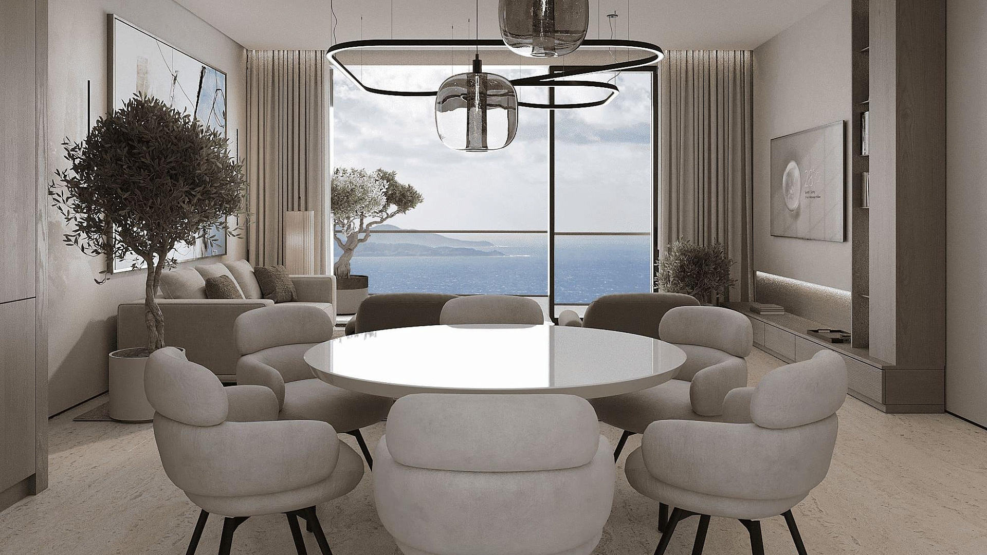 Apartment for sale in a modern complex in Tala, Paphos. It is a boutique complex of 18 carefully designed apartments. At the entrance, you are greeted by a bright hall with built-in hidden storage systems, which leads to a spacious kitchen-living room, fully furnished with elegant furniture and equipped with modern appliances. Top-class finish: natural materials, spacious glass facades and sophisticated interior elements.