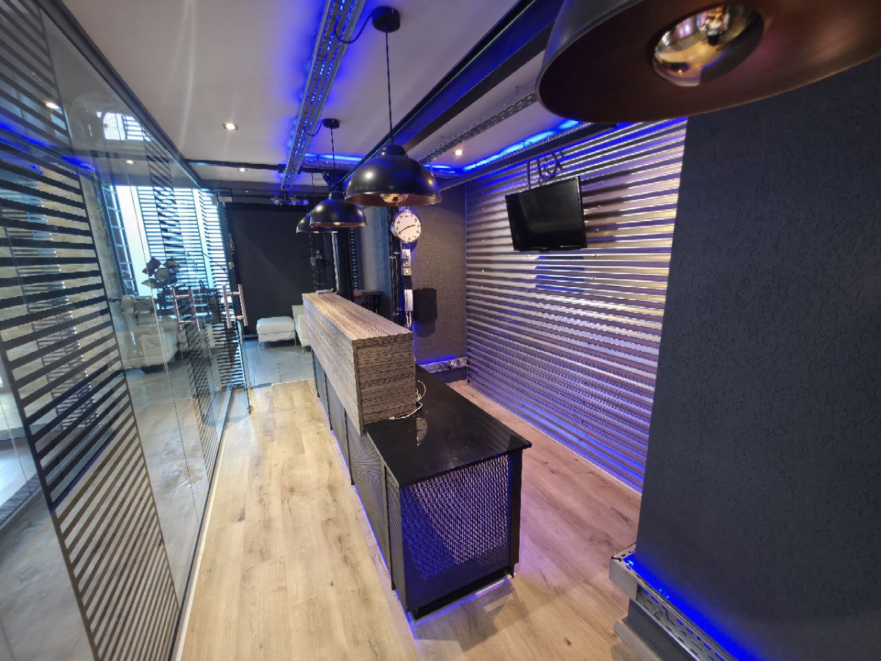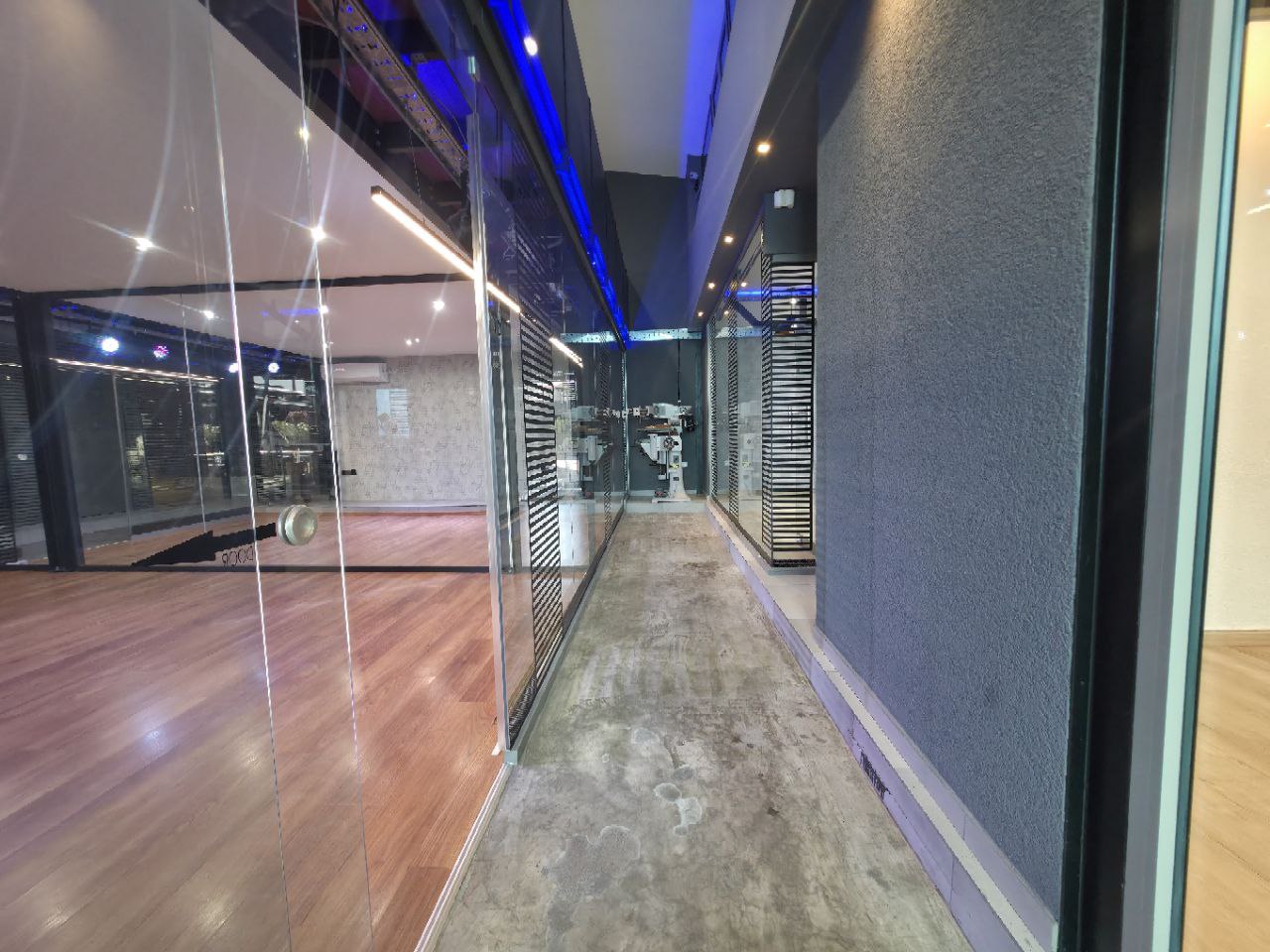 The building includes an open parking area for eight cars. On the ground floor there are three bathrooms, a reception area, a spacious open office space and a kitchen. On the second floor there is a conference room, a private office and another open-plan office space. The office is ideal for companies that value modern infrastructure, convenient location and a comfortable working environment.