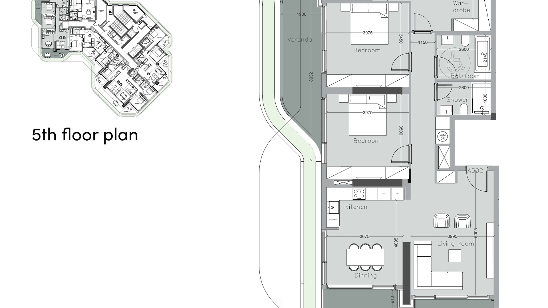 Each apartment in the complex is designed to maximize panoramic sea views. The project includes an open-plan living room and kitchen, as well as a spacious veranda.