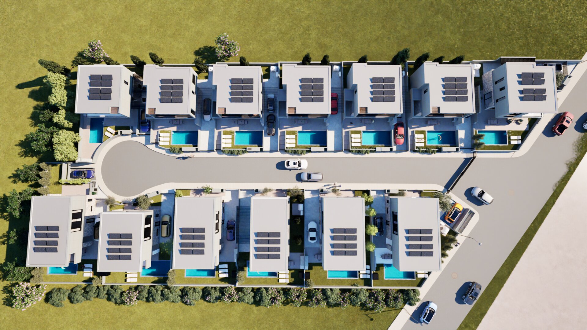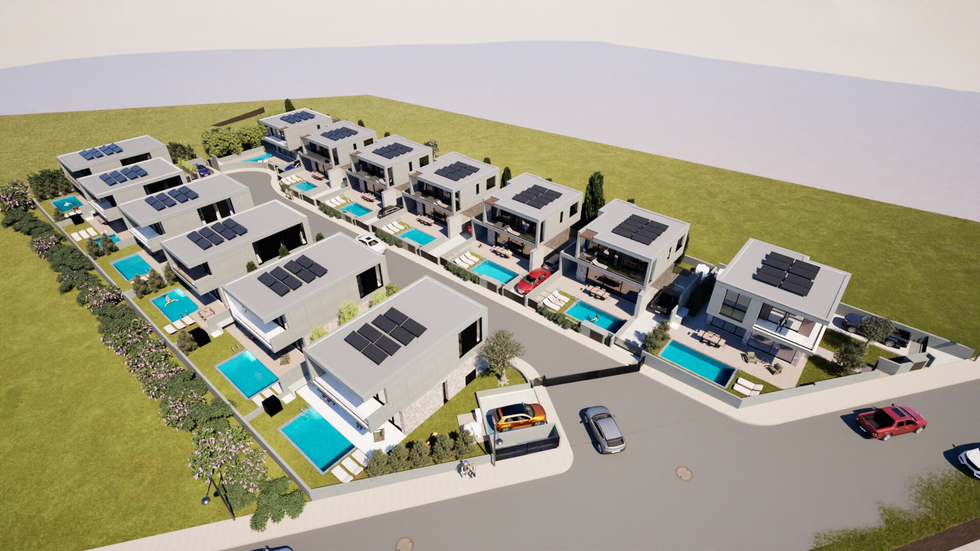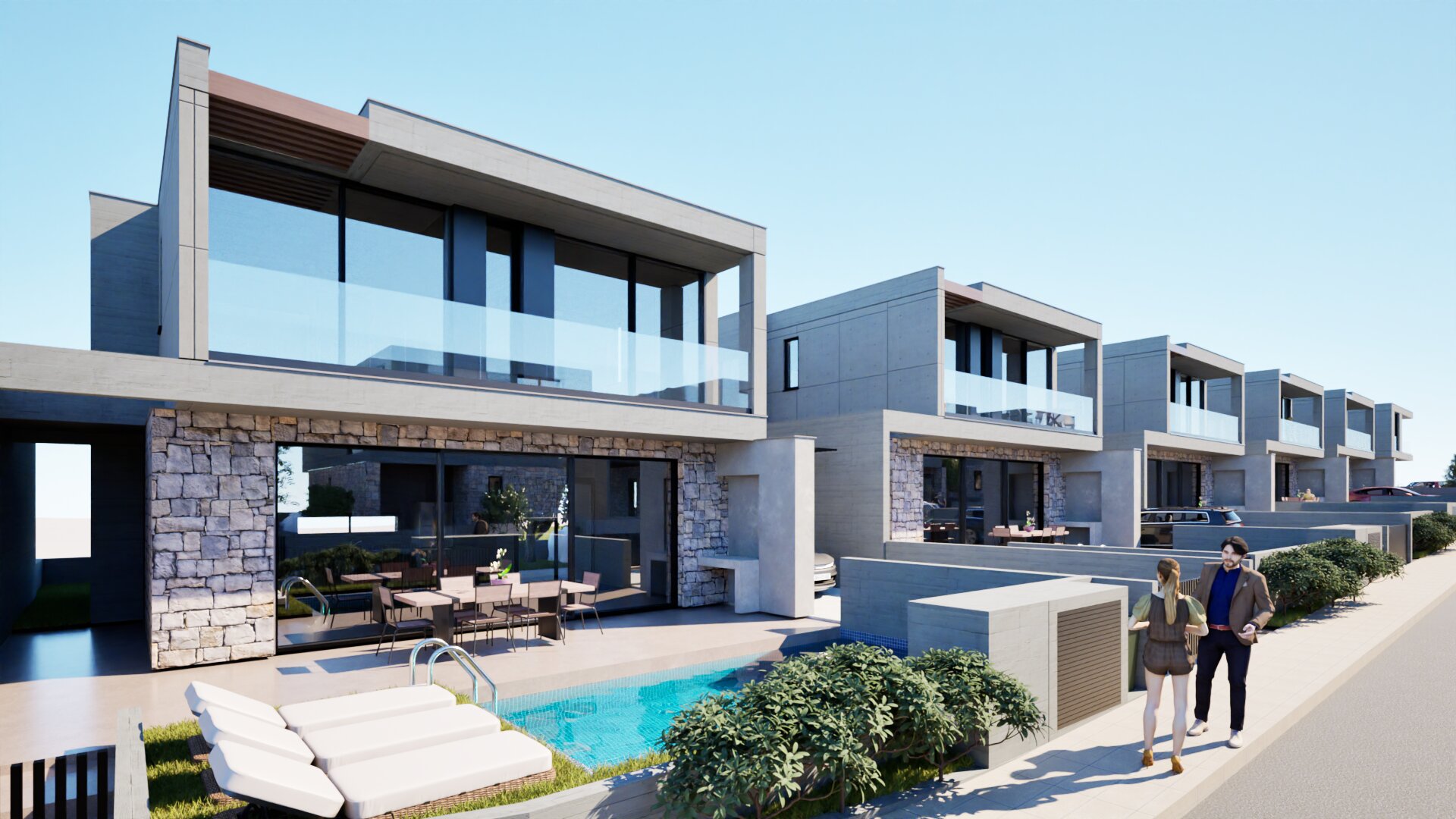 Villa for sale in a complex under construction in Geroskipou area, Paphos. Each house will have a swimming pool, barbecue area, air conditioning (split system), modern plumbing, covered parking. The complex will consist of 13 houses with private entrances.
