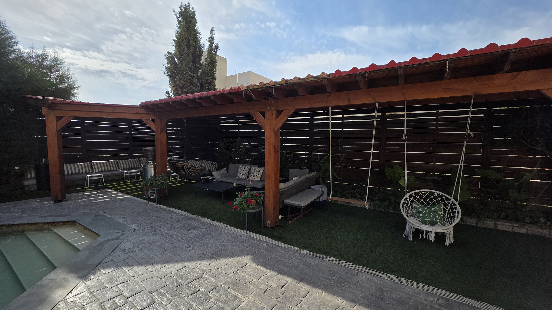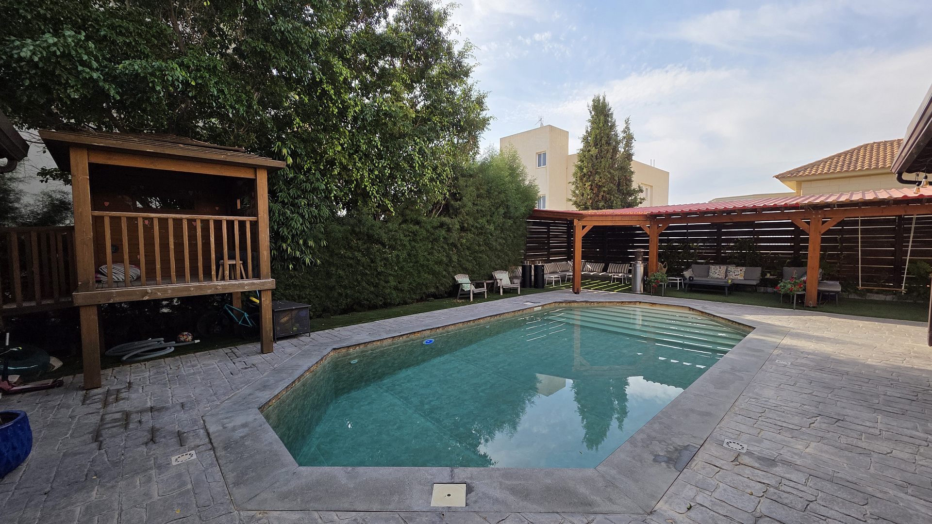 For sale a four-bedroom detached villa in the area of Agia Fyla, Limassol. The house is built on a 750 m² plot with a total area of 420 m² and was fully renovated in 2018. Inside there are spacious bedrooms, including a master with en-suite bathroom and walk-in wardrobe, an office, a playroom, and a basement with storage. The plot features a garden with a private pool, fireplace, air conditioning, and underfloor heating. Covered parking and additional storage are available. Title deed available.