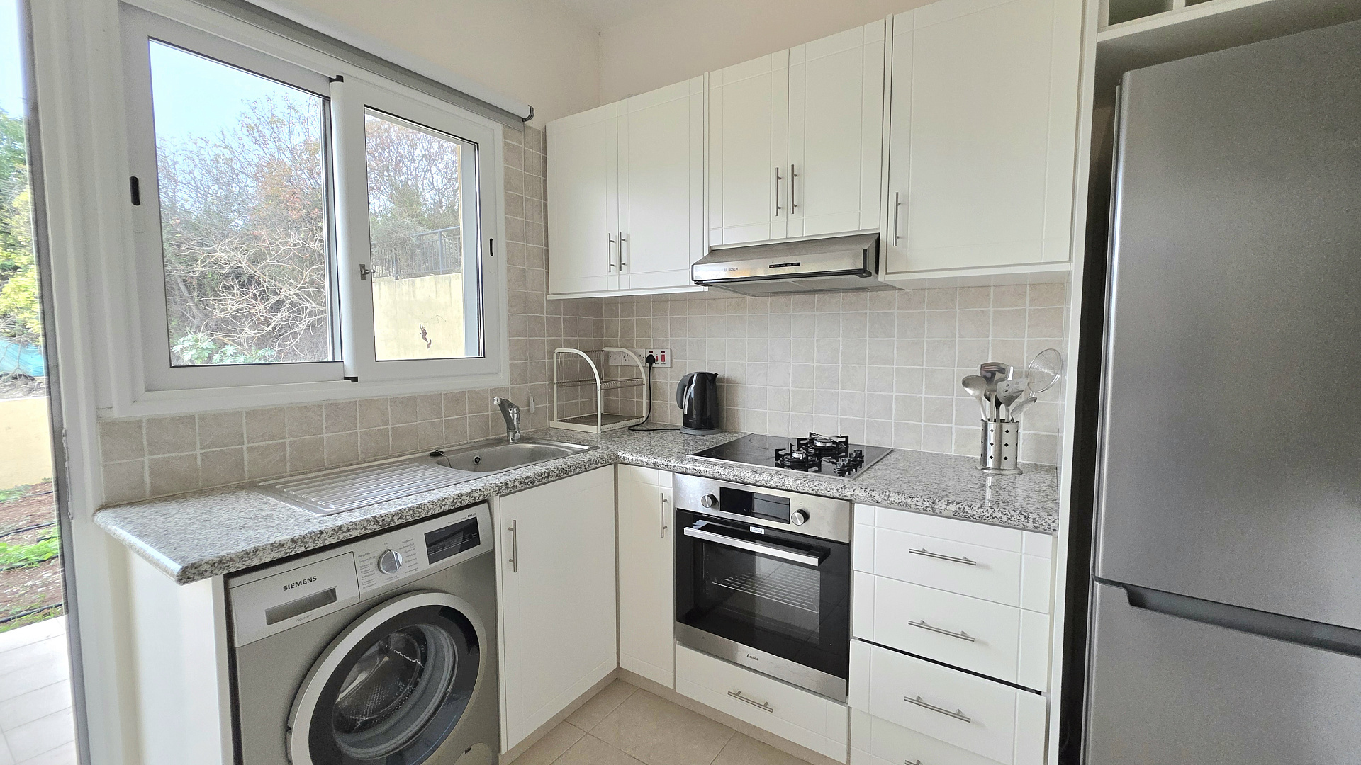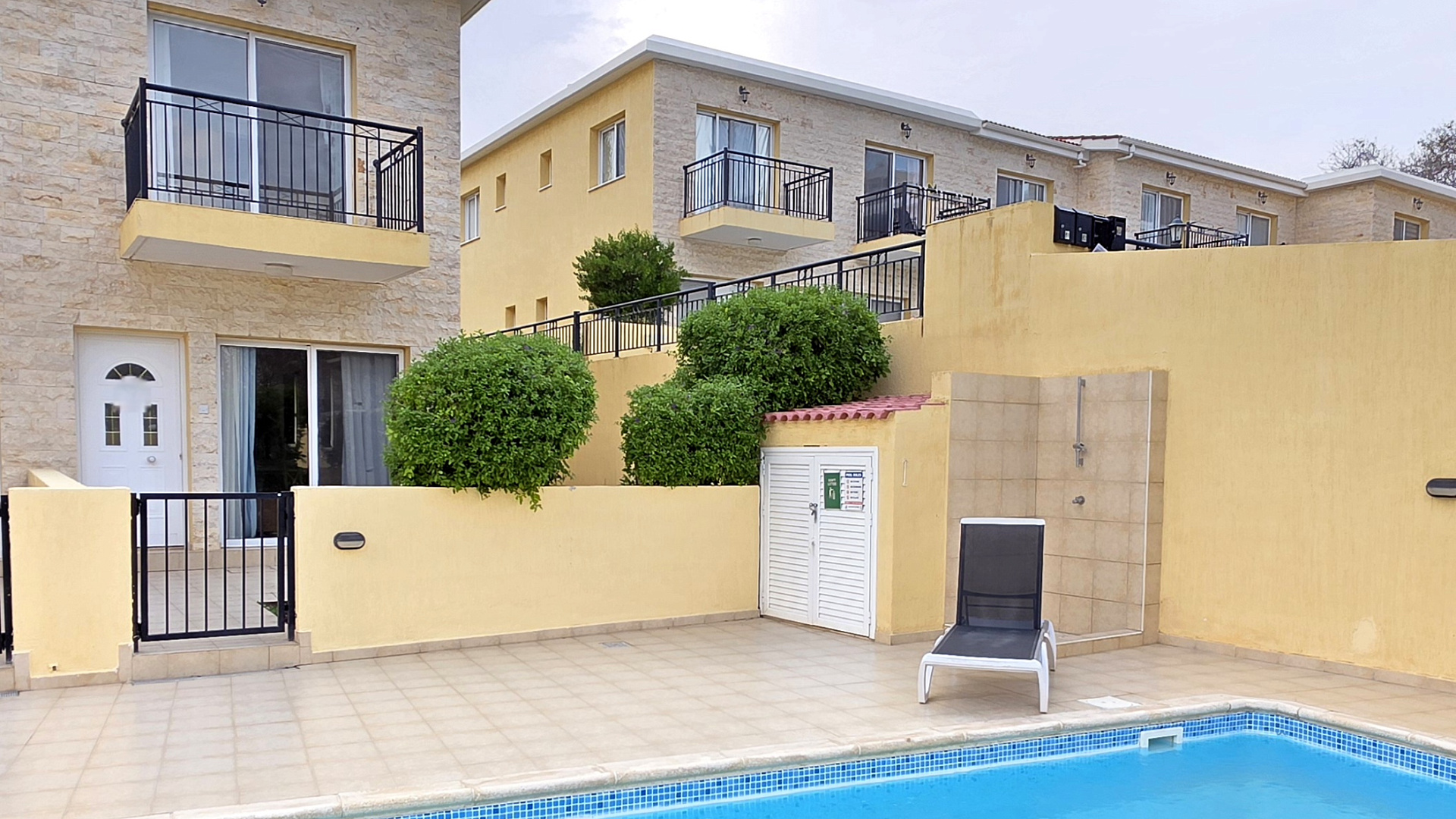 For sale a two-bedroom house of 90 m2 on a plot of 170 m2 in the area of Universal - Kato Paphos, Paphos. The house includes a spacious living room combined with a dining area in a single open space, a modern kitchen with an island, a guest bathroom on the ground level, two large bedrooms on the upper floor, each with its own bathroom, as well as a covered veranda of 10 m2. The house is partially furnished, with modern finishes and a functionally designed kitchen, convenient for both daily use and for receiving guests. The property is located in the sought-after Universal - Kato Paphos area, about 500 m from local supermarkets, about 2 km from Paphos Harbour and the Archaeological Park and Tombs, 2.5 km from Kings Avenue Mall, about 3 km from Aphrodite Waterpark and the city beaches of Alykes and Vrysoudia, and about 13.9 km from the international airport Paphos, while the sea is about 5 minutes away. The residential complex offers a communal swimming pool for residents, one open parking space belongs to the maisonette, the facility was built in 2009, sold with ready-made Title Deeds documents.
