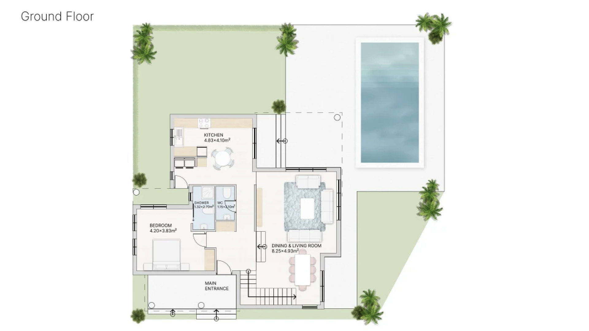 A house for sale in a new complex. The project is ideally located on the highest hill in the village of Pissouri, overlooking the bay and one of the best beaches on the island. This amazing complex is located between Paphos and Limassol, next to the Century Pissouri National Park, a great pride and national treasure of Cyprus. The project consists of 25 two- and three-bedroom villas, and 13 two- and three-bedroom bungalows. All apartments have an open-plan living room, dining room and comfortable kitchens. In addition, each plot is equipped with a separate private swimming pool surrounded by greenery and a place to relax. The architecture of the houses combines traditional Cypriot architecture and modern design - there is a partial exterior stone finish and ultramodern ideas of interior and exterior decoration. Many of the buildings here are built of natural stone. Nearby there are government offices, banks, small shops, restaurants and bars. The central square is a favorite place of locals and tourists. Columbia Beach Resort Hotel (5 stars) is located in the immediate vicinity of the bay, offers all kinds of sports, the use of conference rooms, a fitness club.