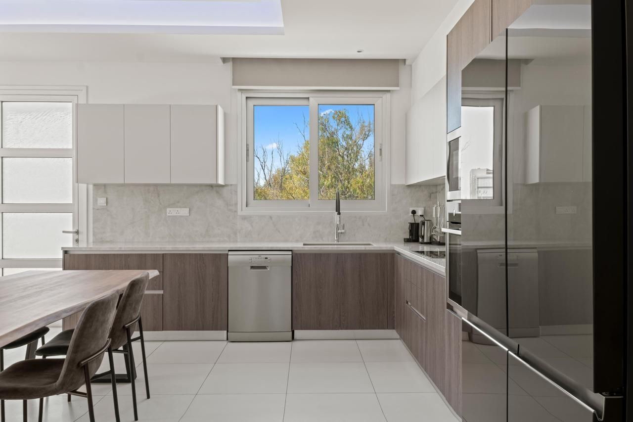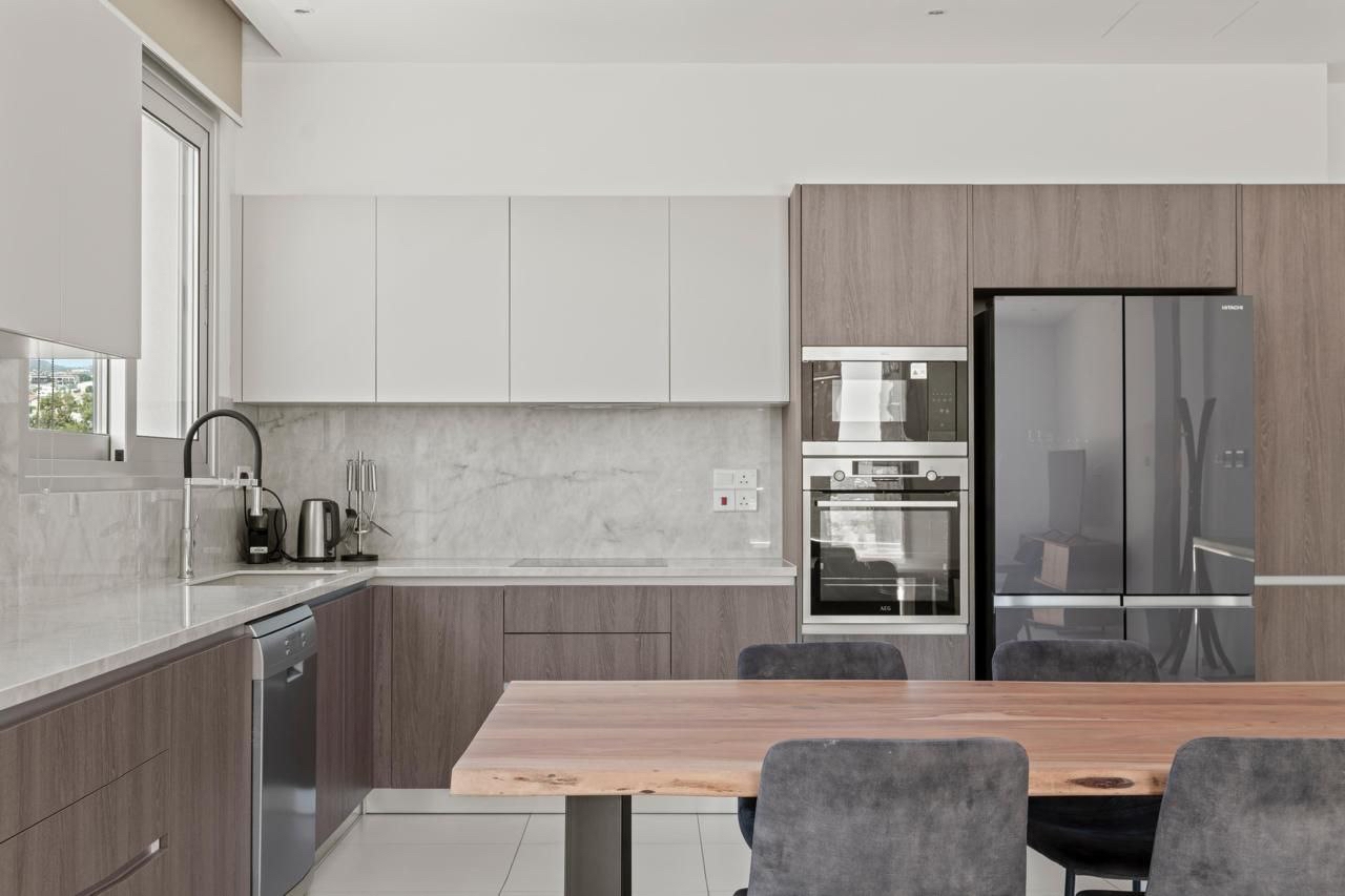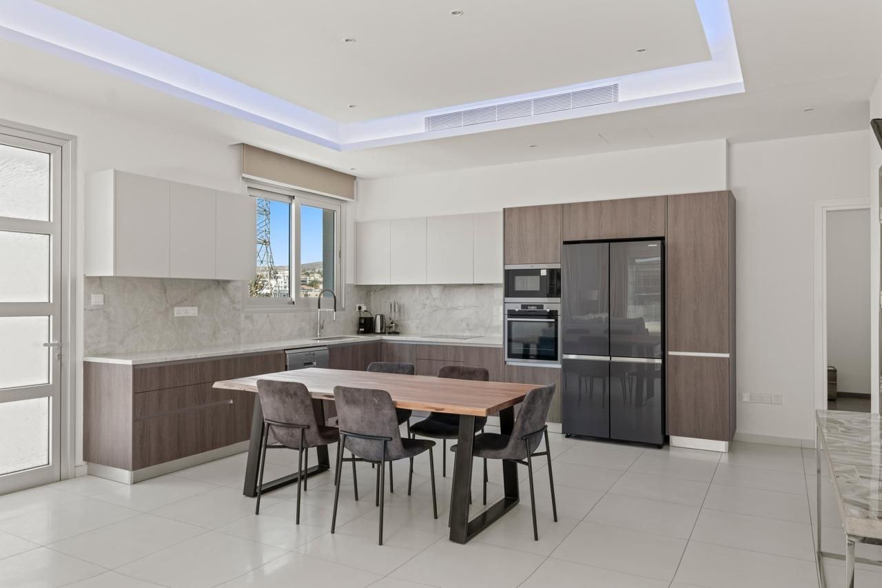 Three-bedroom penthouse of 232 m2 for sale in Potamos Germasogeias, Limassol. The penthouse includes three bedrooms, three bathrooms (guest bathroom, main bathroom with bathtub, master bedroom with shower), a spacious living room, an open-plan kitchen, a large veranda on one level of 108 m2 with a BBQ area, as well as a storage room that can be converted into a maid's room. The apartment is located on a separate floor. The property is fully furnished and equipped with individual concealed air conditioners in each room and underfloor heating system. The property has an enclosed and covered parking for 2+ cars with a private entrance. The facility is located in a modern low-rise building with only five apartments, which provides privacy and a peaceful living atmosphere. The penthouse is located on a quiet dead-end street about 800 m from the sea, within walking distance from the beach and the amenities of the area. The title of the property is available.
