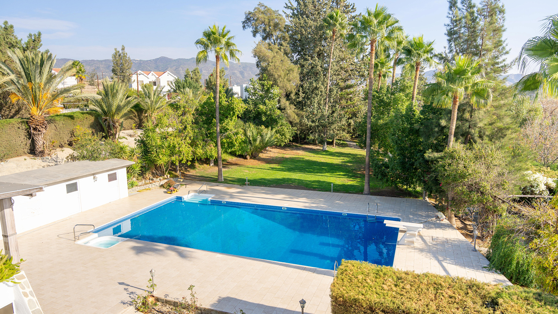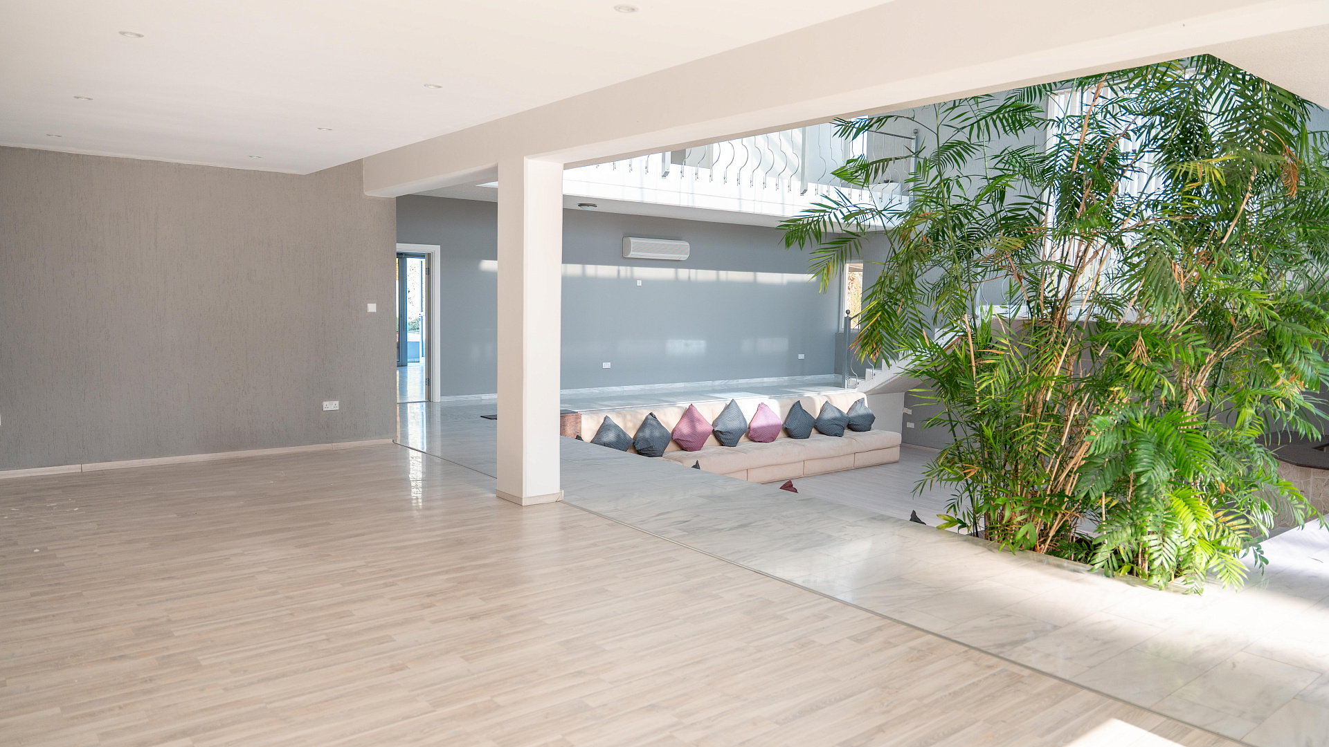 For sale is a four-bedroom villa in the area of Parekklisia,Limassol, with an area of 750 m2, located on a plot of 3,800 m2 and offering large open spaces suitable for both living and office space. The villa includes four spacious bedrooms with en-suite bathrooms, is complemented by separate apartments of 60 m2 and has a comfortable basement of 120 m2. There is a private swimming pool, garden, play areas and storage facilities, as well as a large private parking for about 15 cars.