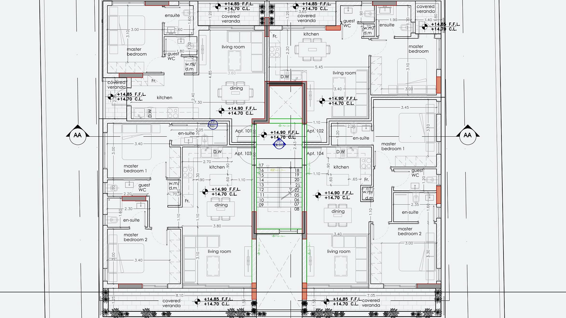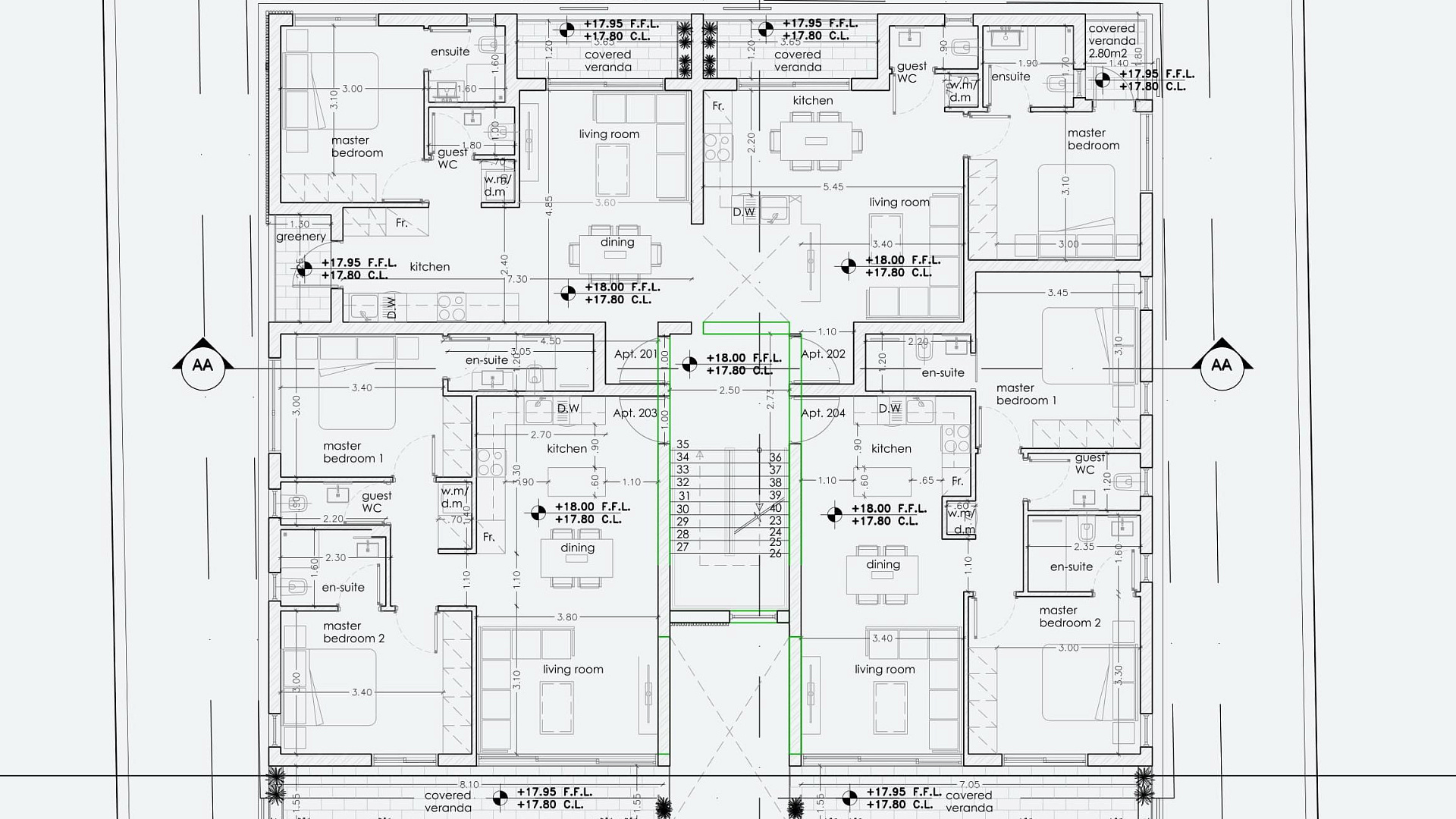 Fully integrated modern amenities: elevator, solar water heaters, photovoltaic panels, communal space with a roof garden, green areas, storage rooms and a private parking space for each apartment.