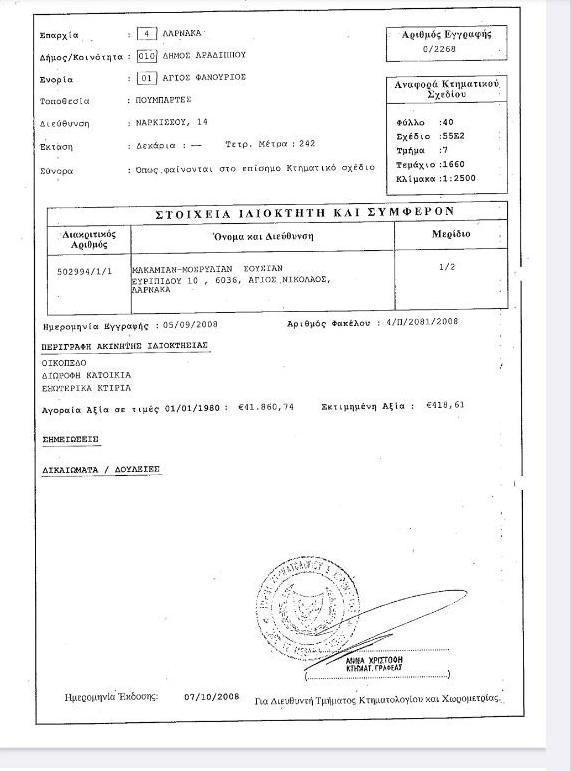 Four bedroom house for sale in Vergina area,Larnaca with an internal area of 200 m2, built in 2008 and located on a plot of 249 m2 in a quiet and well-maintained area. On the ground floor there is a living and dining room, a separate kitchen with an additional sitting area and dining area, as well as a guest TOILET, on the second floor there are four bedrooms, including a master bedroom with its own shower, an additional room for an office or game room and a main bathroom. The house is in excellent condition, equipped with air conditioning in all rooms, central heating, water pressure system, security system, outdoor shower and one covered Parking space. The facility is located within walking distance from schools, a short drive from a new shopping center, sports facilities and a hospital and about ten minutes from the center of Larnaca, decorated with title deed.