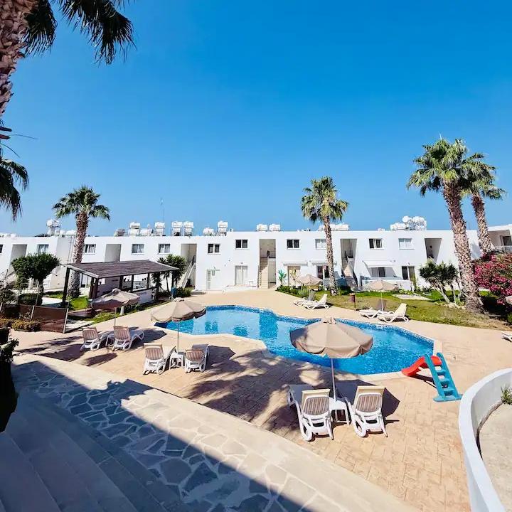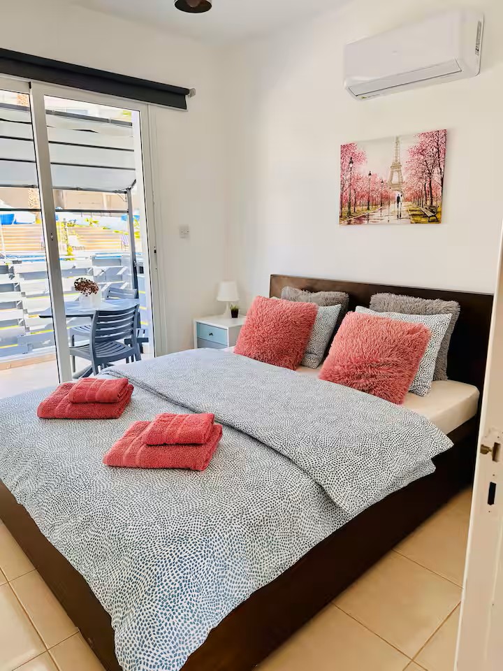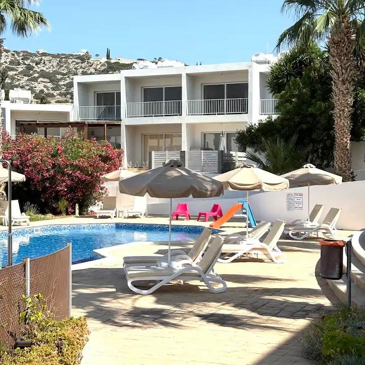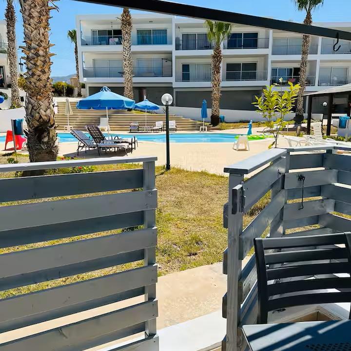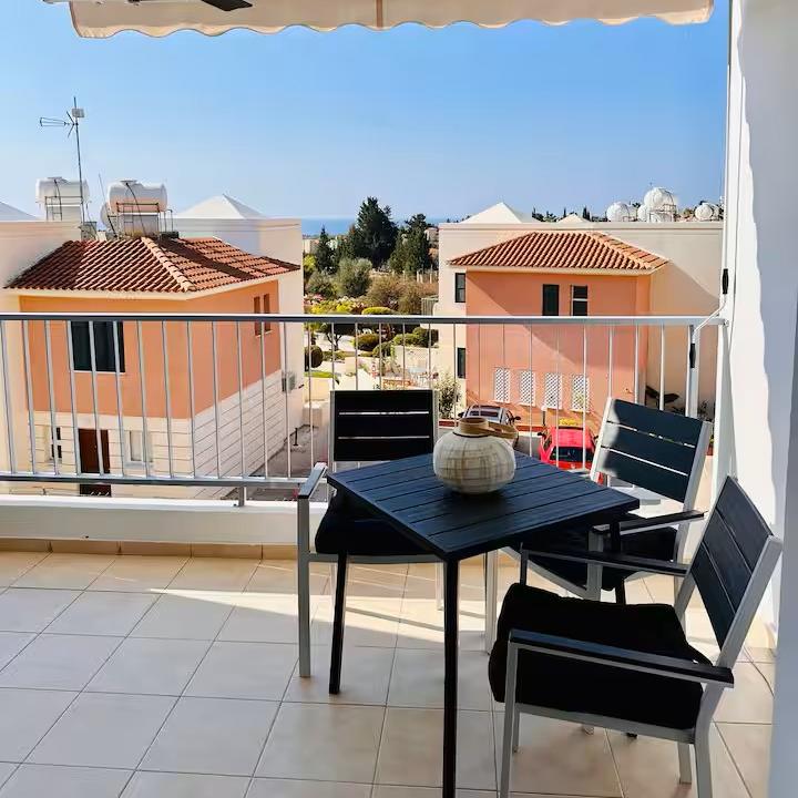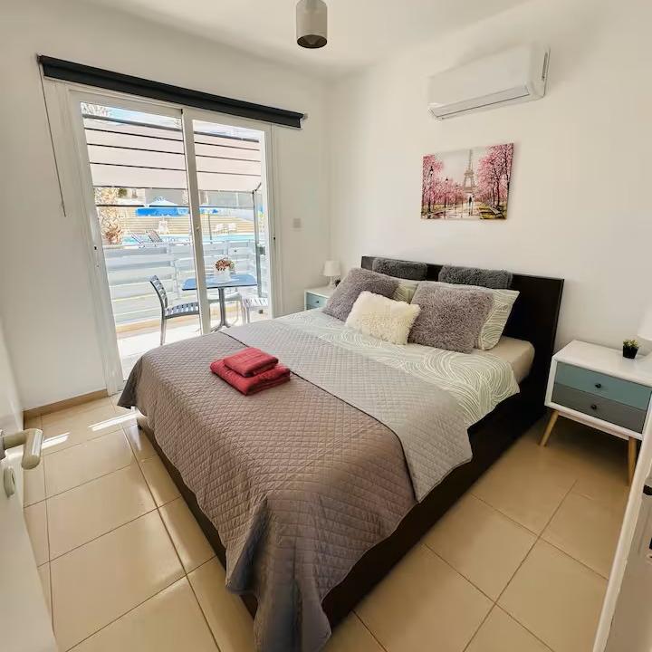 One bedroom apartment for sale in Pegeia district, Paphos, located on the ground floor of a complex with a swimming pool, overlooking the sea, as well as with its own garden and direct access to the pool. The apartment is stylish and fully ready to move in. It includes one double bedroom, a living room with a sofa bed, one bathroom, a fully equipped kitchen, air conditioning in both rooms, a large Smart TV and Internet connection, and plenty of storage space. There is a spacious terrace and a large balcony, covered parking on site. The apartment is being sold together with the management company and is a ready-made business, ideal for short-term rentals.