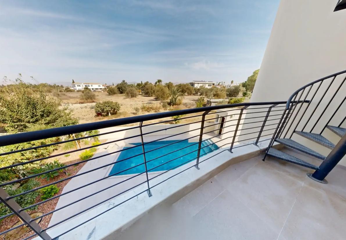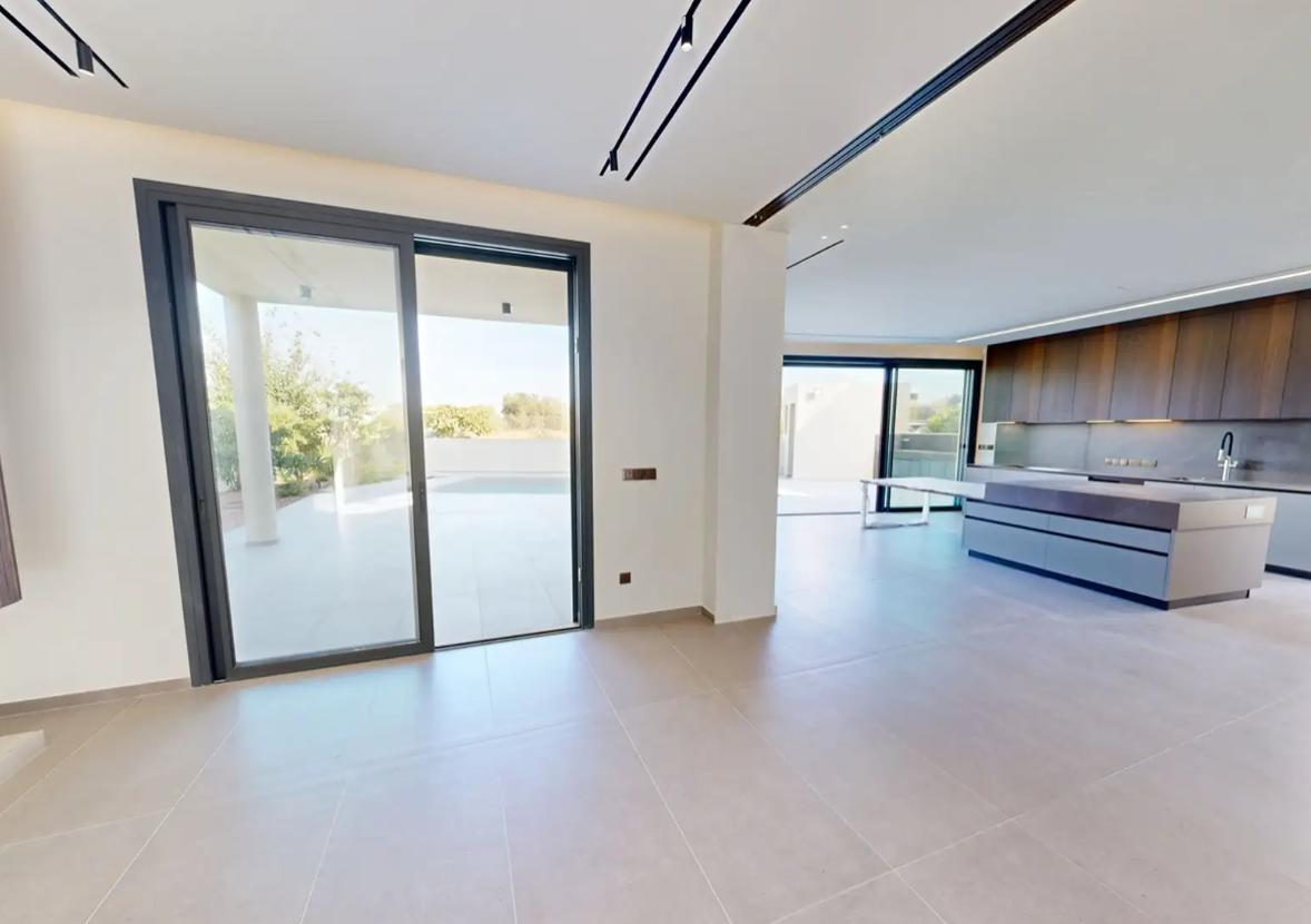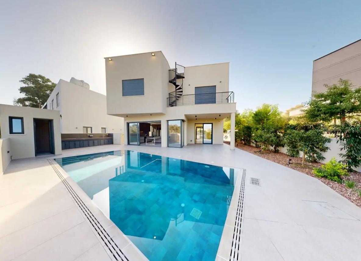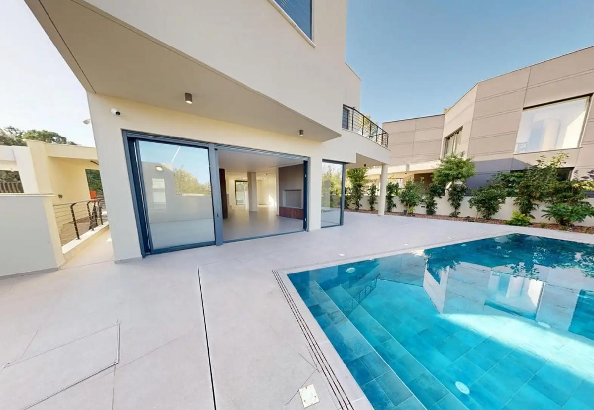 For sale a modern five-bedroom villa in the Strovolos area, in the city of Nicosia, new and fully ready to move in, with an internal area of about 371 m2, located on three floors.An open-plan living and dining room with a glass fireplace, an individual Italian kitchen and a guest bathroom, two master bedrooms with bathrooms and walk-in closets, two additional bedrooms with shared bathrooms, balconies and access to the roof, and the lower floor includes a multifunctional recreation area, a laundry room and a separate guest bedroom with a bathroom. The villa is equipped with underfloor heating from solar panels, Daikin VRV concealed air conditioning system, alarm system and video surveillance, designer lighting, and on the plot there is a private swimming pool with Jacuzzi, barbecue area, landscaped garden, terraces and covered parking.