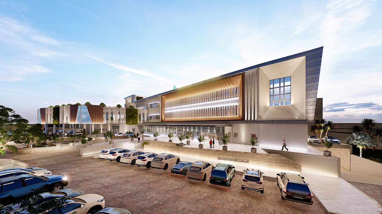 Sale of licensed commercial land in Ypsonas, Limassol. The land is approved for the development of multi-floor medical centre with total covered building area 21666 m². The building will have five levels, including a three-level basement with 300 parking spaces, a ground floor with reception, pharmacy, café, and health-related commercial units, two floors for clinics and diagnostic labs, a floor for surgical theatres and short-stay recovery, and a top floor for administrative offices and staff facilities.