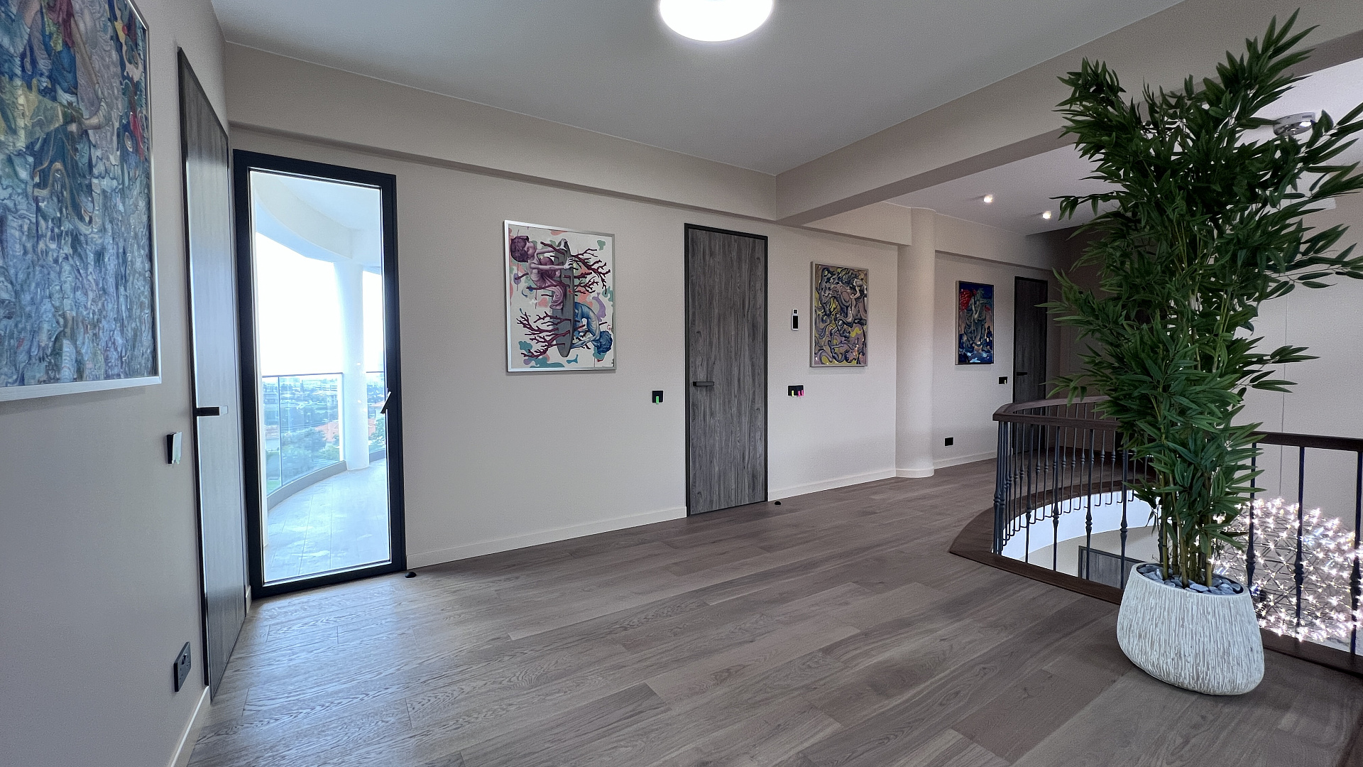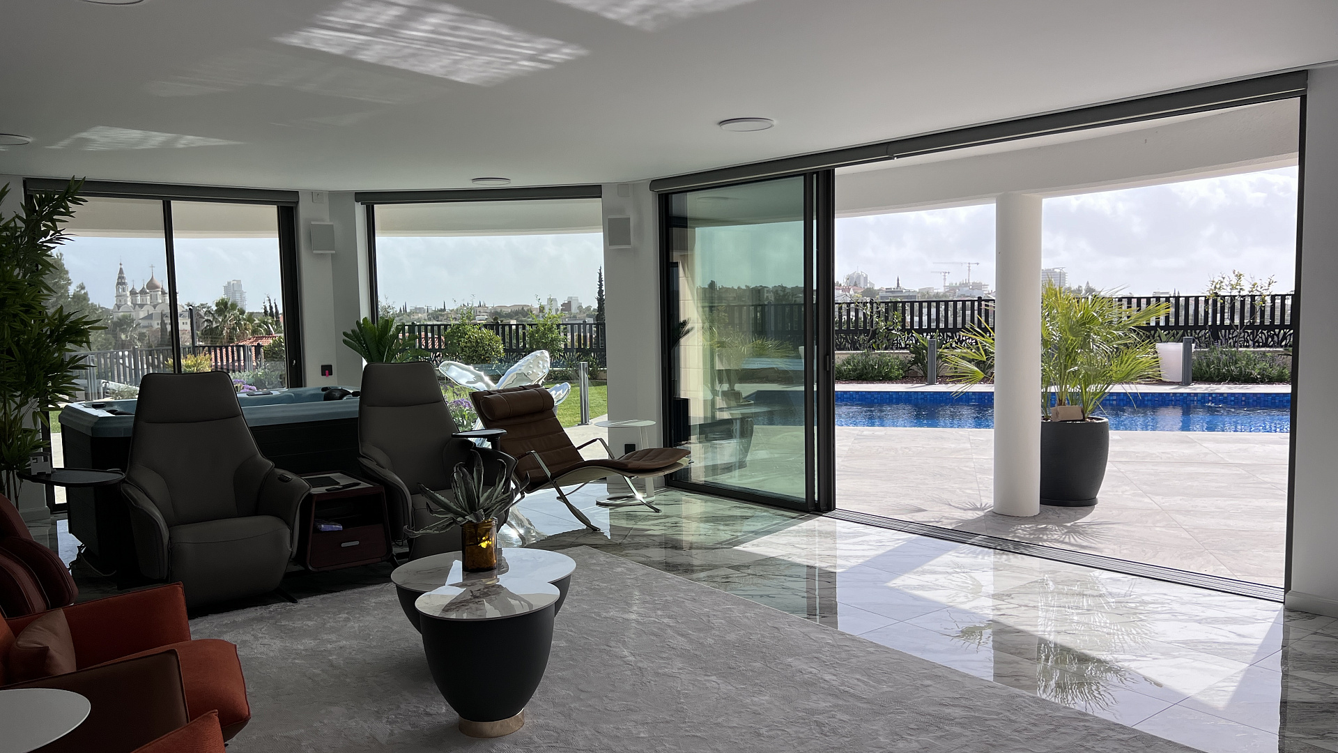 Renovations: Emphasis on modern style and up to the date technological advances in Smart House field; Increase in livable space and reimagination of (zoning) layout; Infinity pool (12 by 8 meters) with counterflor and hydromassage; Impressive entertainment space for spa, gym and cinema; Competent planning in view of modern requirements; Large dining area that maximizes sunlight; Panoramic windows throughout the house to increase natural light flow; Top of the line engineering and brand new, cutting edge material; Personalized design.