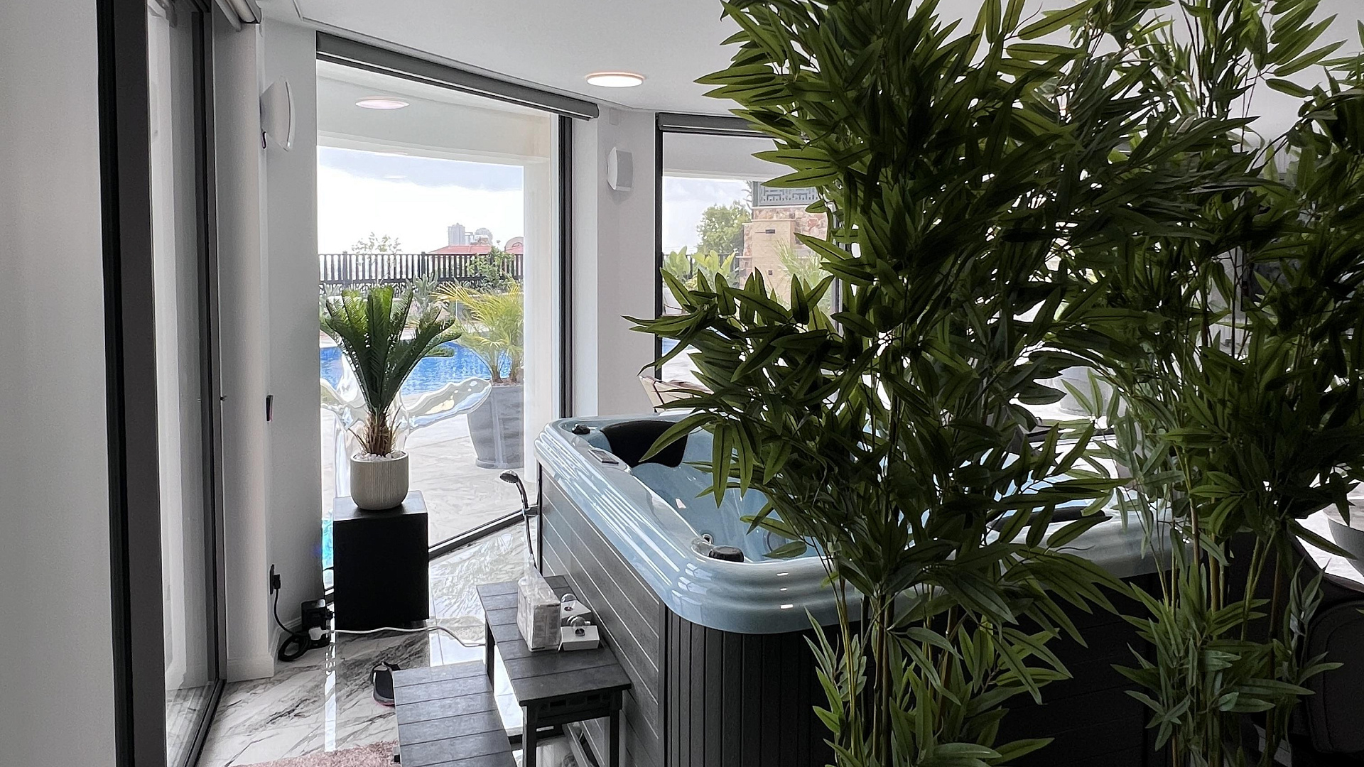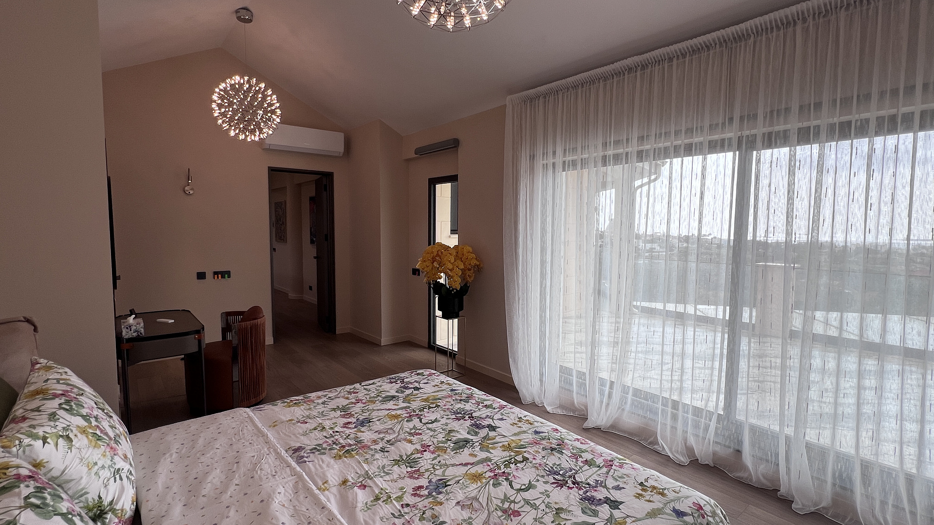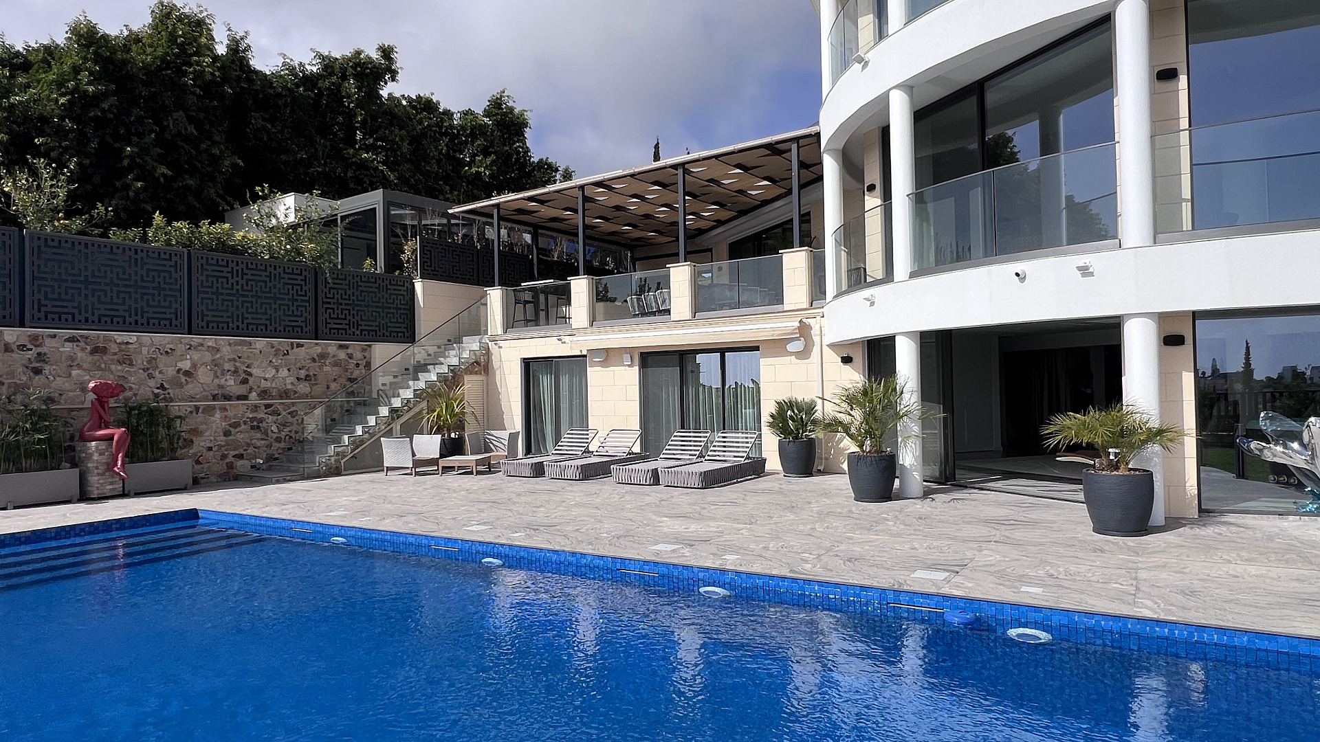 For sale 5+ bedroom villa that is located in the prestigious neighborhood of Mesovounia, a part of Germasogeia municipality. Villa is consistent on three plus levels. The second floor has big master badroom with, the third floor is currently an open space area with its personal washroom. The plot is around 950 square meters with an ideal south facing view, with an already existing pool, garden, and parking area that can easily fit several cars simultaneously. The house was intentionally designed to act as a main house of a large family as it utilizes all the space it has without any waste. Painting, stone, textured plaster are combined in an original way. Balconies and additional façade solutions are harmoniously inscribed, which makes the look original, modern and practical. House is facing south, which allows for it to have an unobstructed view of Sea and hills. Breathtaking view of Mediterranean Sea, Troodos hills and Limassol’s skyline. Prestigious, clean, and safe neighborhood.