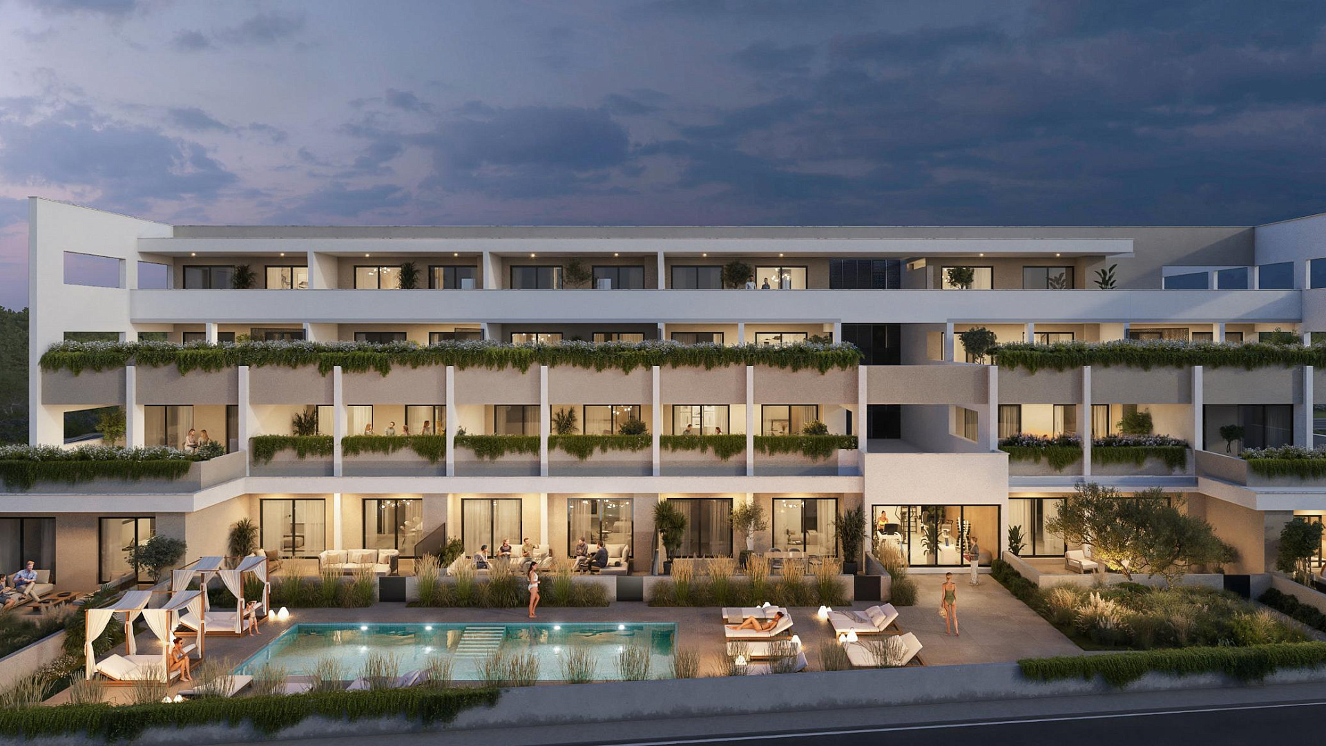 1 bedroom apartment for sale in a gated community in Erimi, Limassol. The project features modern, comfortable layouts, a well-thought-out master plan, spacious verandas, dedicated storage rooms, a communal pool and fitness area, professional landscaping, a guarded entrance and dedicated parking spaces. Photovoltaic systems for each apartment and for common areas. Residents will appreciate the proximity to numerous infrastructure facilities such as cafes and restaurants, shops, schools, banks and supermarkets.