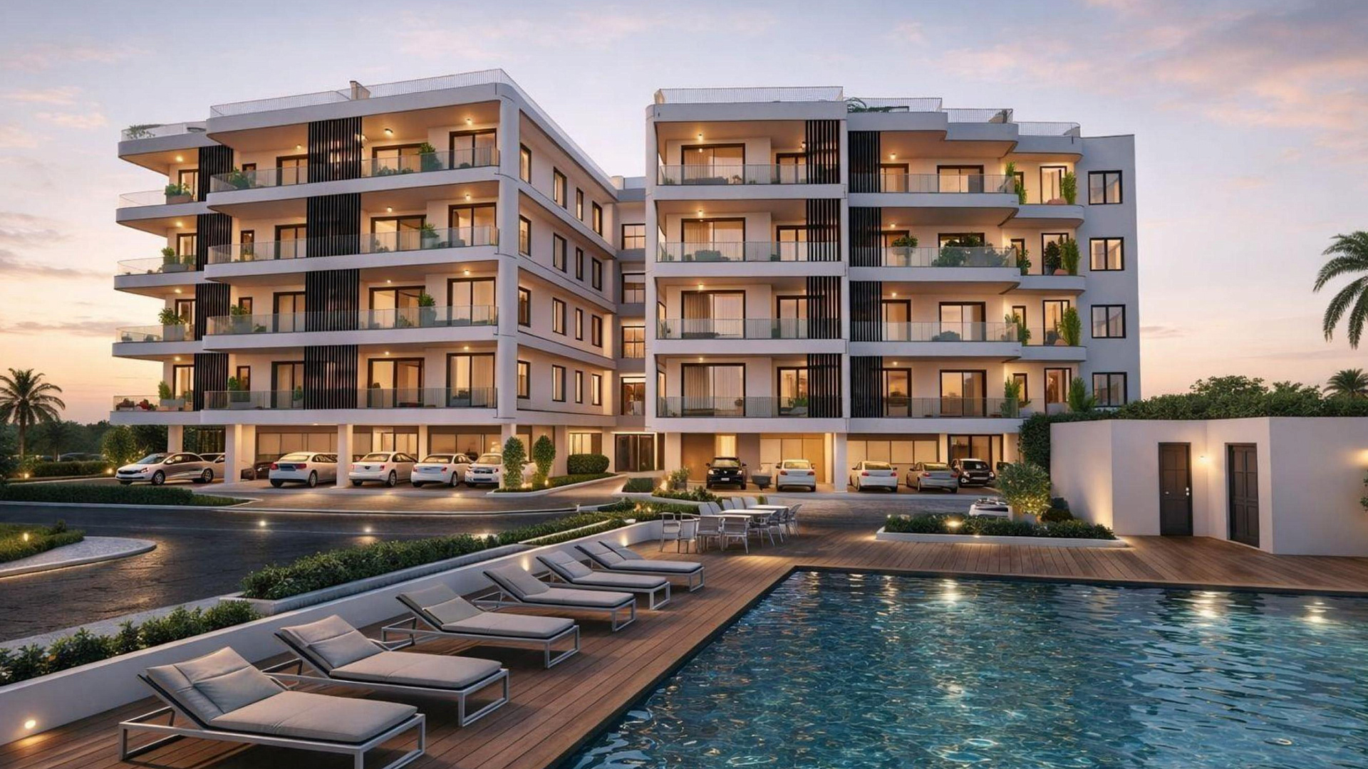 Apartment for sale in Livadia, Larnaca. The apartment is located in a modern residential complex of new construction, made using high-quality materials and modern technologies. The complex offers a comfortable infrastructure for residents, including a communal swimming pool, gym and playground, as well as a green area around the perimeter, creating a cozy and private atmosphere. The apartment has a comfortable layout, high ceilings, modern finishes and equipment, a parking space and a storage room are provided. A great option for both comfortable living and investment.